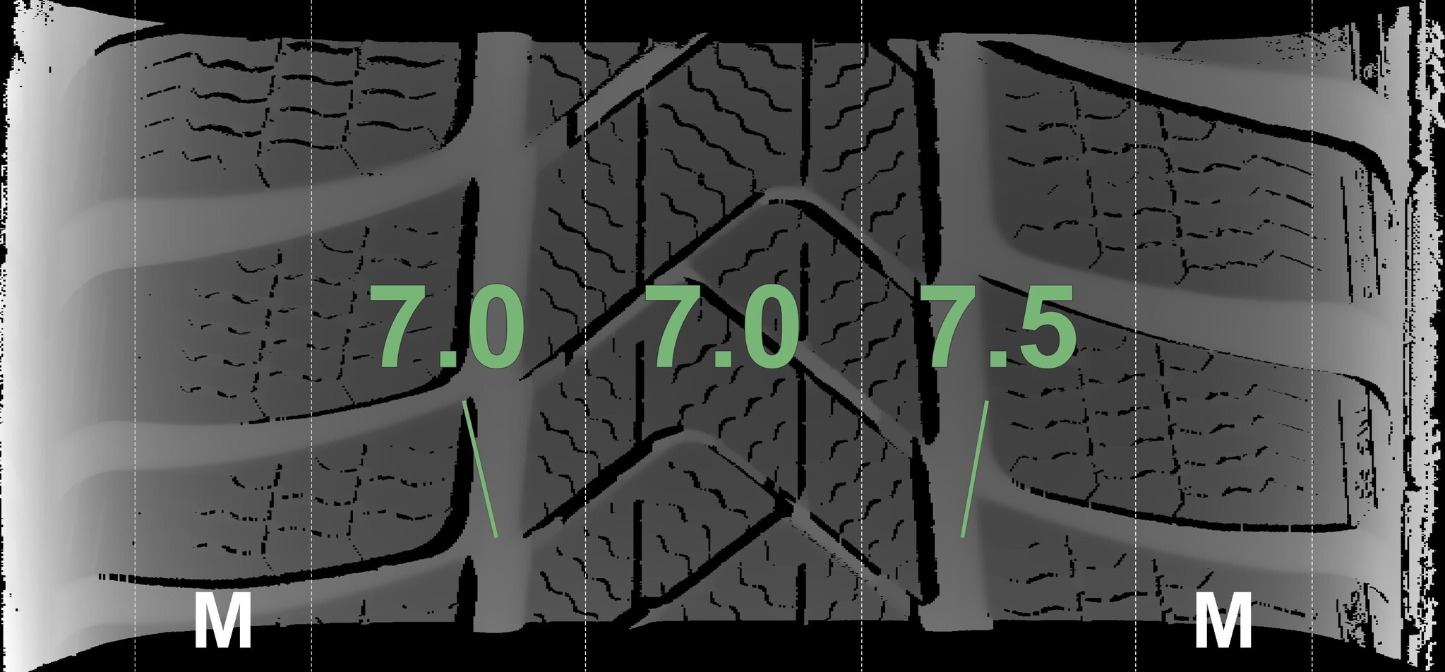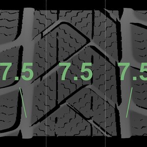 The measured tread depths and the details of the rims are shown above.
