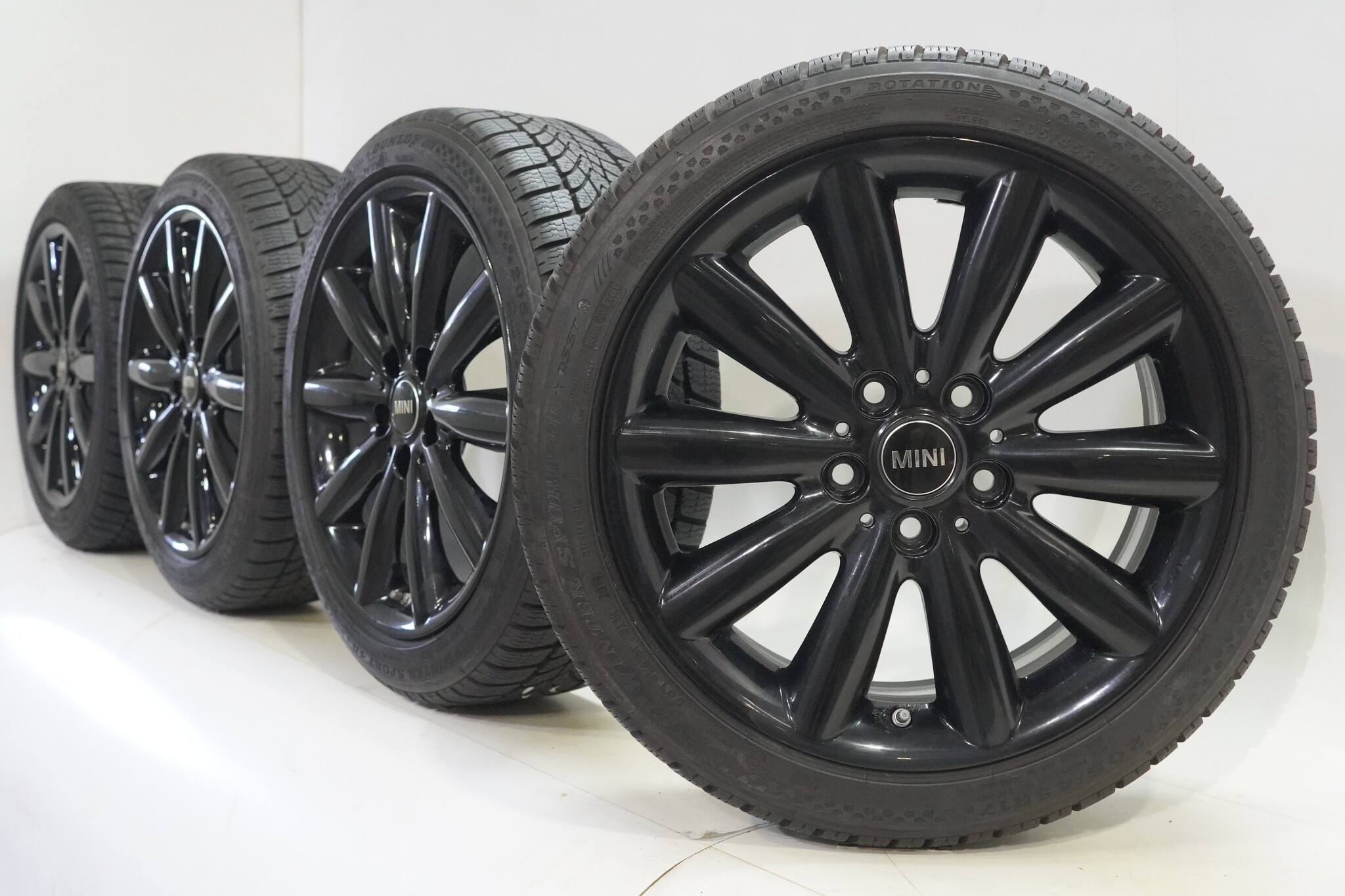 Original wheel set from Mini, styling 499, 17 inch rims with Dunlop SPWintersport 4D winter tires. These rims are original rims from the Mini brand and suitable for: Mini Cooper / S / One / Cabrio F55 F56 F57.