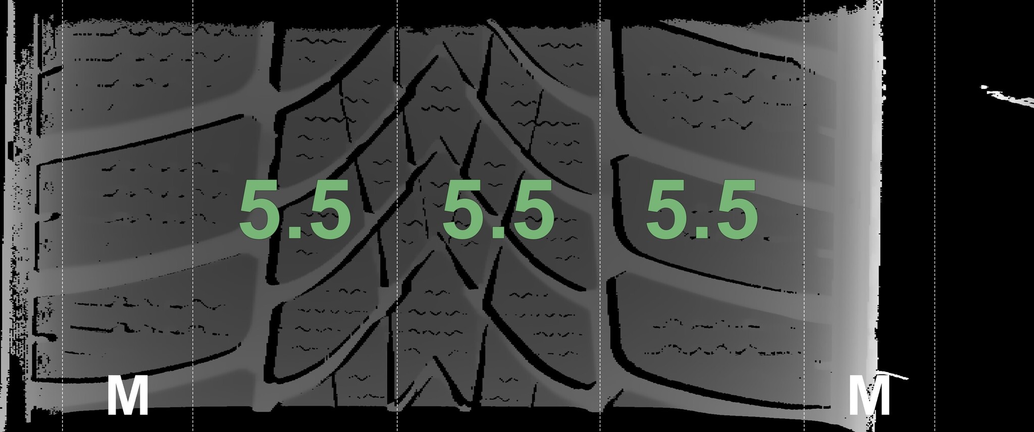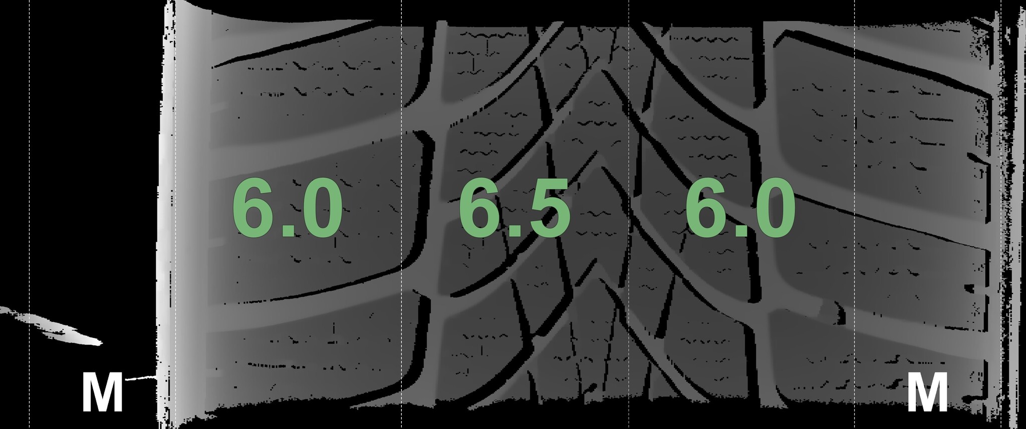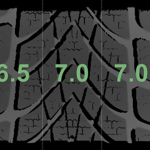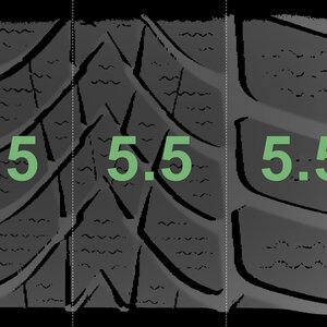 The measured tread depths and the details of the rims are shown above.