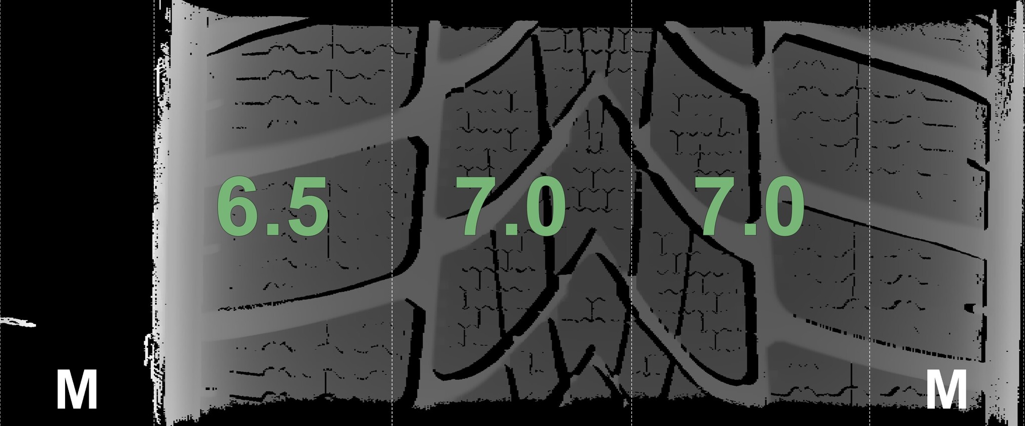 The winter tires mounted on this wheel set are equipped with the snowflake symbol required in Germany and Austria and are also marked M+S.