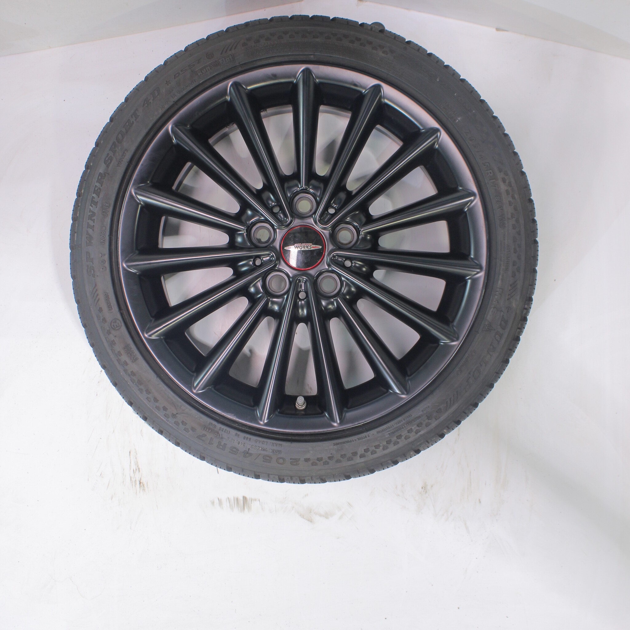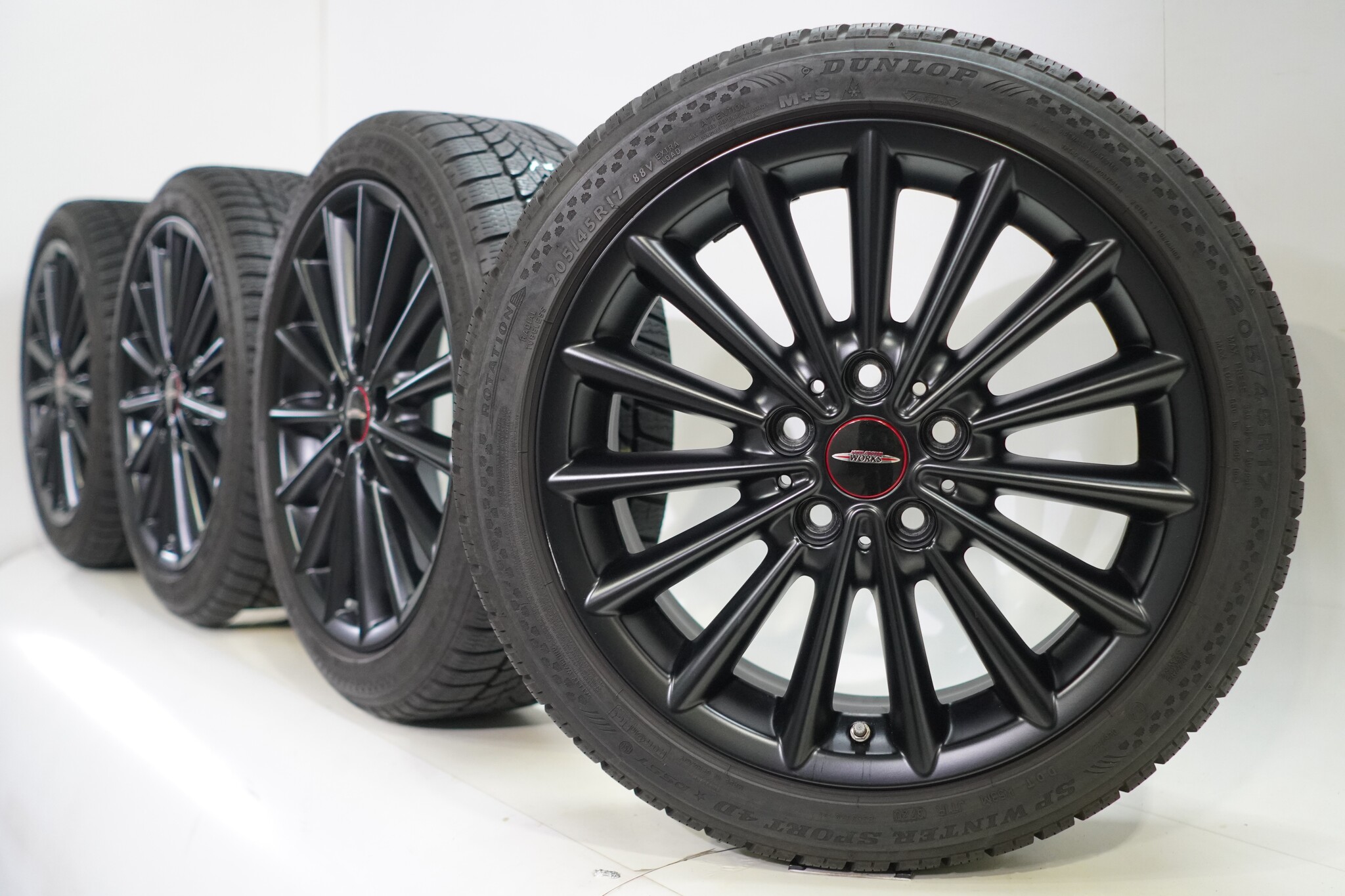Original wheel set from Mini, styling 505, 17-inch rims with Dunlop SPWintersport 4D Runflat Winter Tires. These rims are original rims from the brand Mini and suitable for: Mini Cooper / S / One / Cabrio F55 F56 F57.