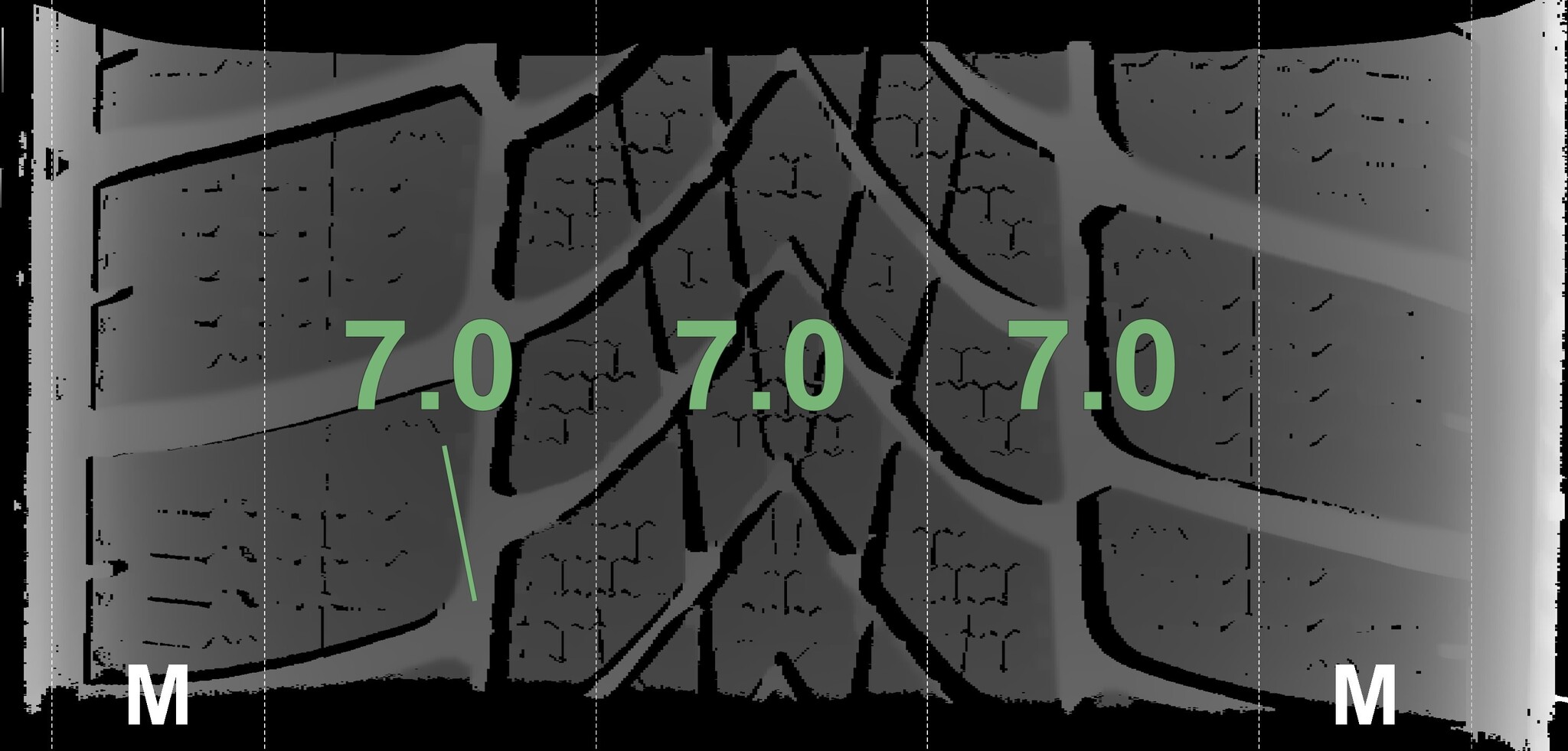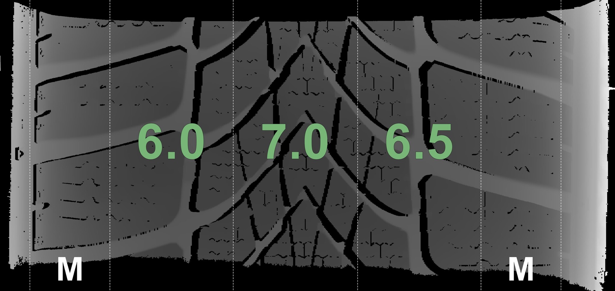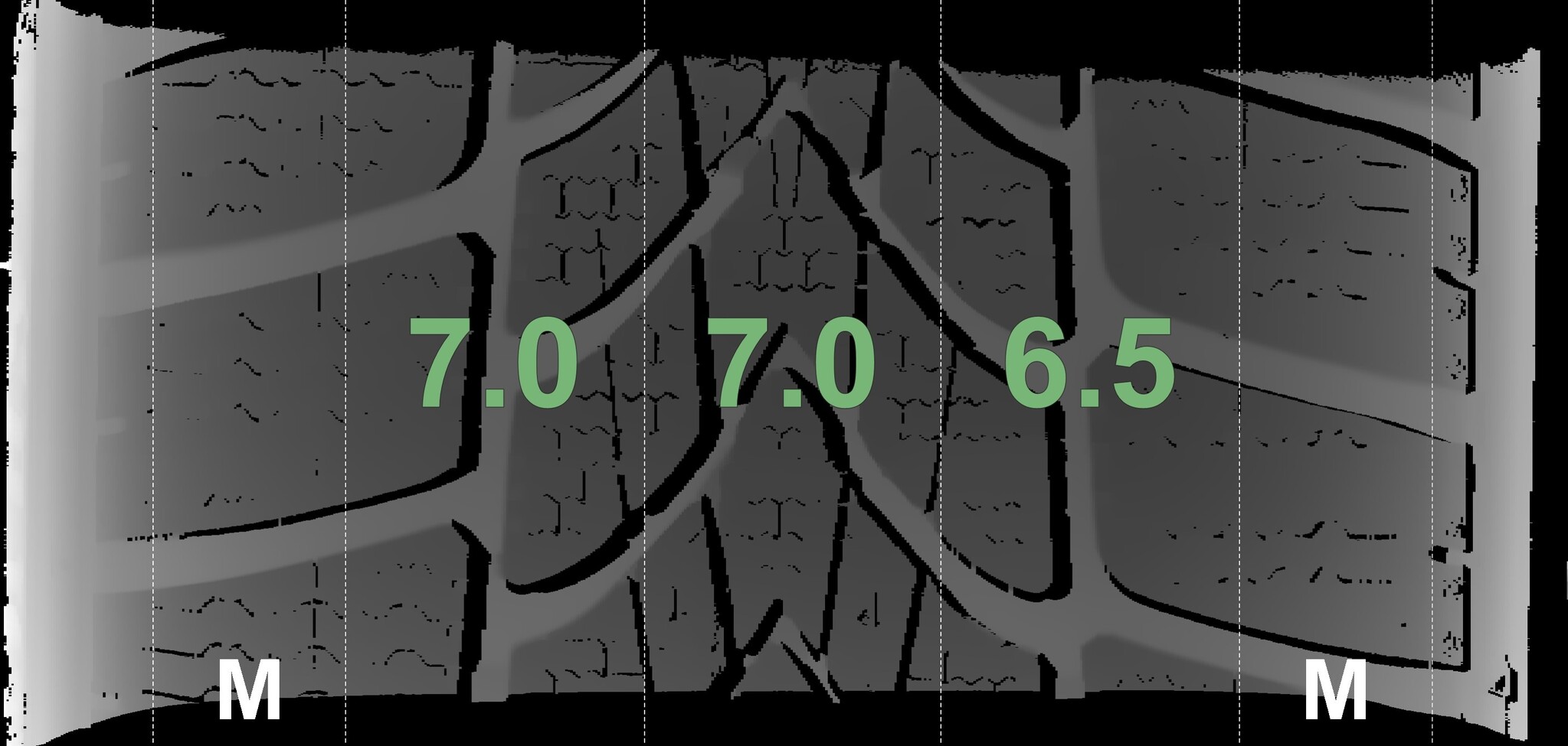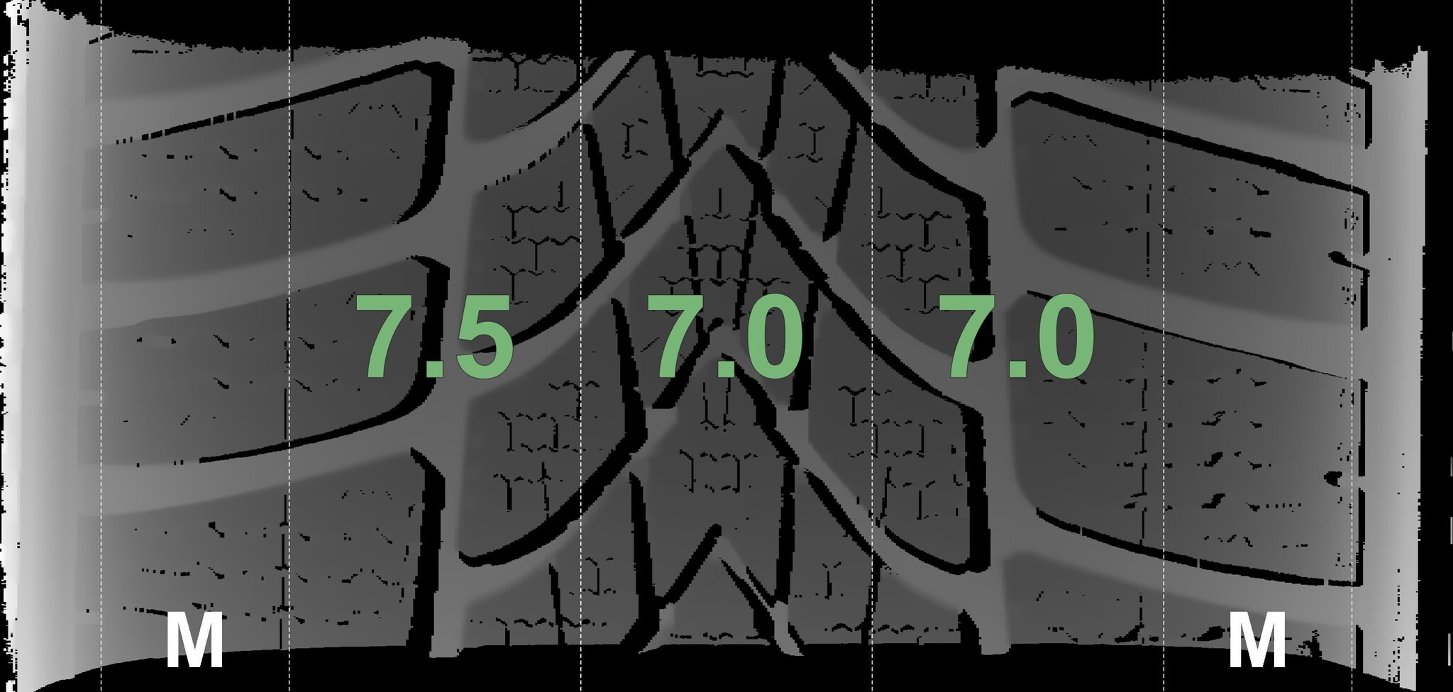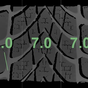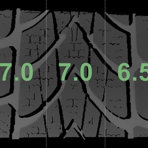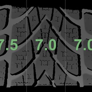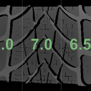 The measured tread depths and the details of the rims are shown above.