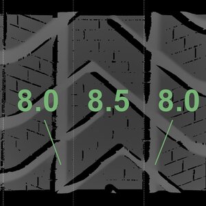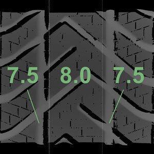 | Condition | Profile depth | DOT | Front Left | Demo studs still visible | 7.5 mm | 3919 |