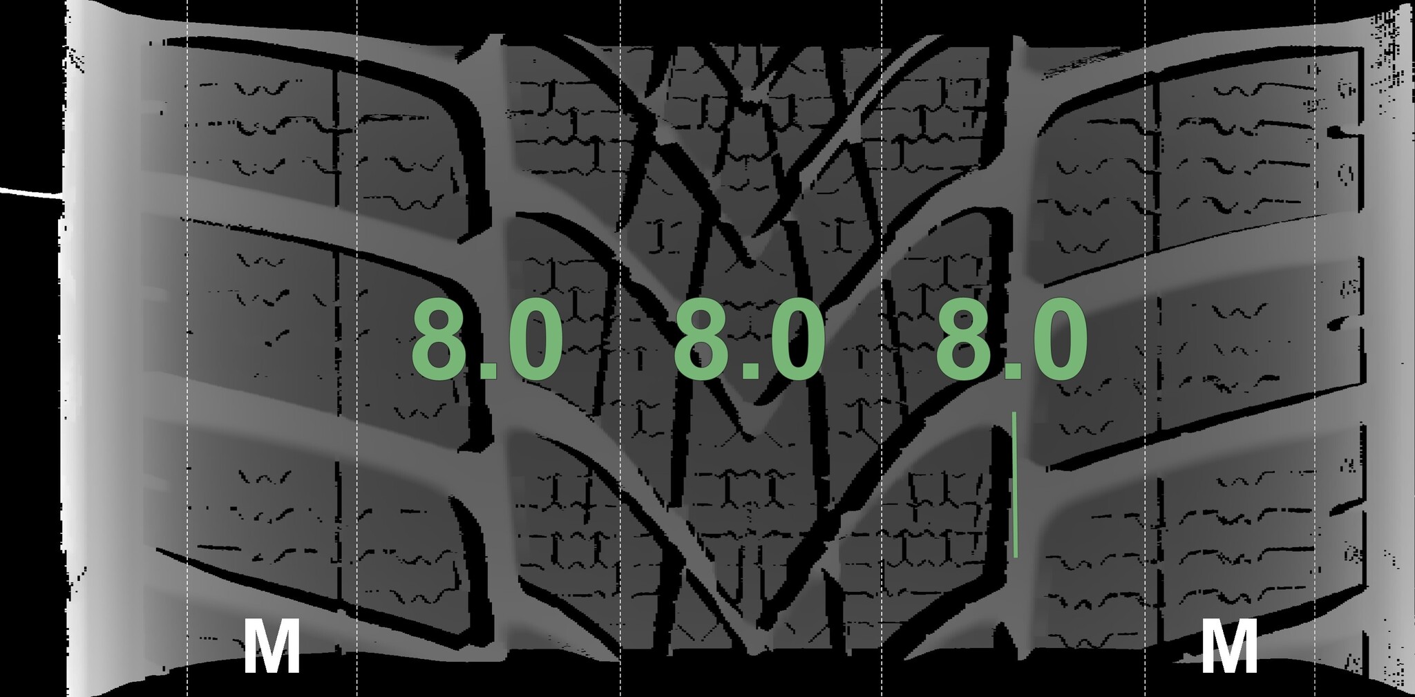 Condition | Profile depth | DOT | Front Right | New | 8.0 mm | 3023 |