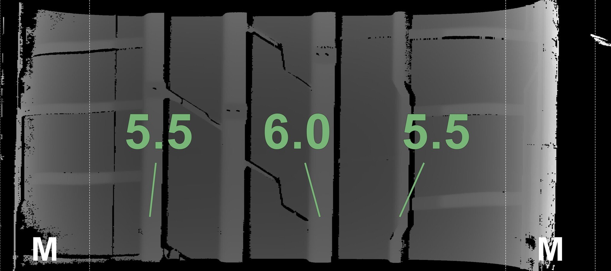 The measured tread depths and details of the rims are shown above.
