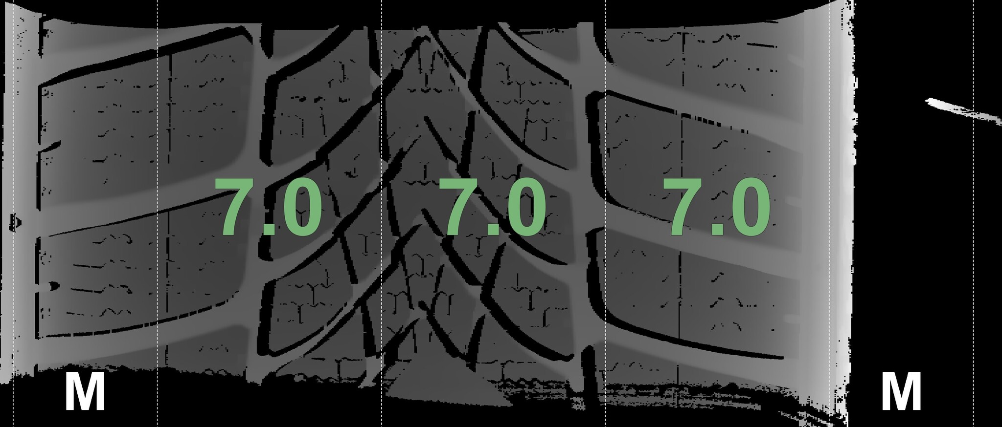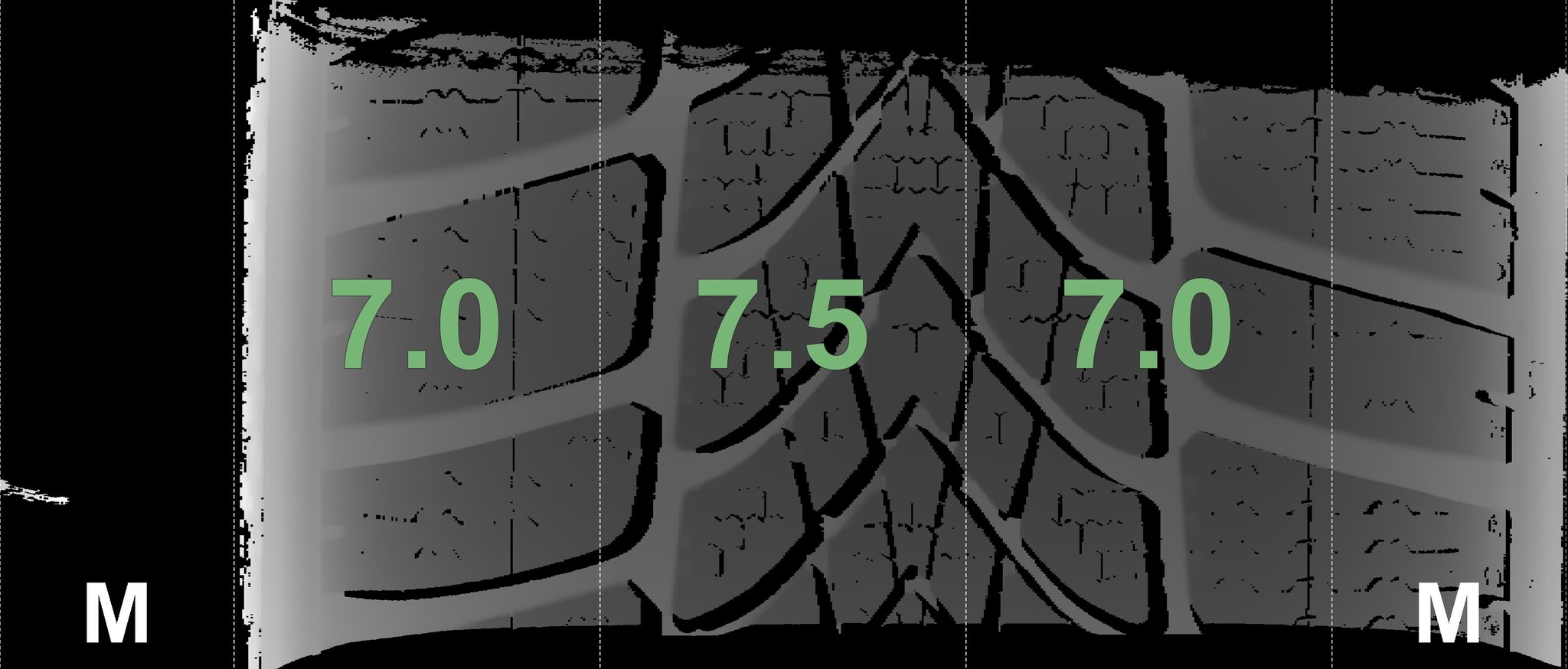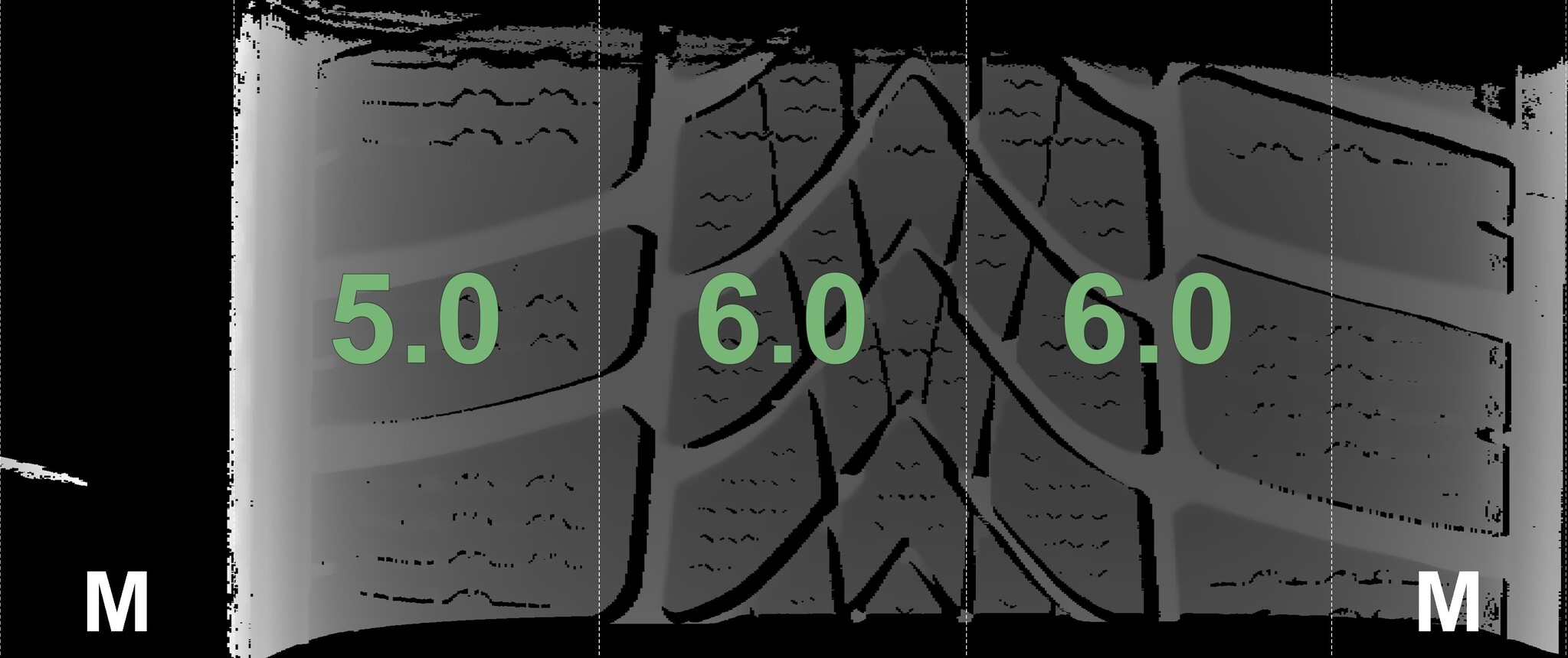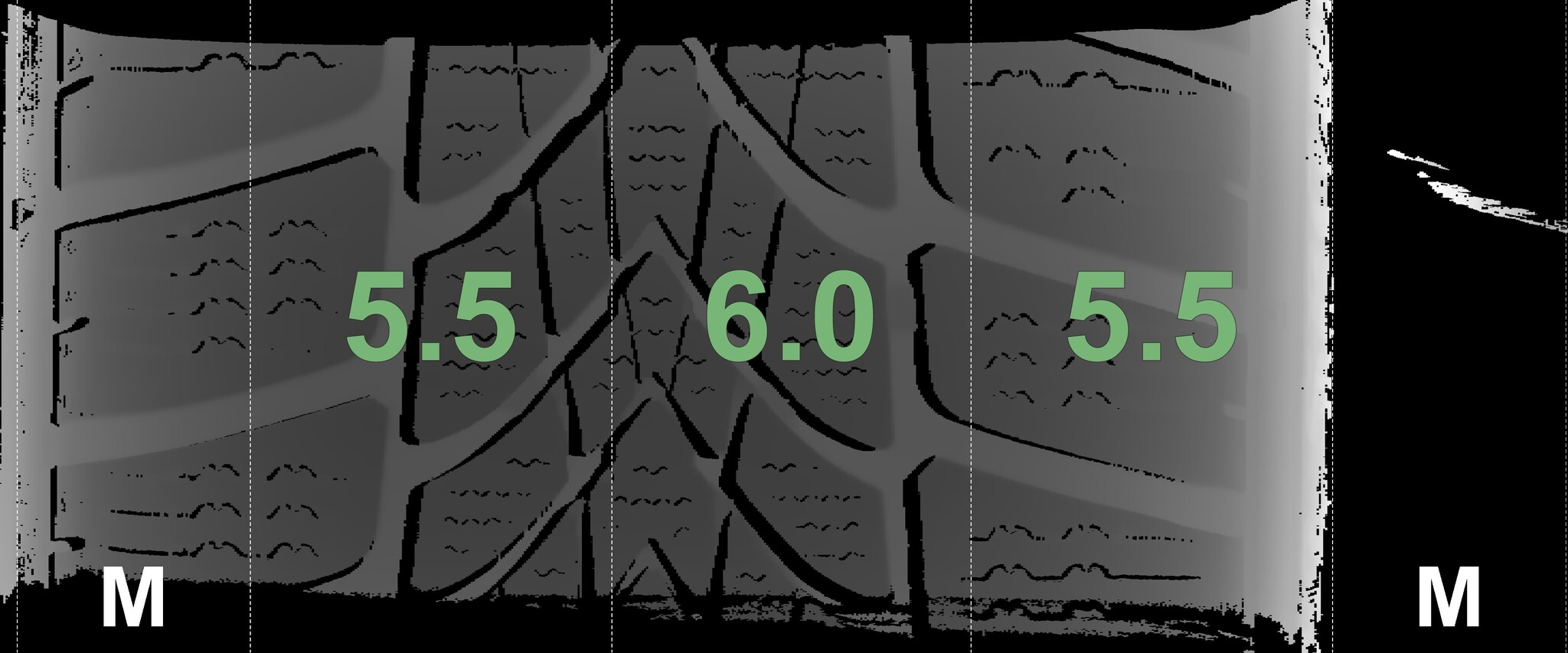 The measured tread depths and the details of the rims are shown above.