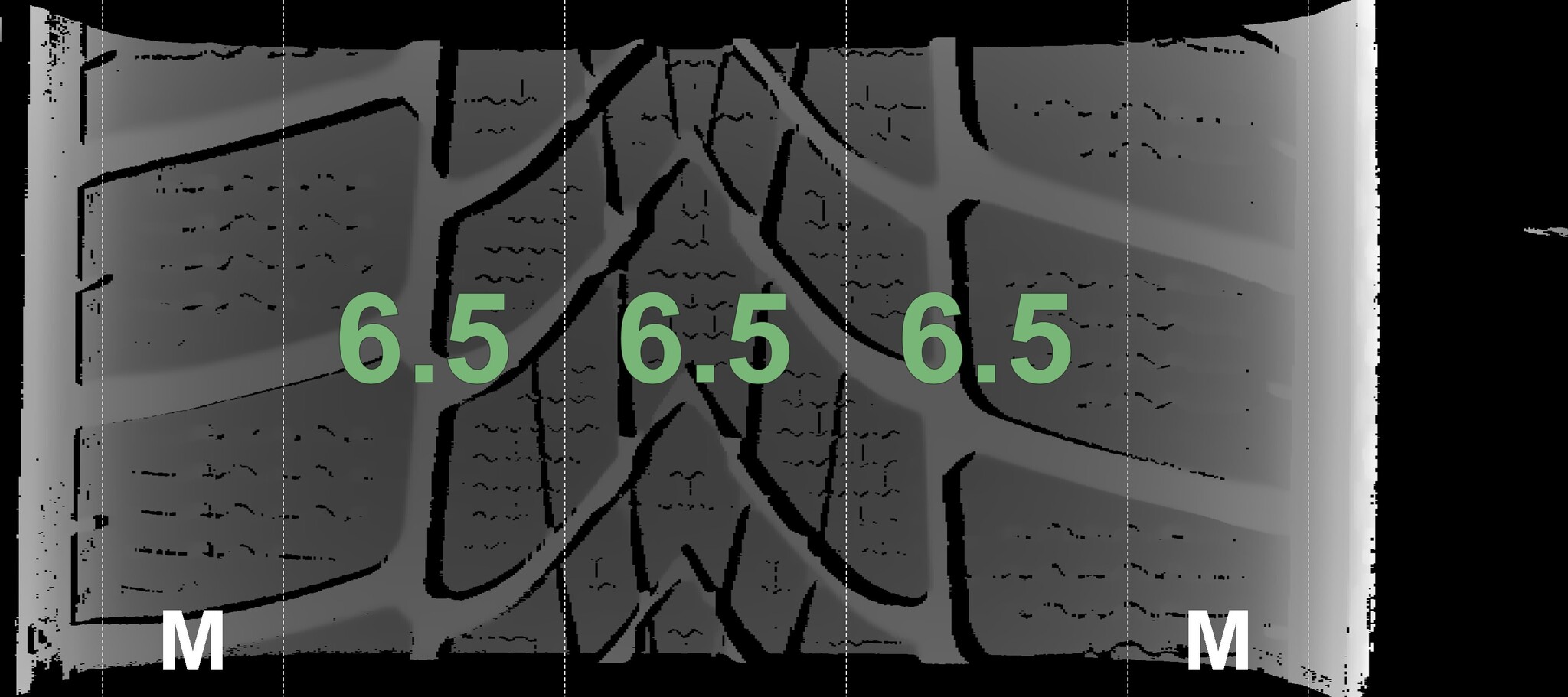 | Condition | Profile depth | DOT | Front Right | Used | 6.5 mm | 2620 |