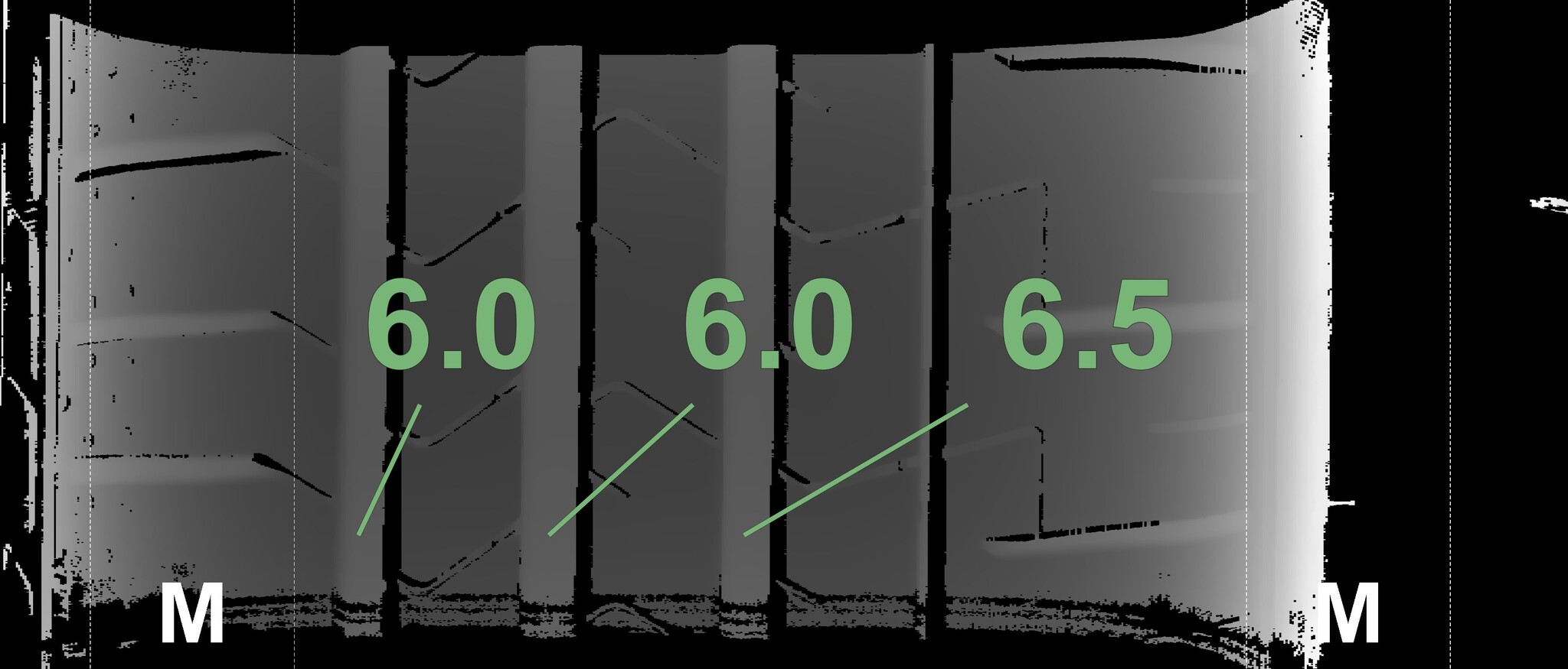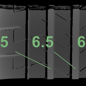 The measured tread depths and the details of the rims are shown above.