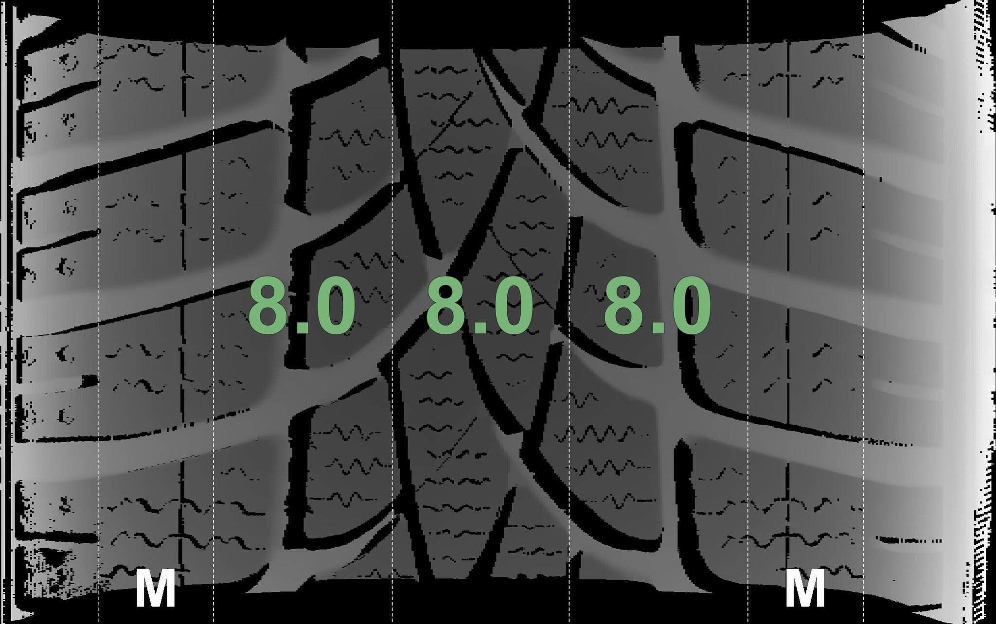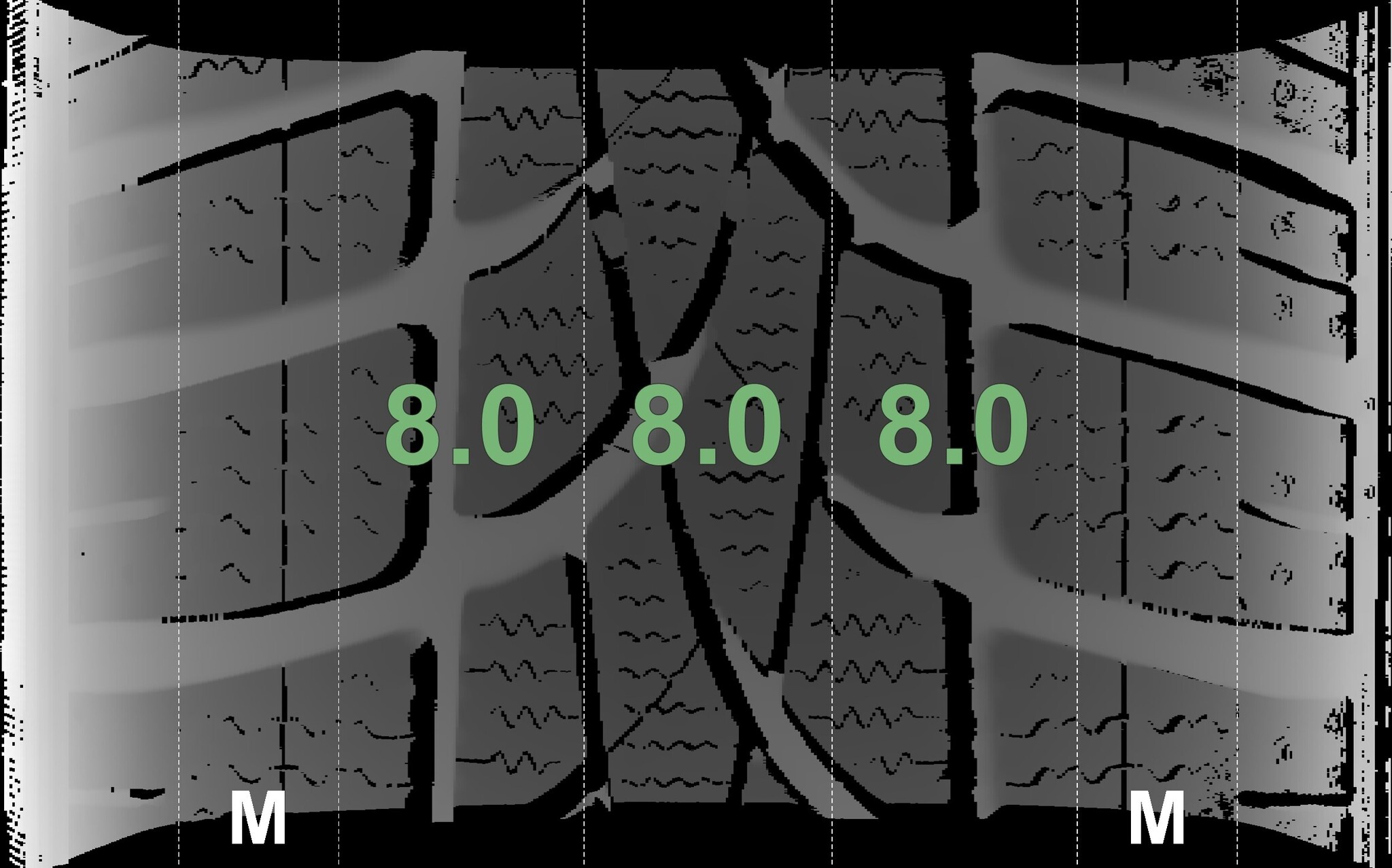 Condition | Profile depth | DOT | Front Right | Used | 8.0 mm | 4621 |