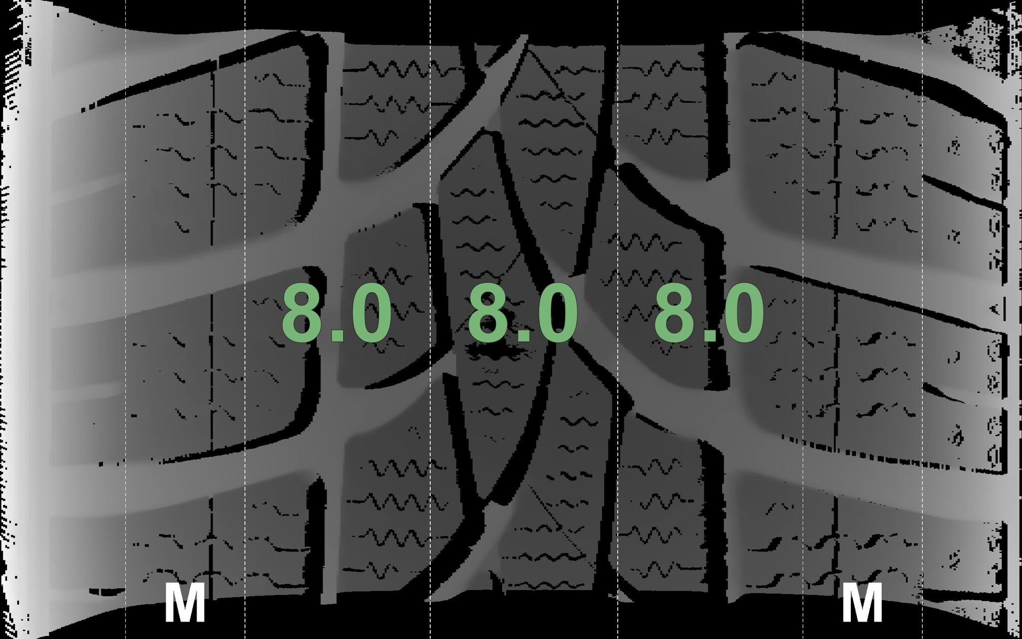 Condition | Profile depth | DOT | Front Left | Used | 8.0 mm | 4621 |
