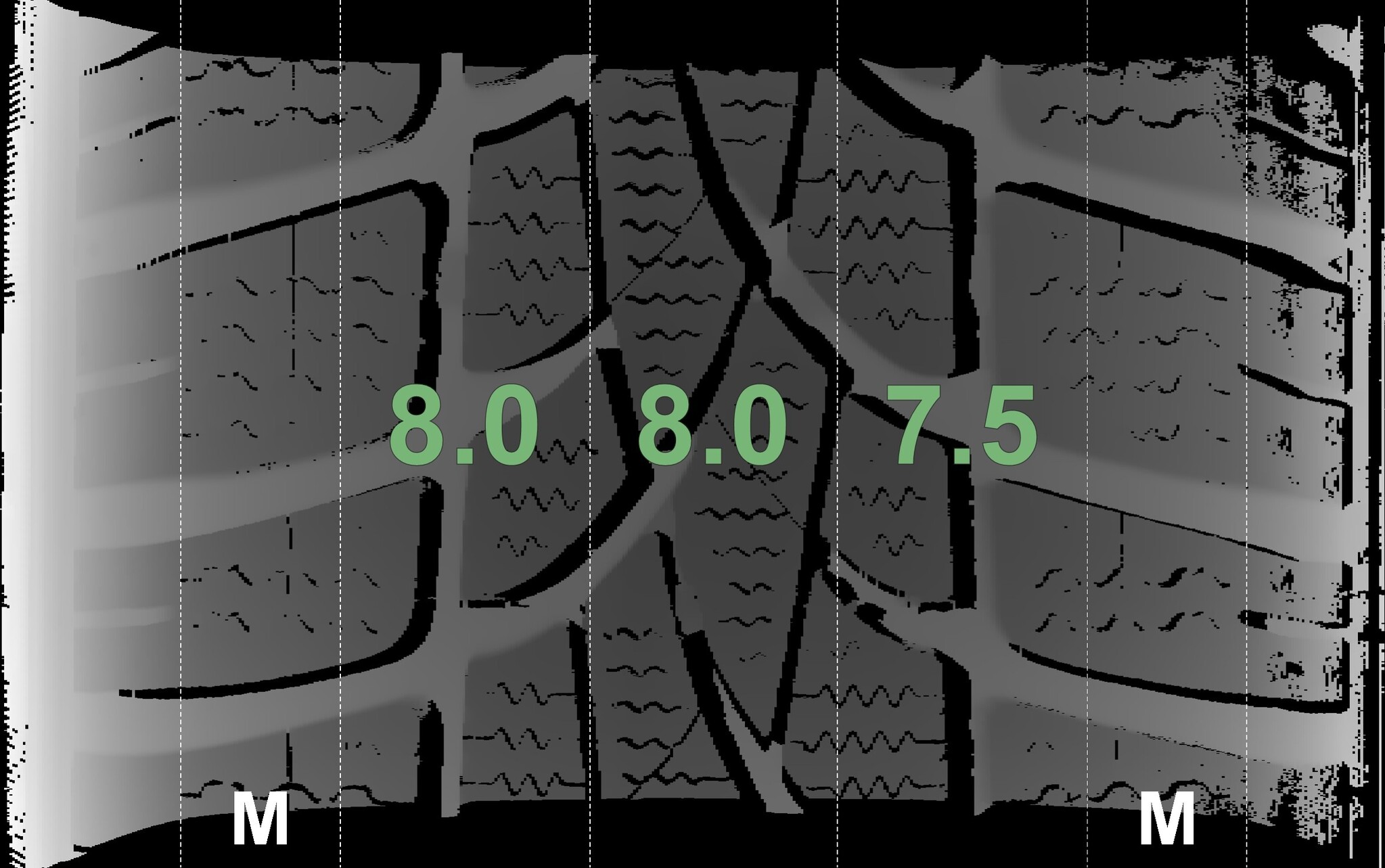 Condition | Profile depth | DOT | Front Right | Used | 5.5 mm | 4319 |