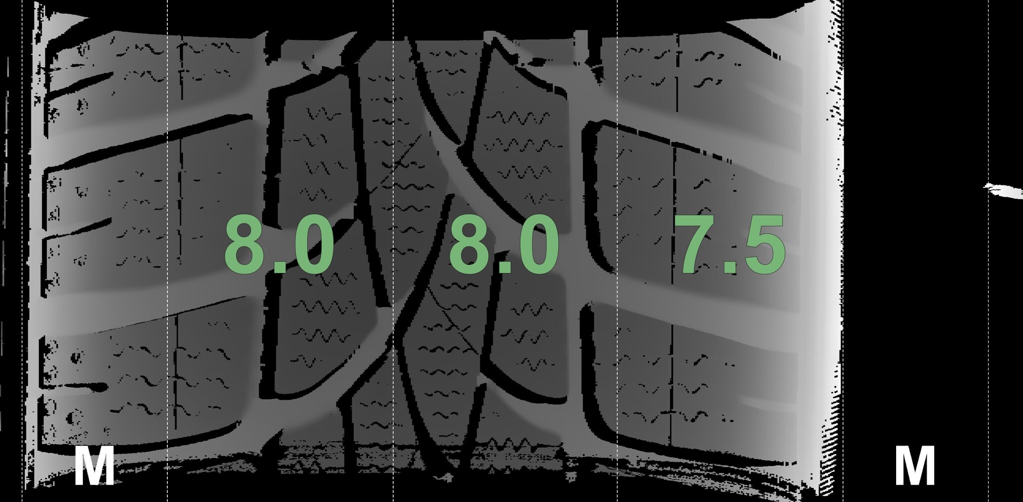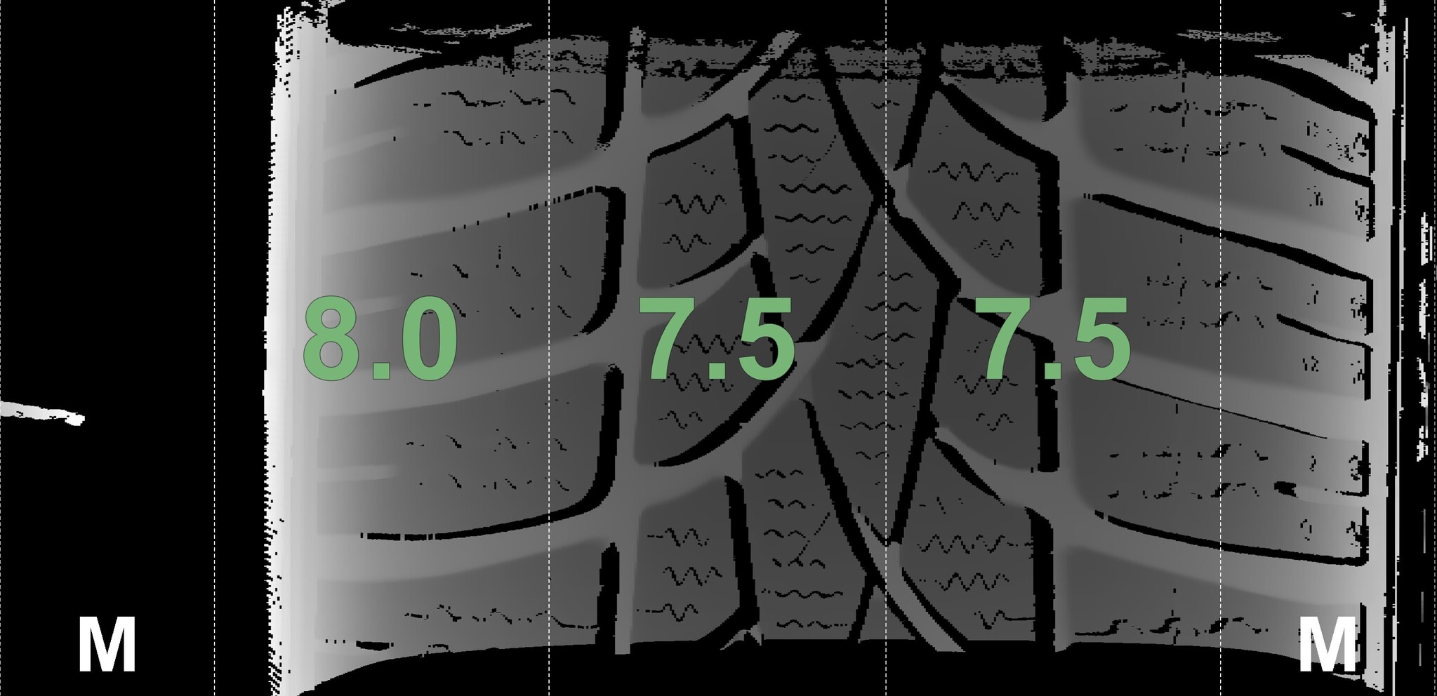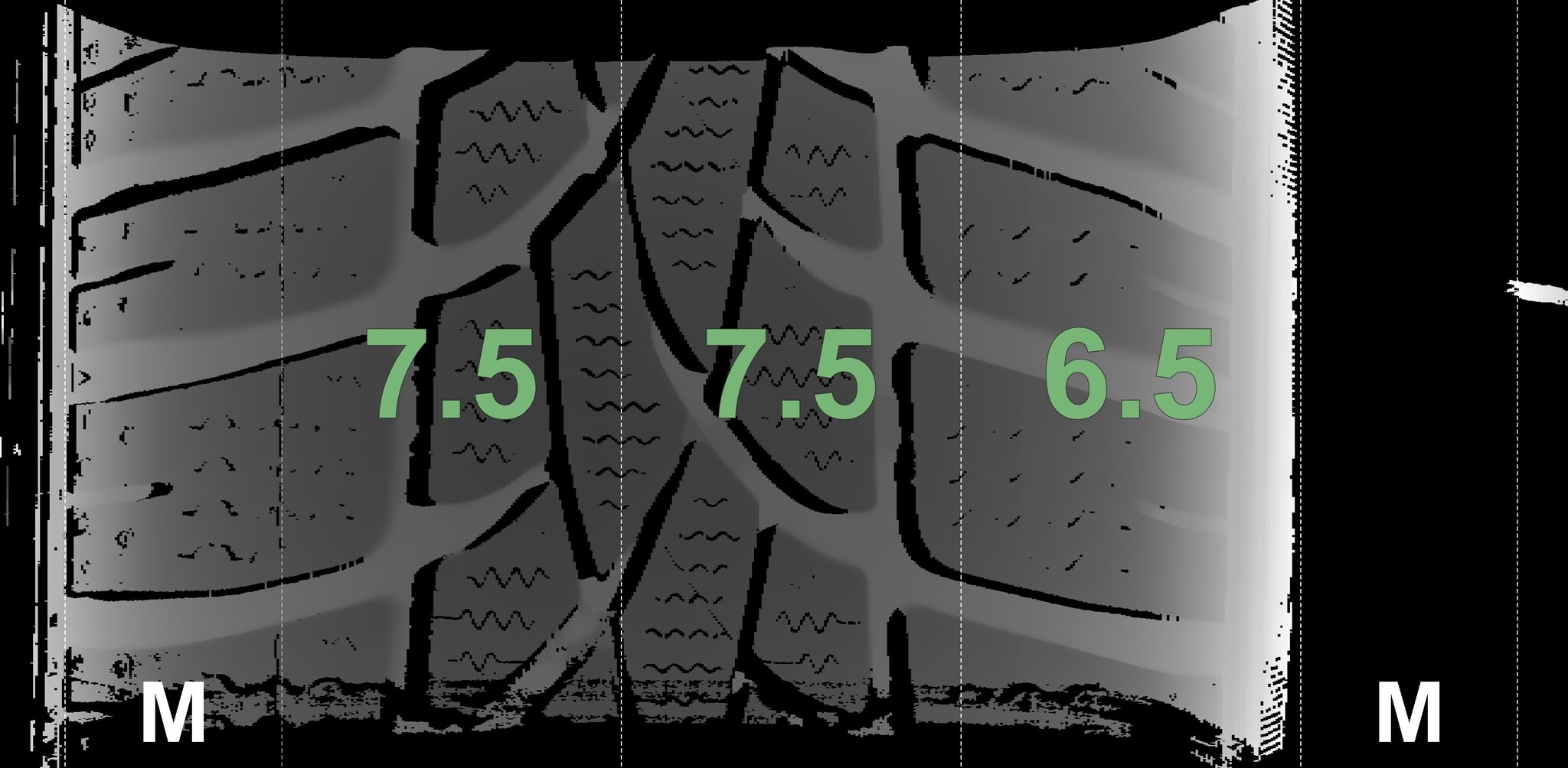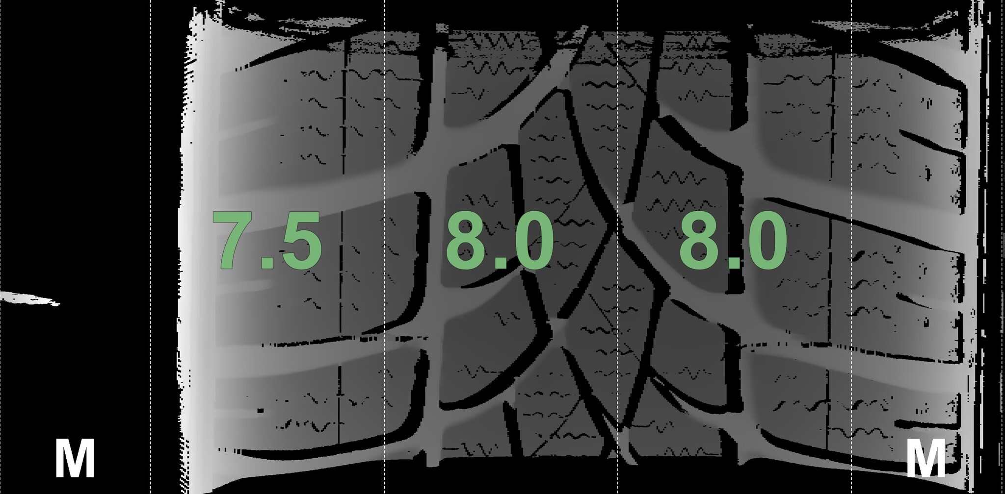 | Condition | Profile depth | DOT | Rear Left | Used | 7.7 mm | 4121 |