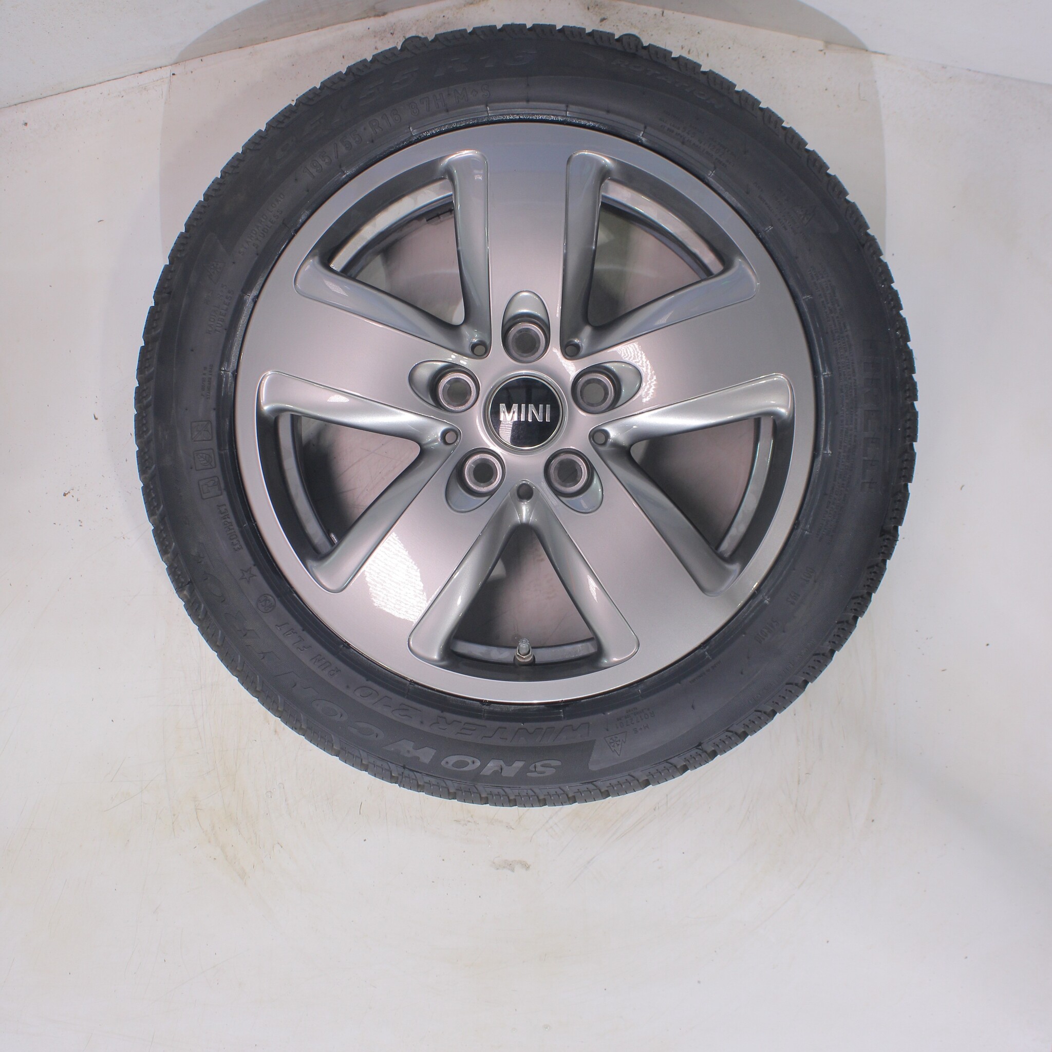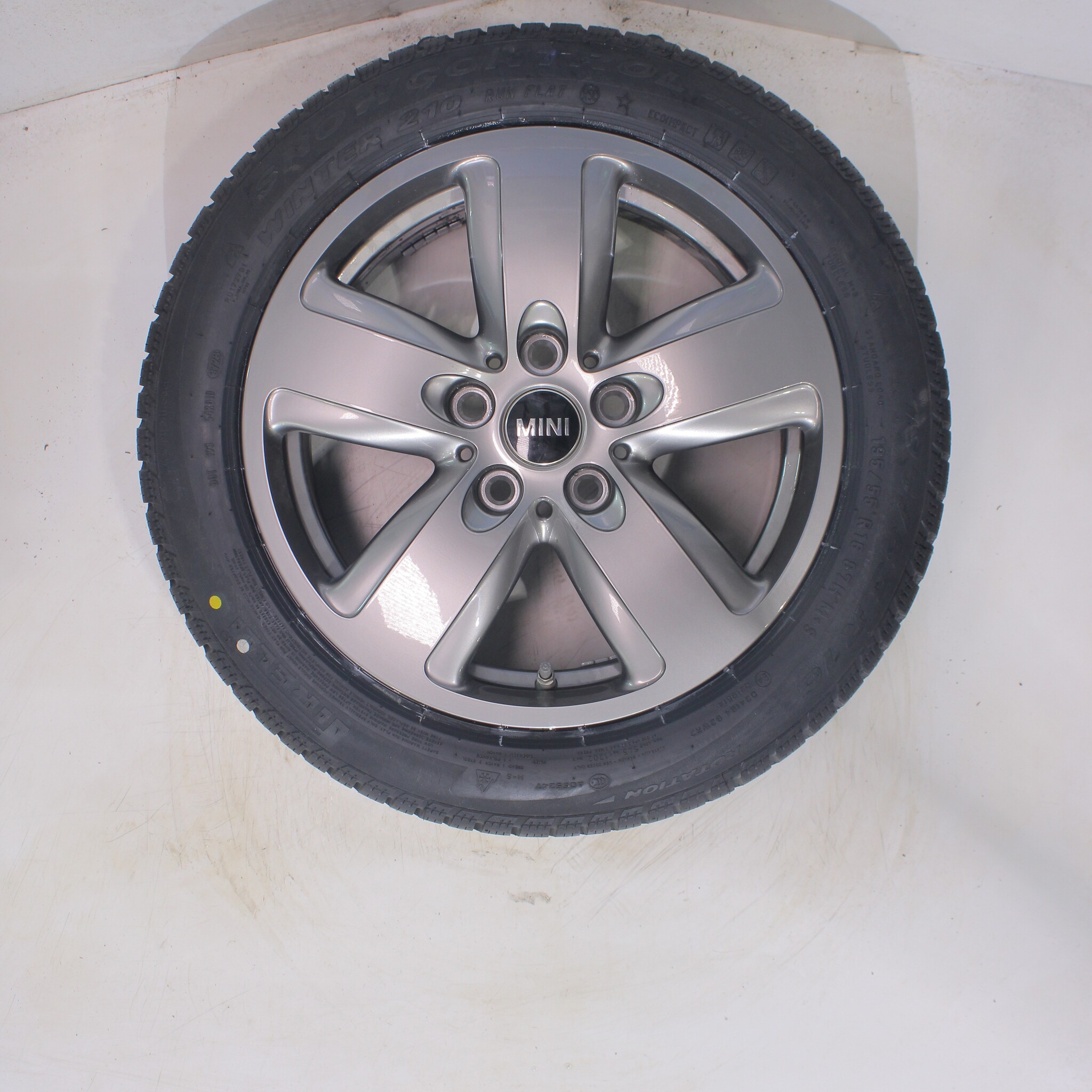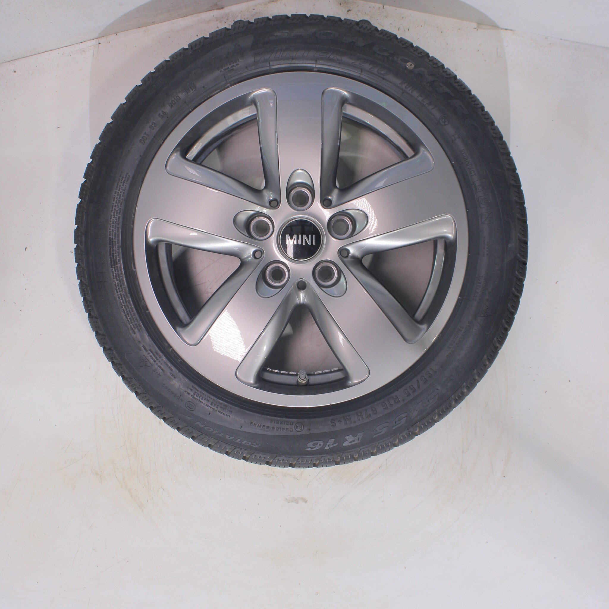 Original wheel set from Mini, styling 517 inch rims with Pirelli Snowcontrol Serie3 Winter210 Runflat Winter tires. These rims are original rims from the Mini brand and suitable for: Mini Cooper / S / One / Cabrio F55 F56 F57.