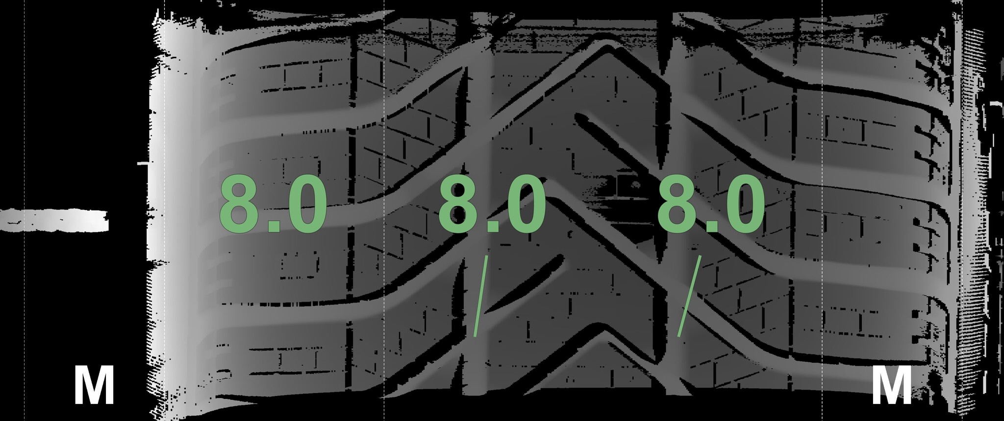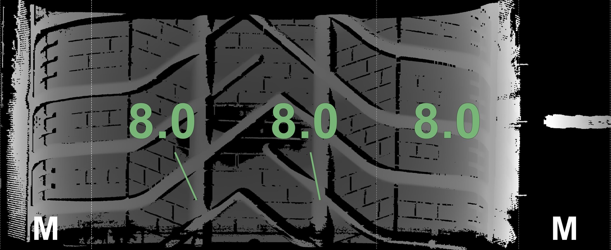 The measured tread depths and the details of the rims are shown above.