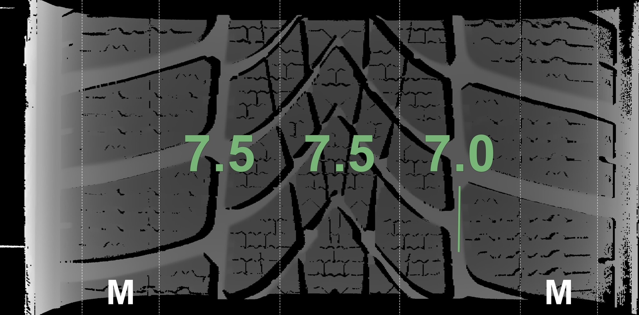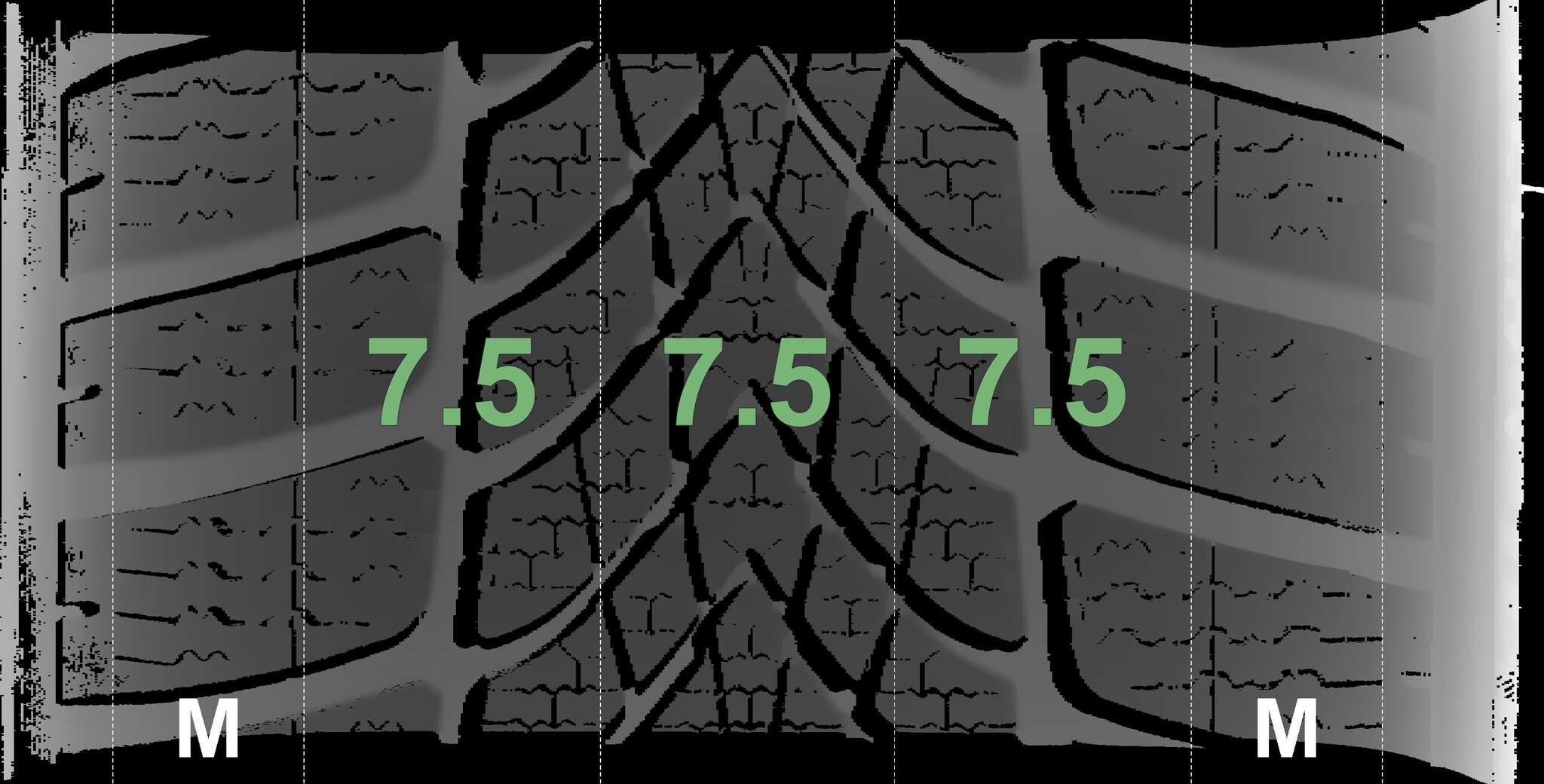 Condition | Profile depth | DOT | Front Right | Used | 7.5 mm | 3323 |