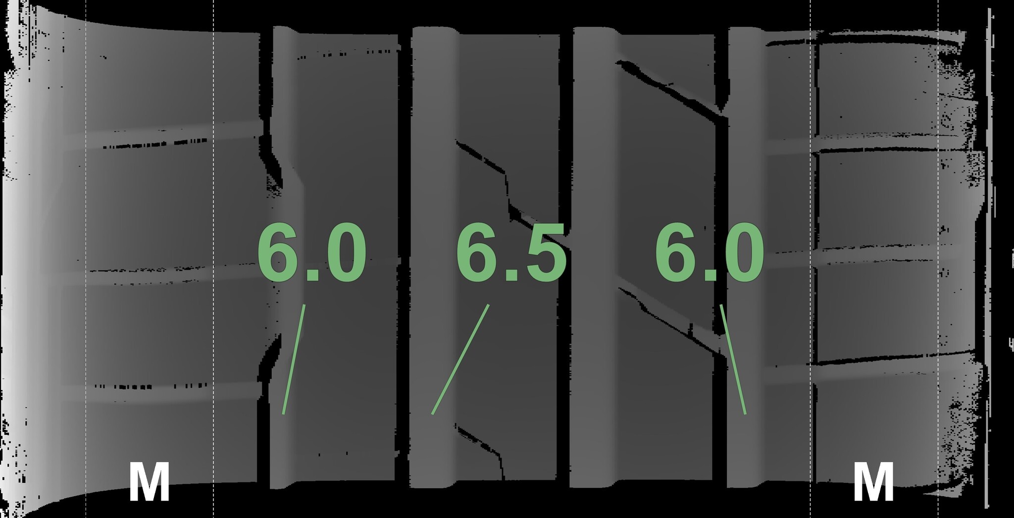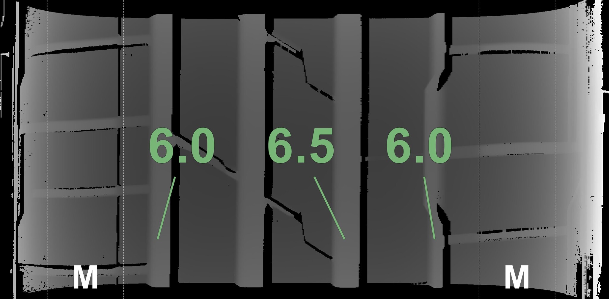 The measured tread depths and details of the rims are shown above.