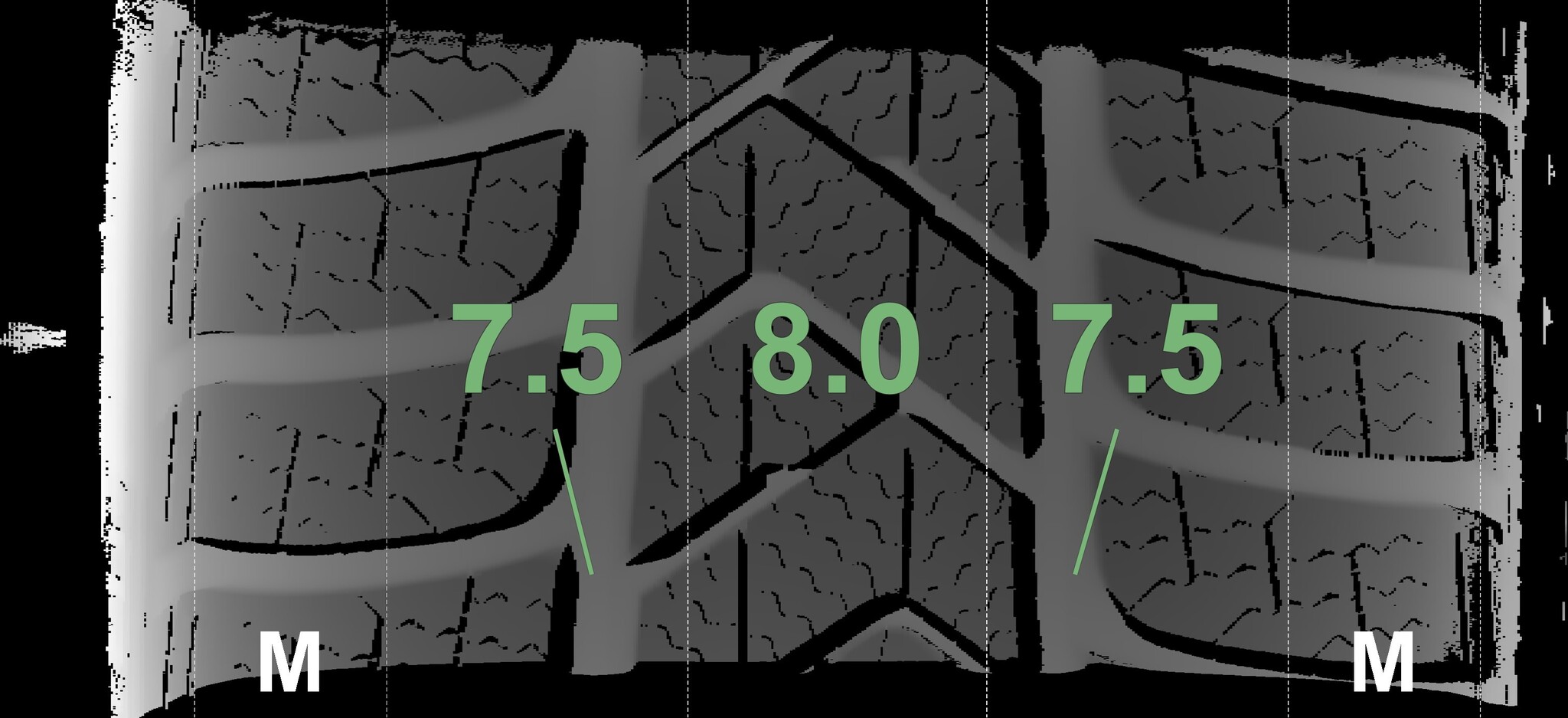 | Condition | Profile depth | DOT | Front Right | New | 7.5 mm | 2125 |