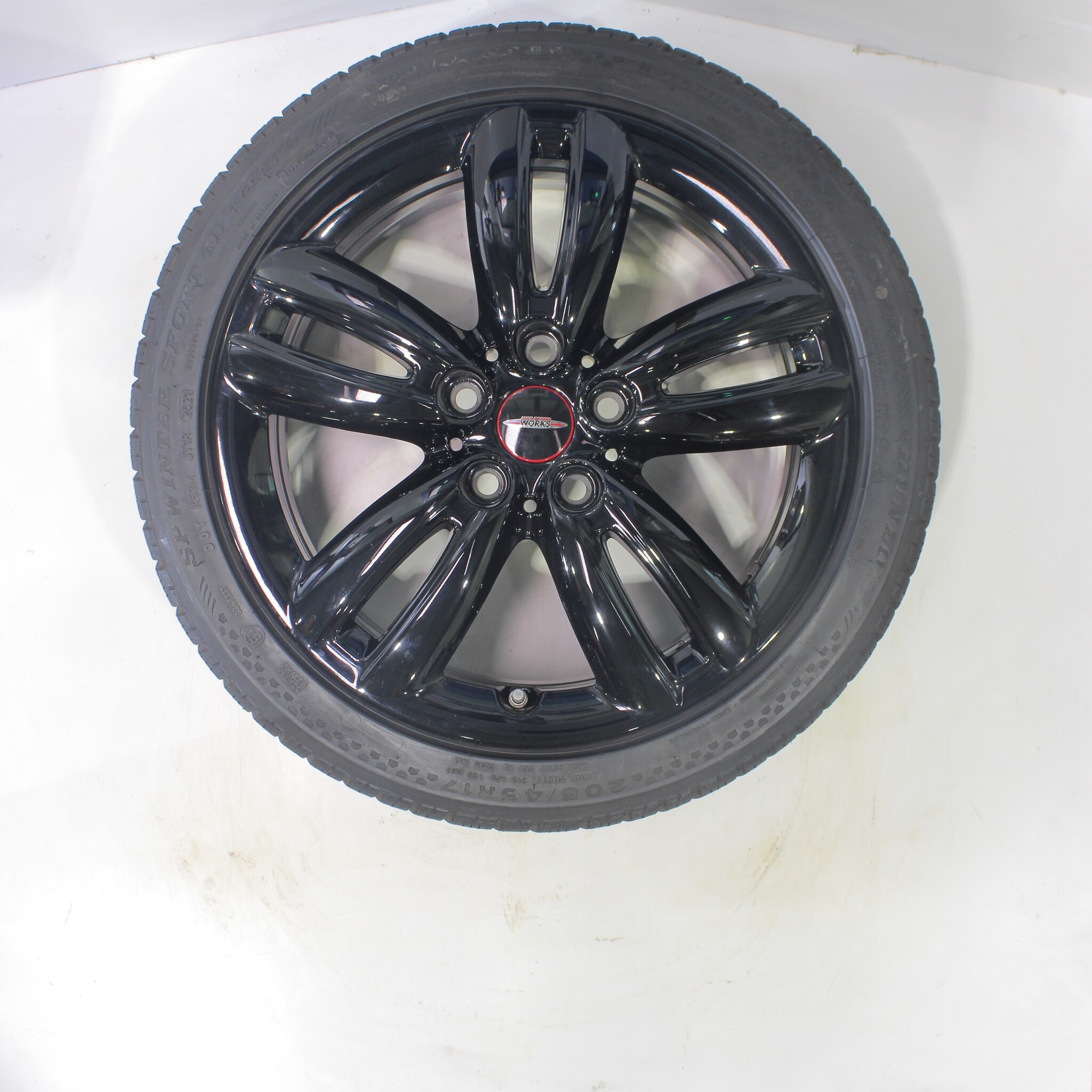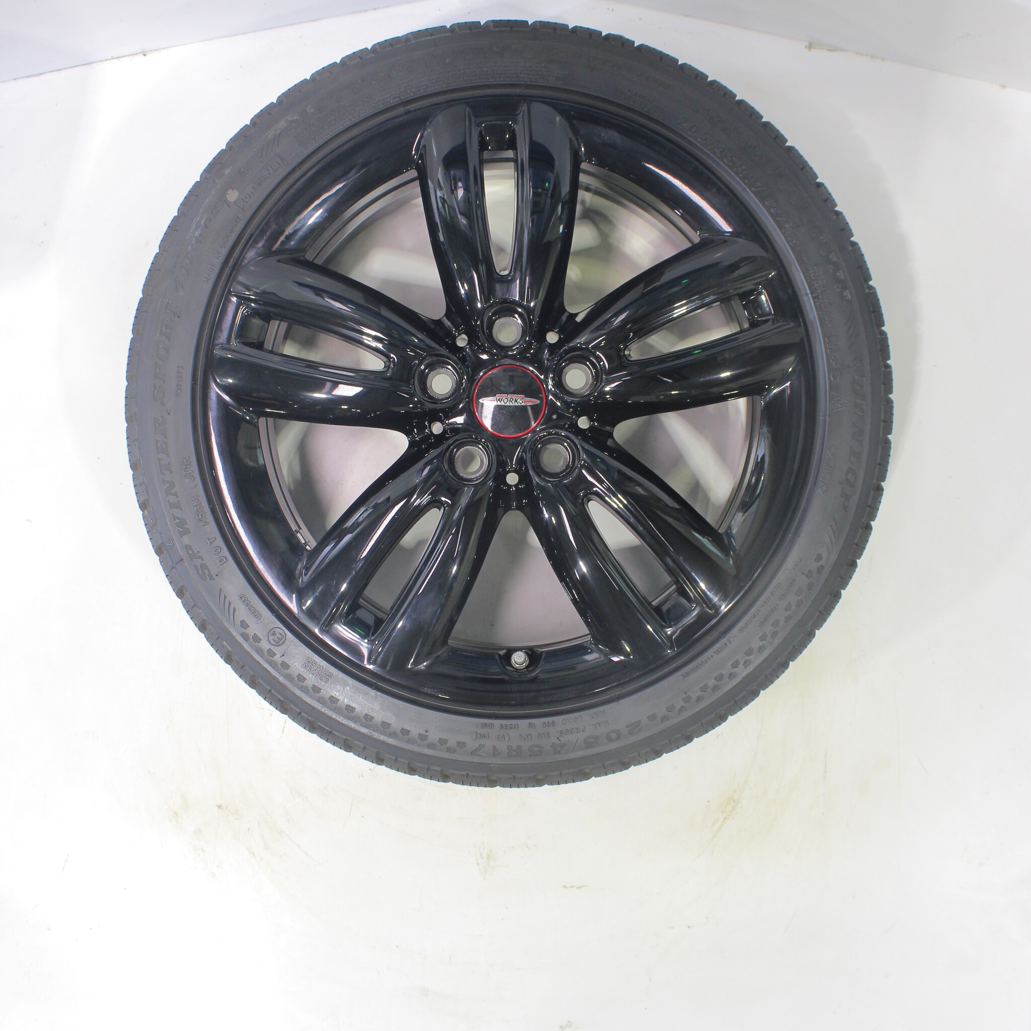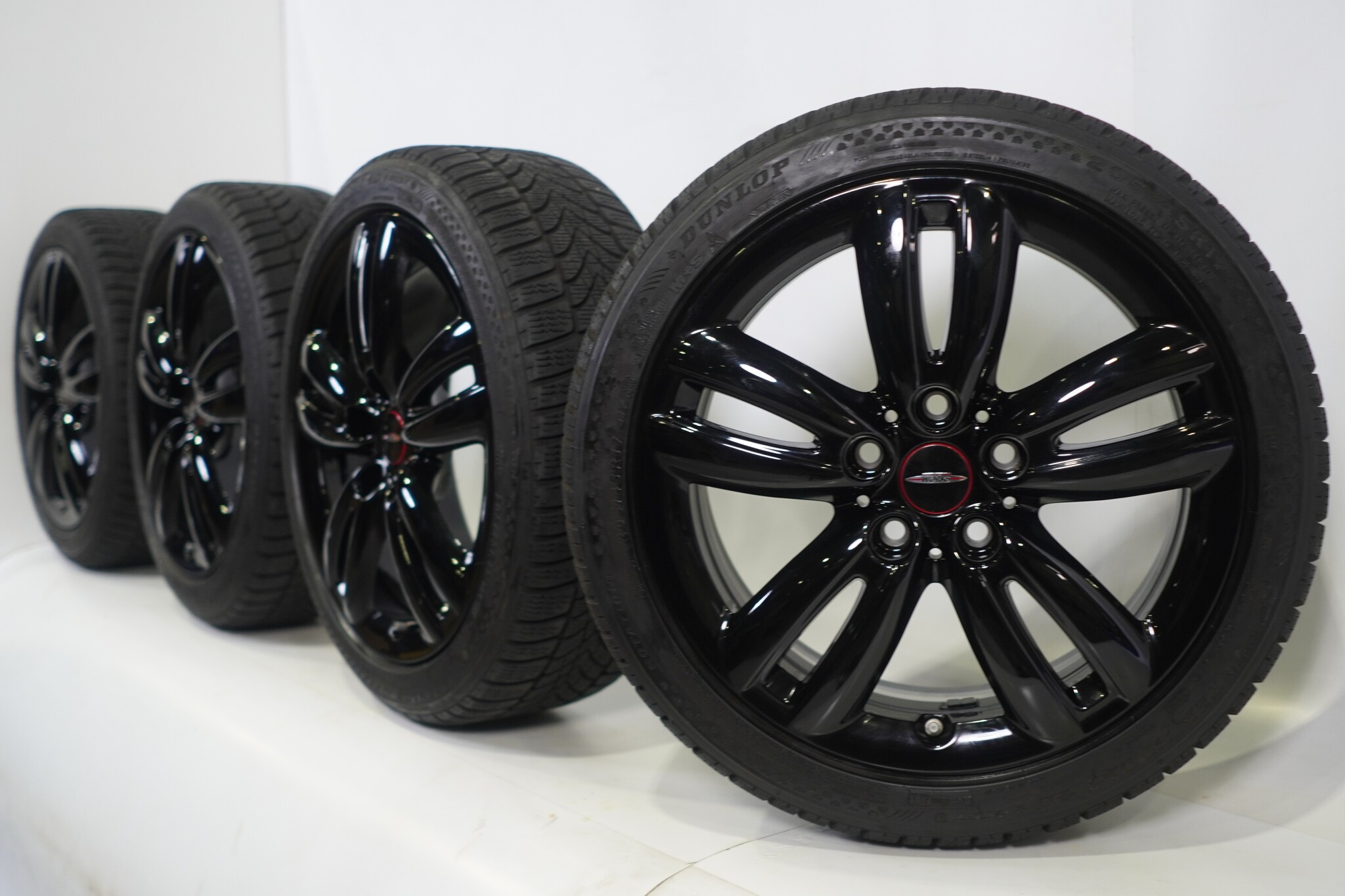 Original wheelset from Mini, styling JCW501 17 inch rims with Dunlop SP WINTER SPORT 4D Runflat Winter tires. These rims are original rims of the brand Mini and suitable for: Mini Cooper / S / One / Convertible F55 F56 F57.