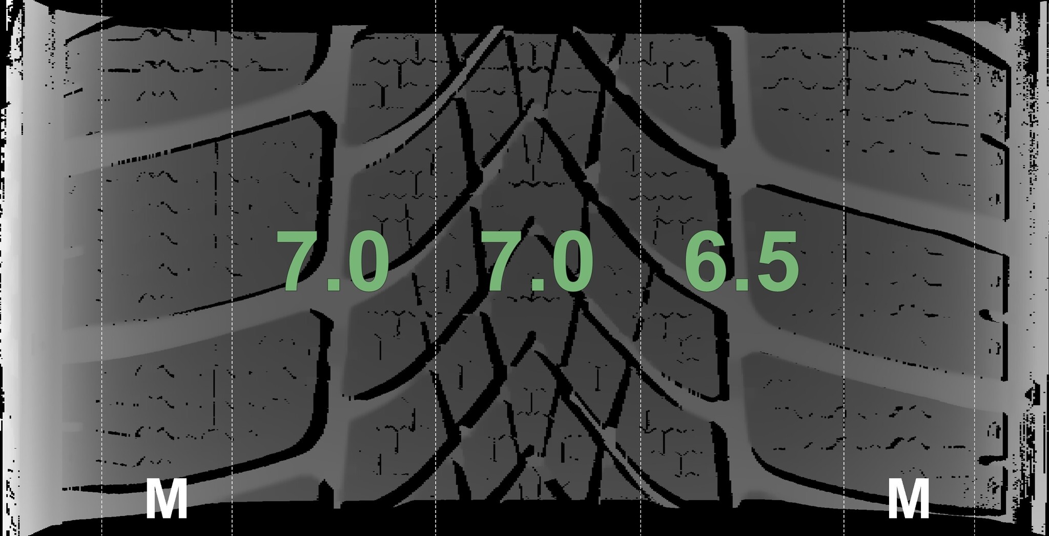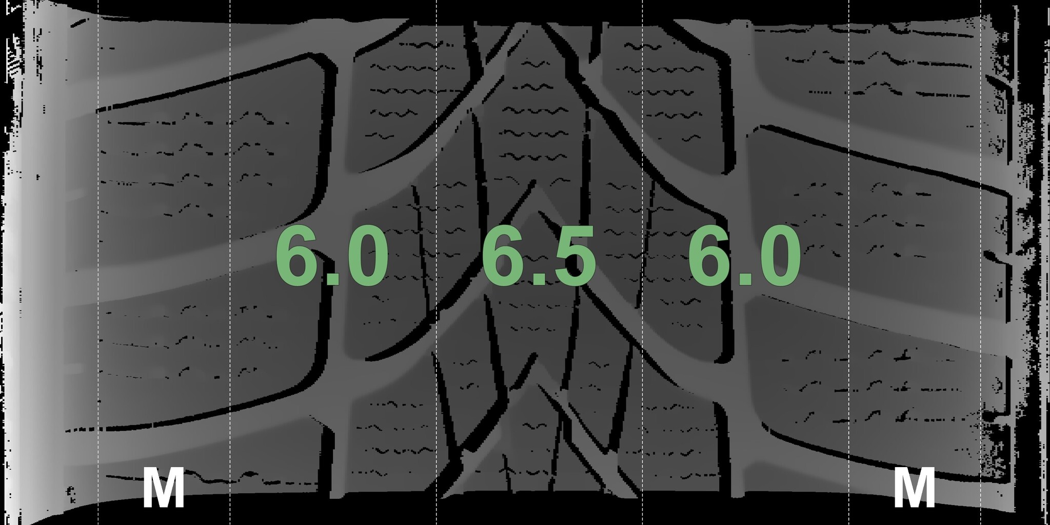 The measured tread depths and details of the rims are shown above.