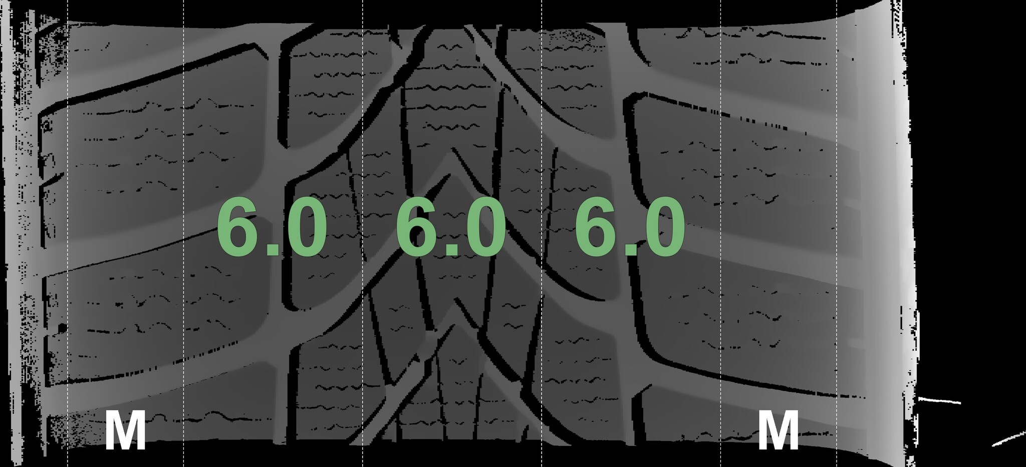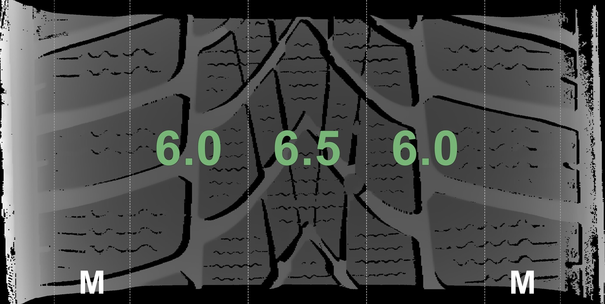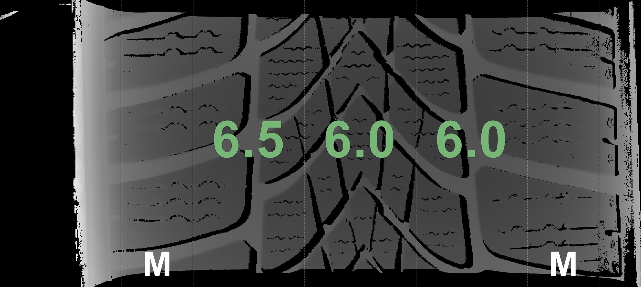 | Condition | Profile depth | DOT | Front Left | Used | 6.0 mm | 2721 |