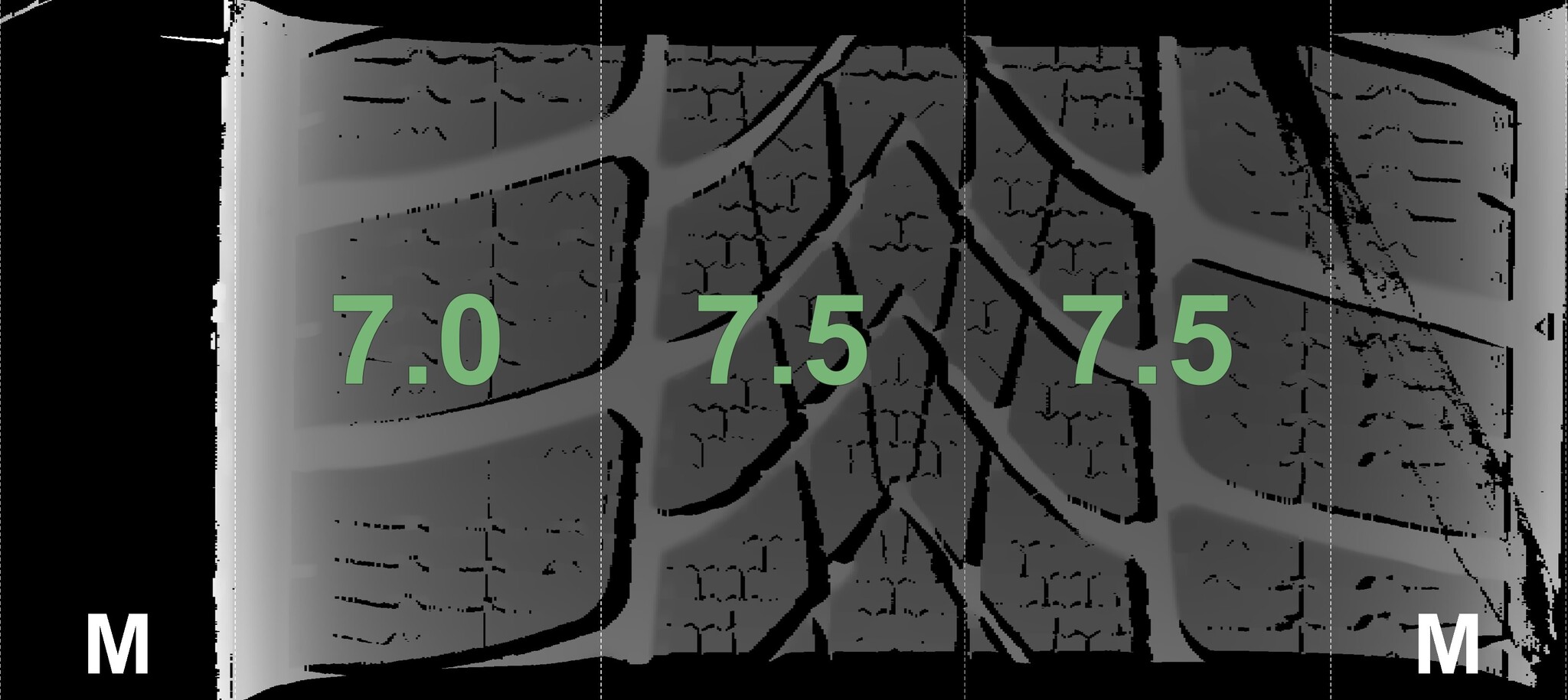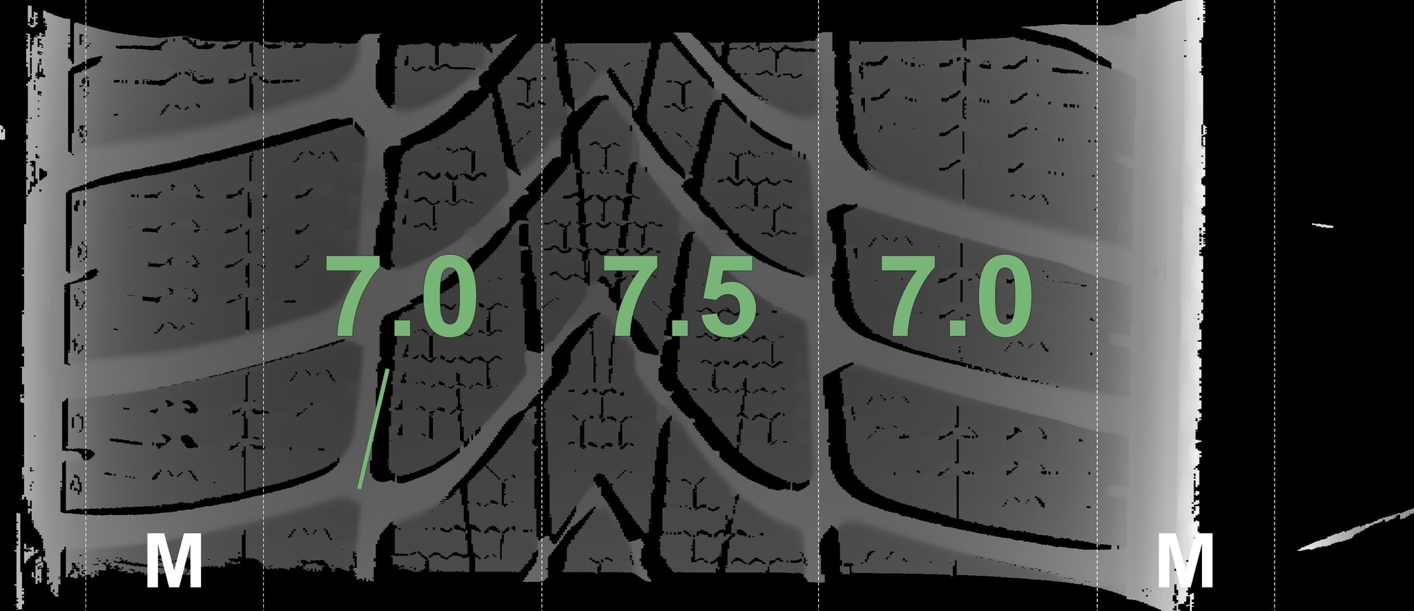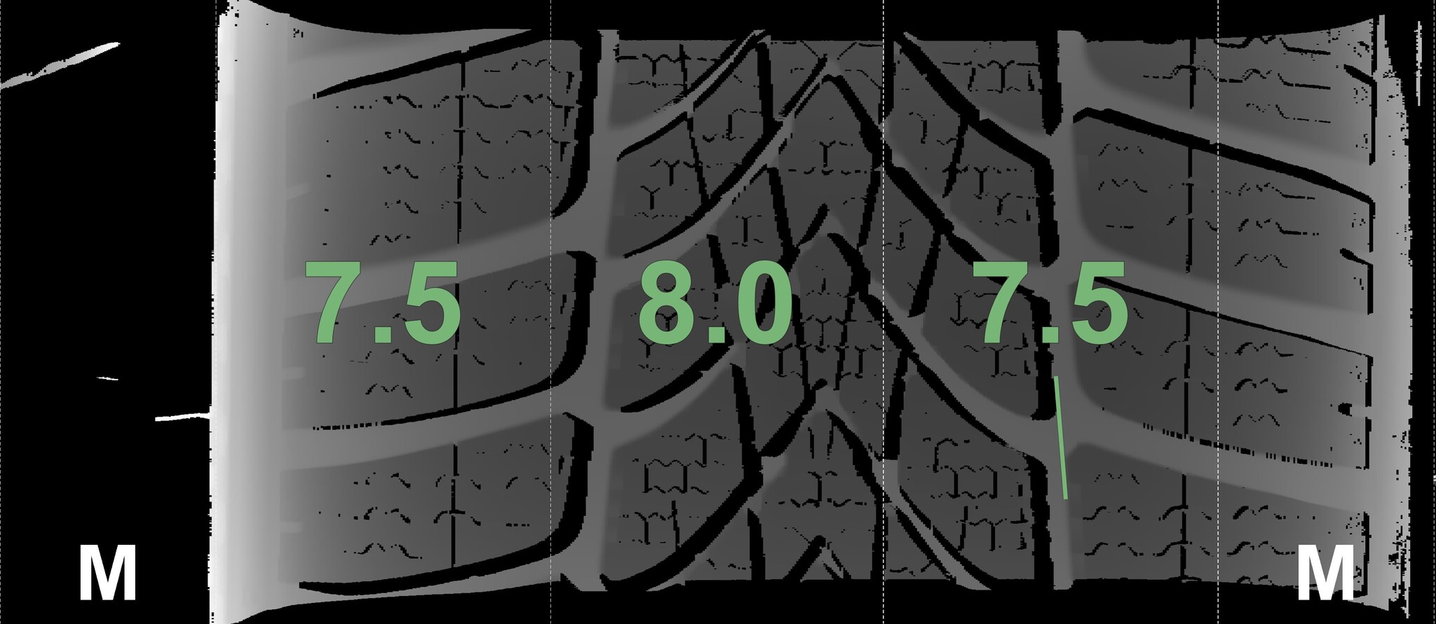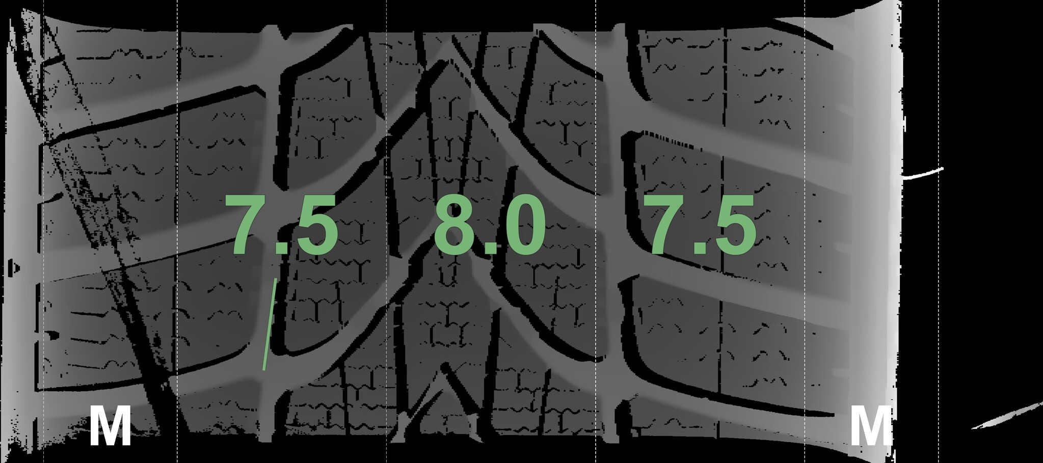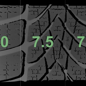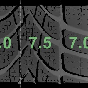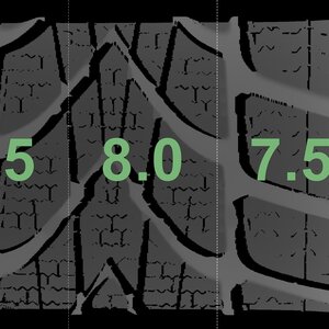The measured tread depths and the details of the rims are shown above.