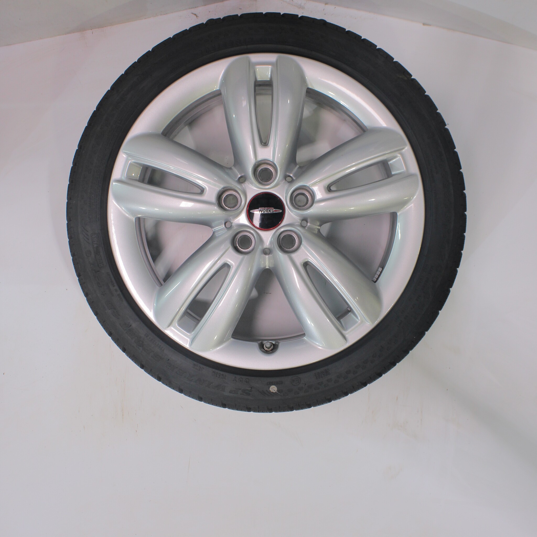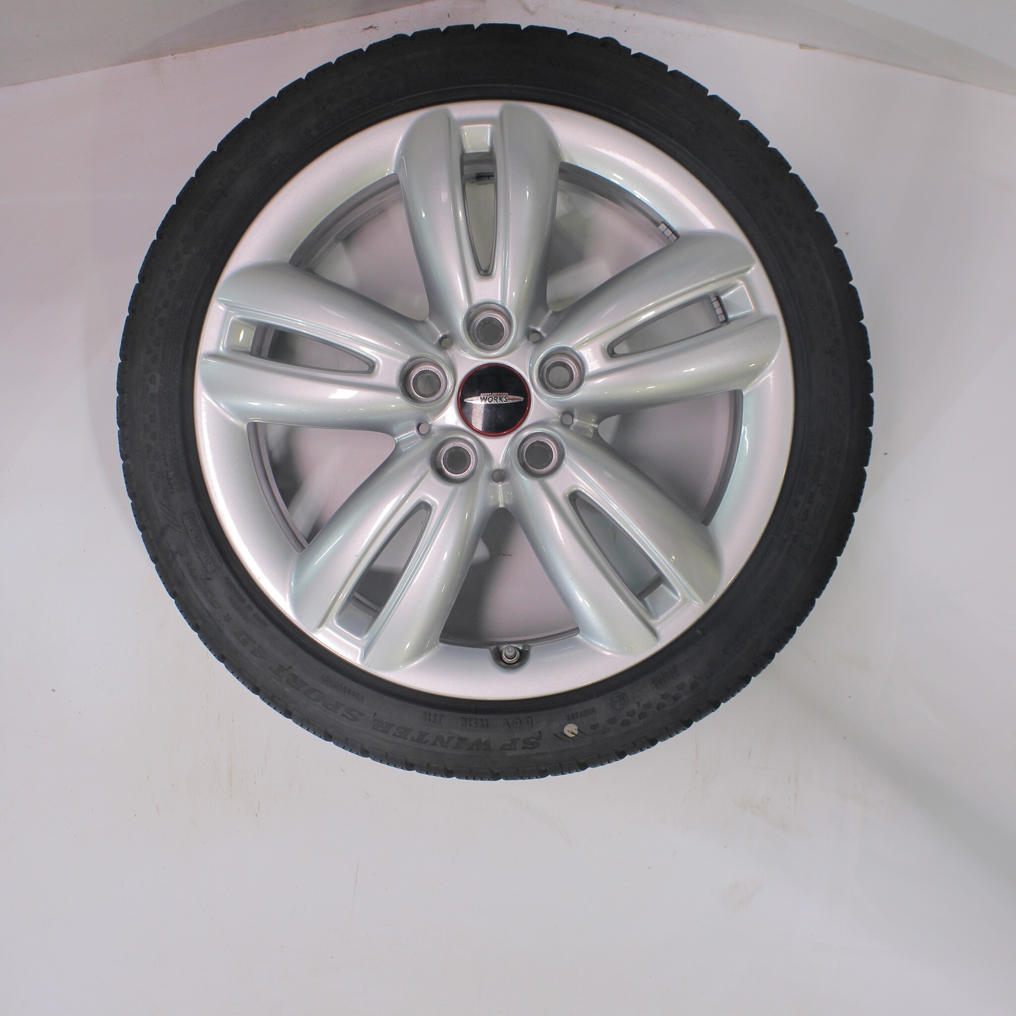 Original wheel set from Mini, styling JCW501, 17-inch rims with Dunlop SPWintersport 4D Runflat Winter Tires. These rims are original rims from the brand Mini and suitable for: Mini Cooper / S / One / Cabrio F55 F56 F57.