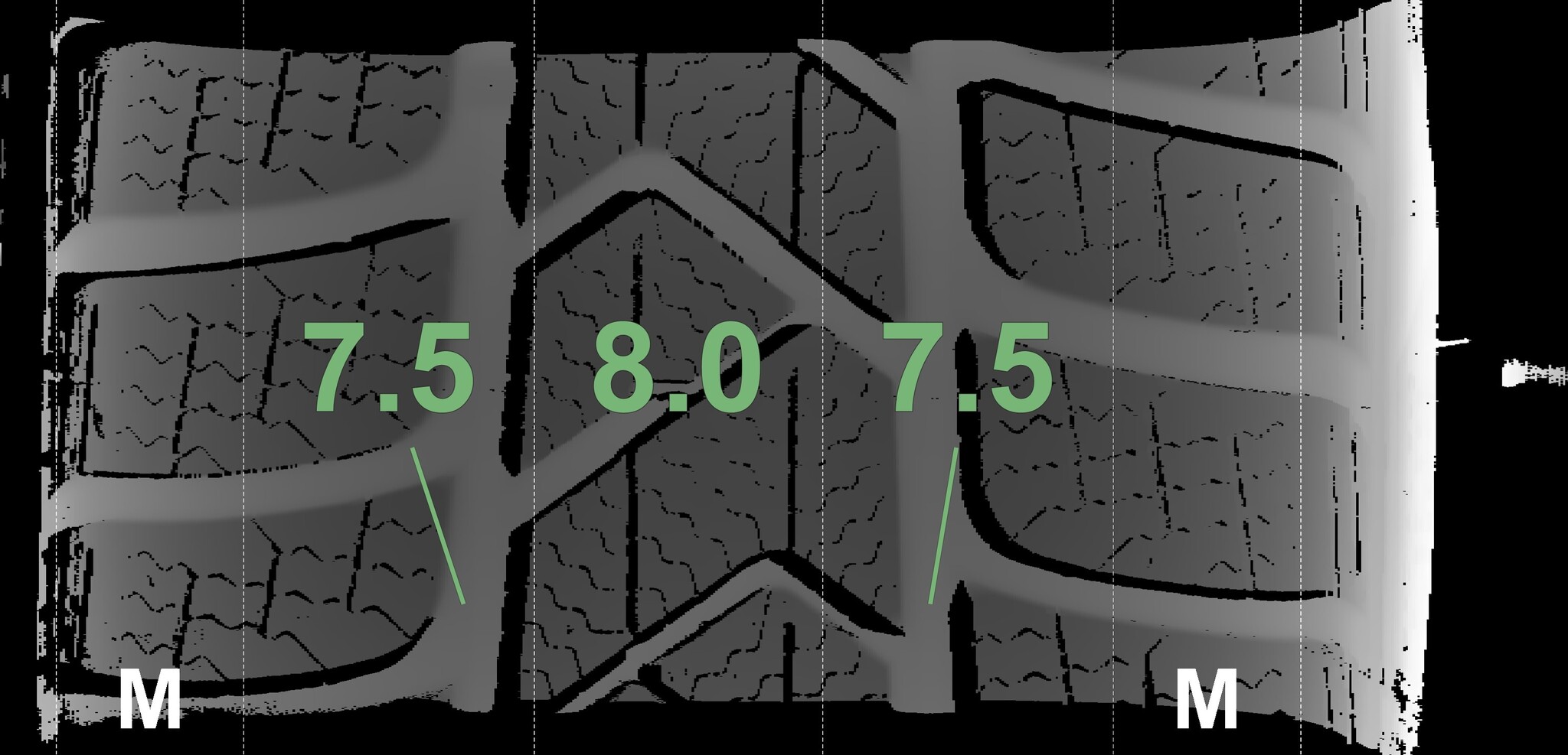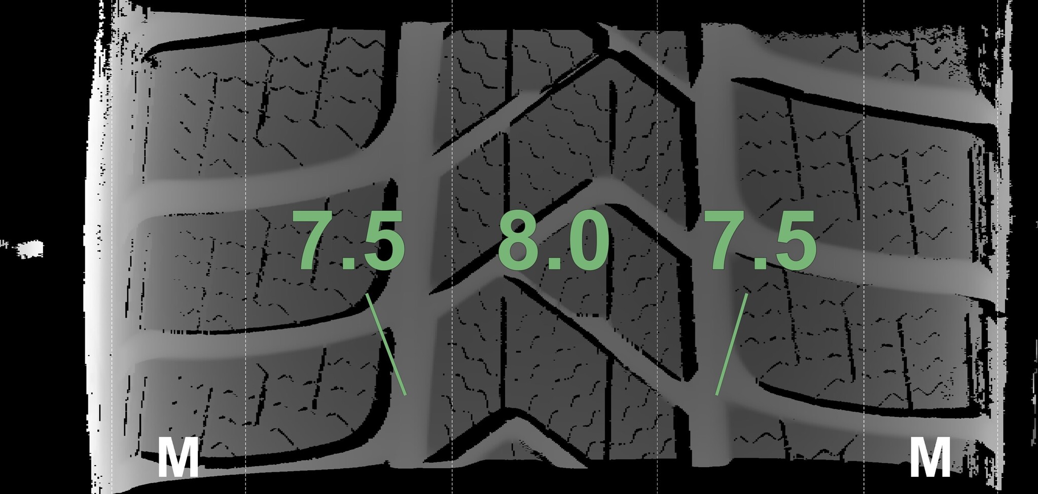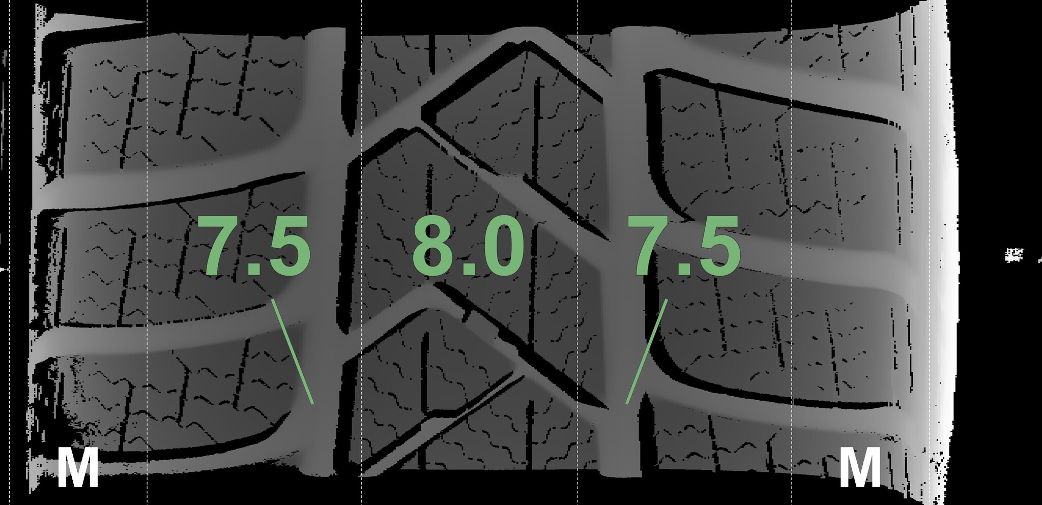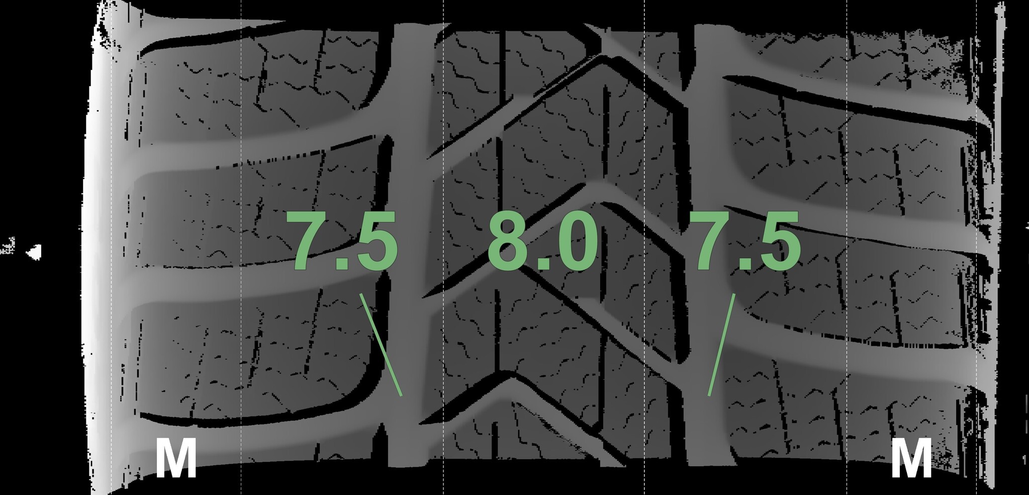 | Condition | Profile depth | DOT | Front Right | New | 7.5 mm | 2524 |