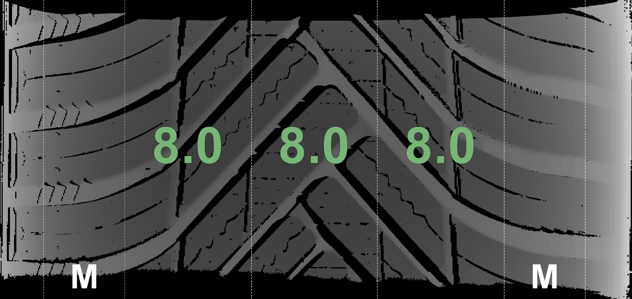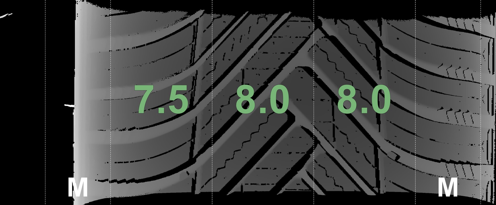 | Condition | Profile depth | DOT | Front Right | New | 7.8 mm | 3925 |