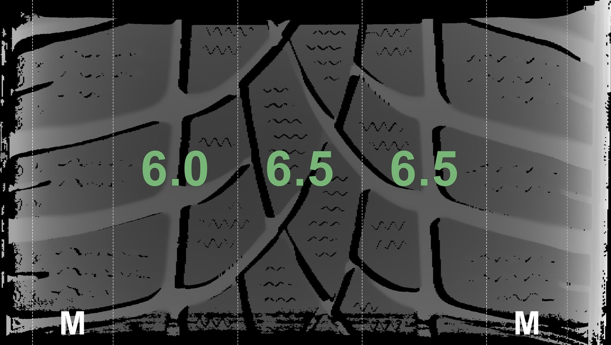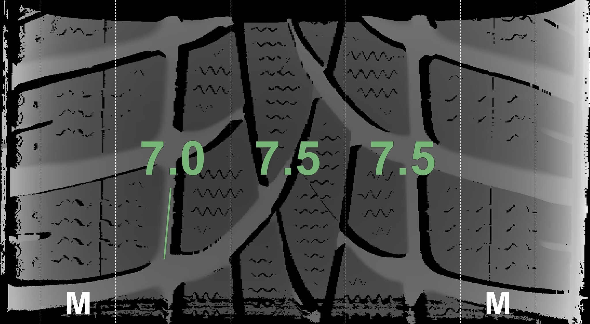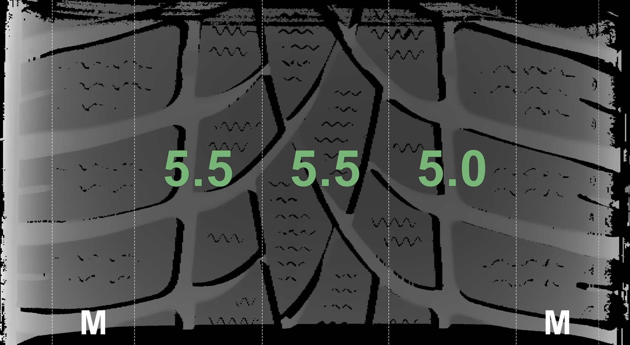 The measured tread depths and the details of the rims are shown above.