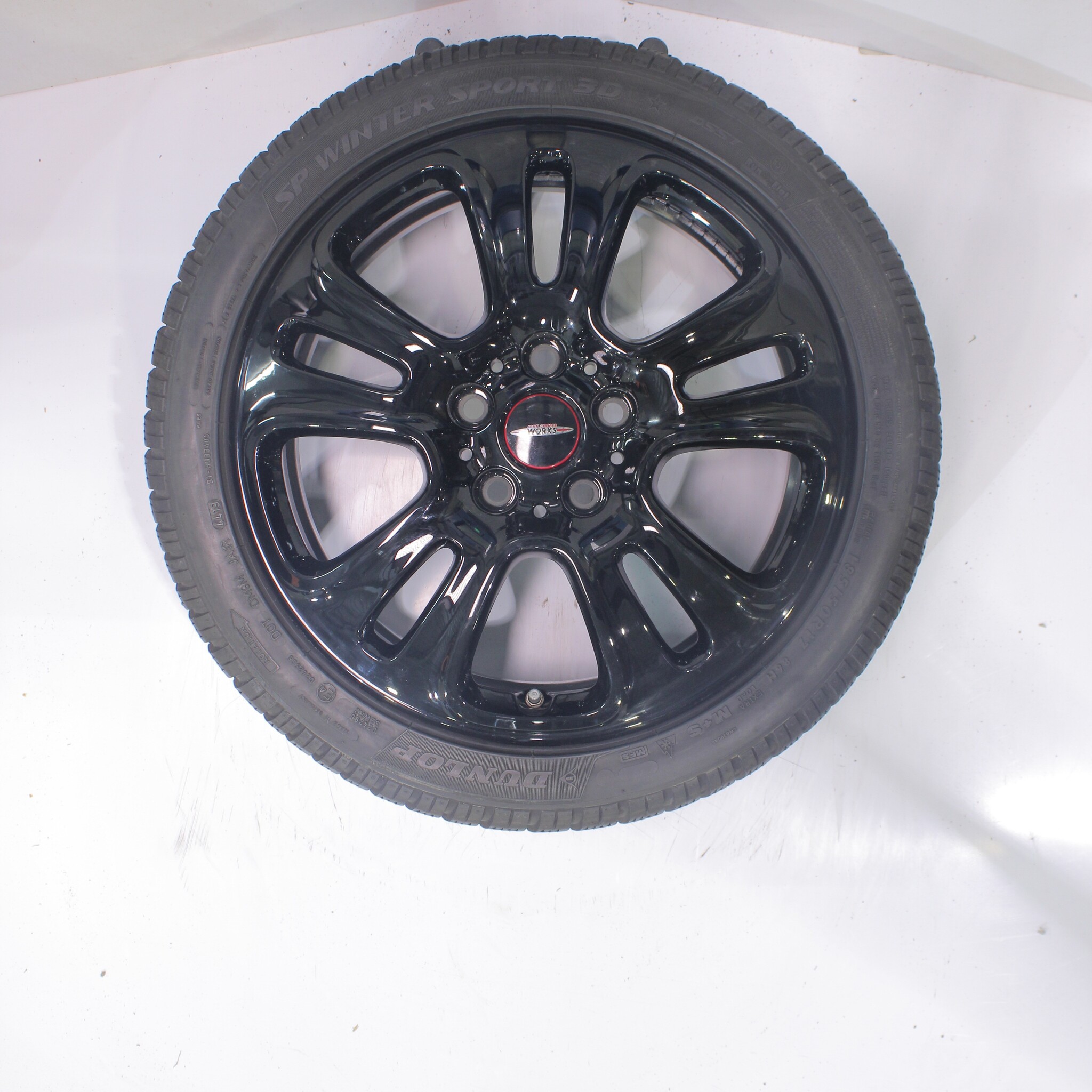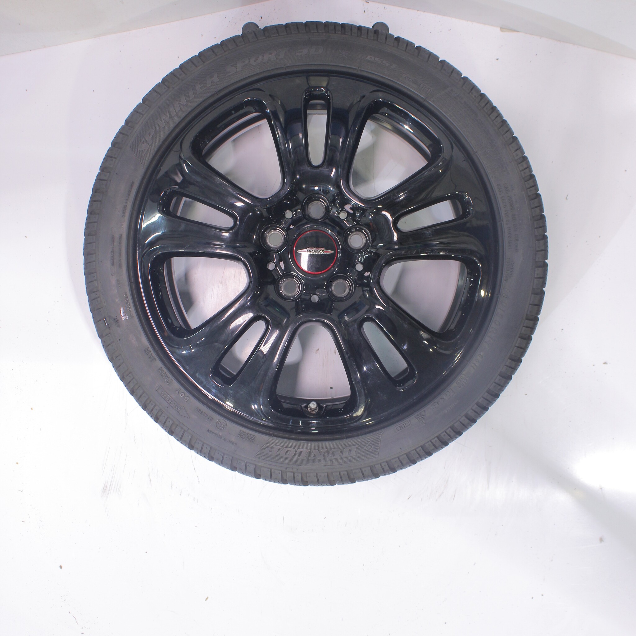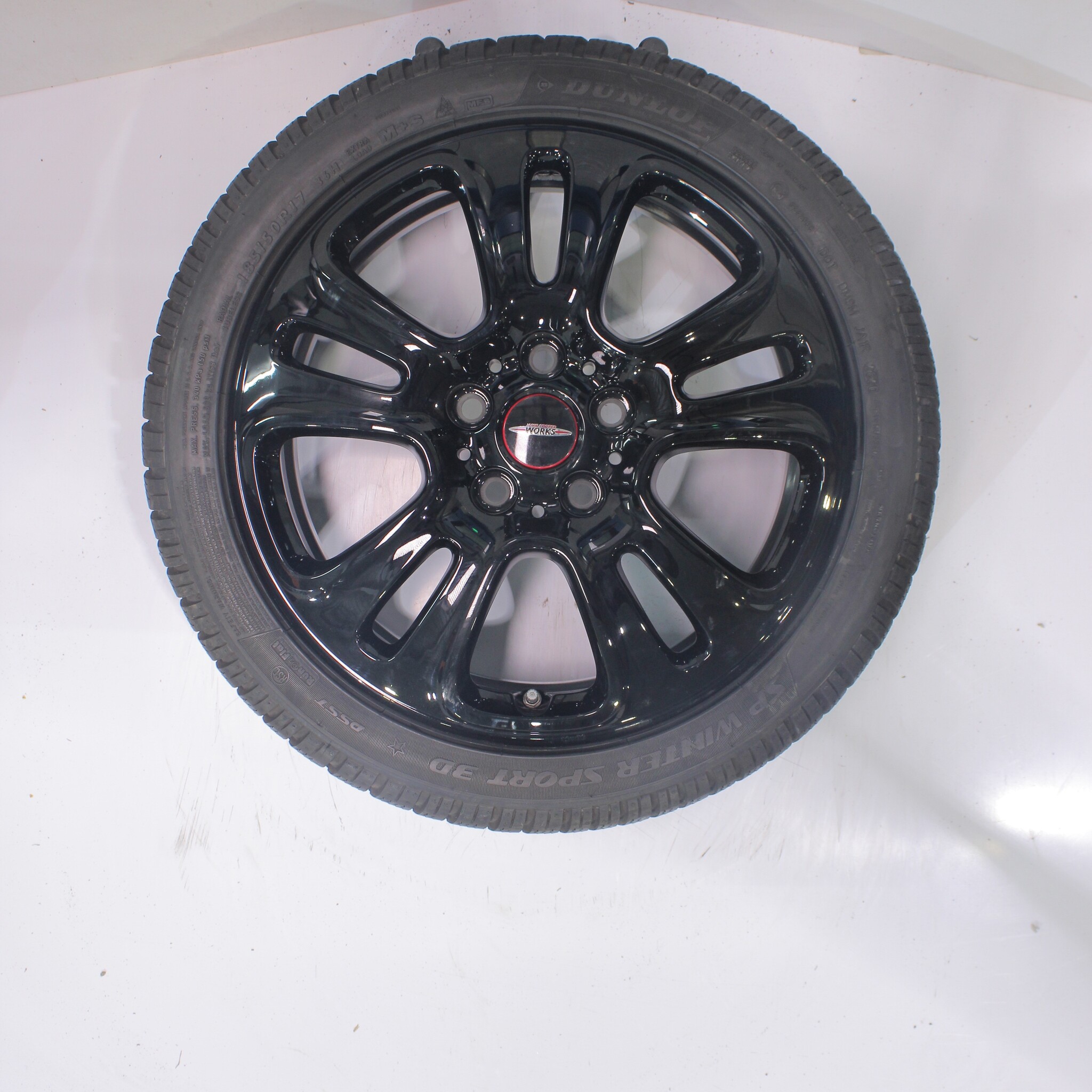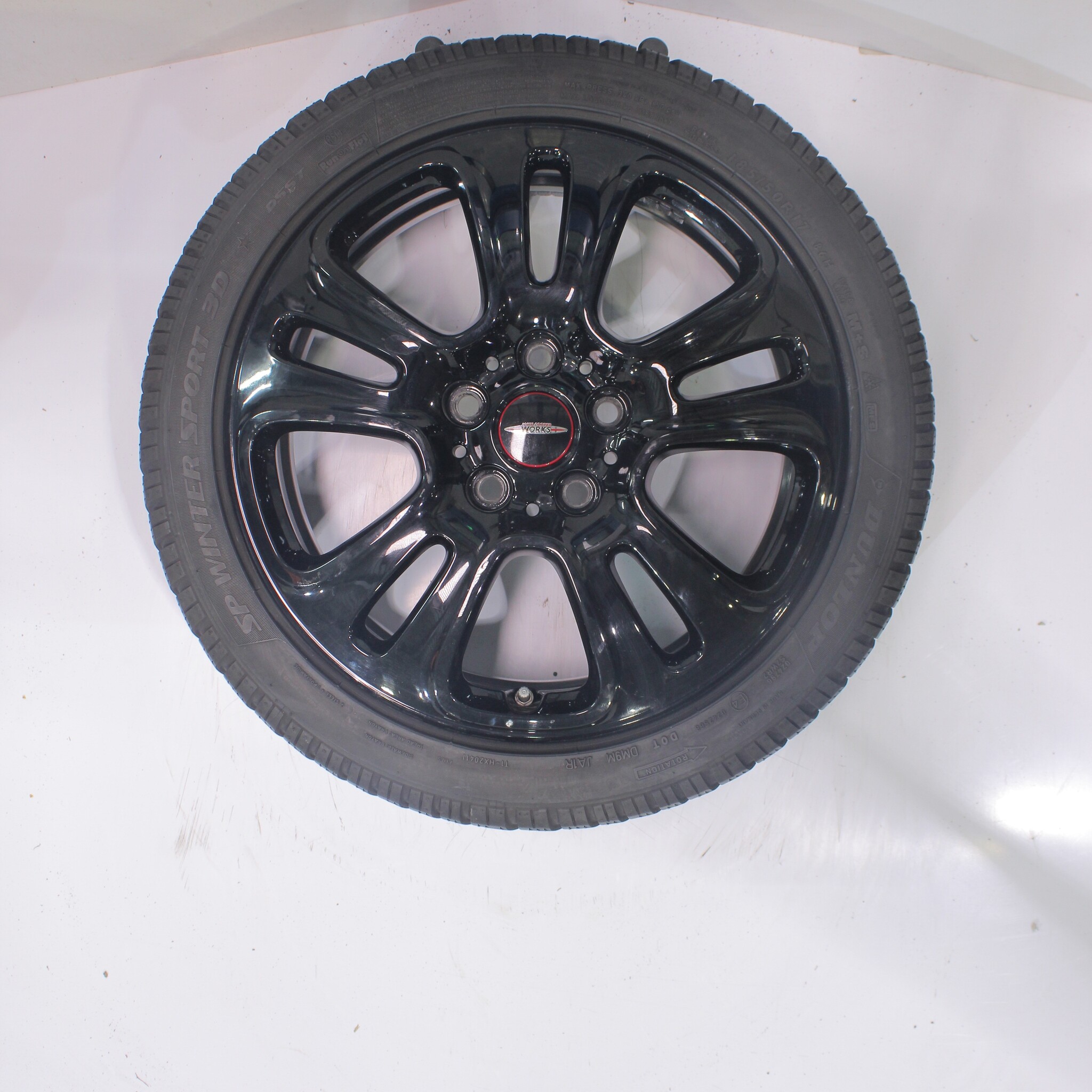 Original wheelset from Mini, styling JCW510, 17-inch rims with Dunlop SPWintersport 3D Runflat Winter Tires. These rims are original rims from the Mini brand and suitable for: Mini Cooper / S / One / Cabrio F55 F56 F57.