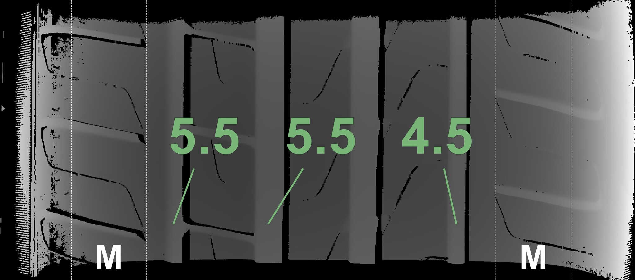 | Condition | Profile depth | DOT | Front Right | New | 6.5 mm | 0424 |
