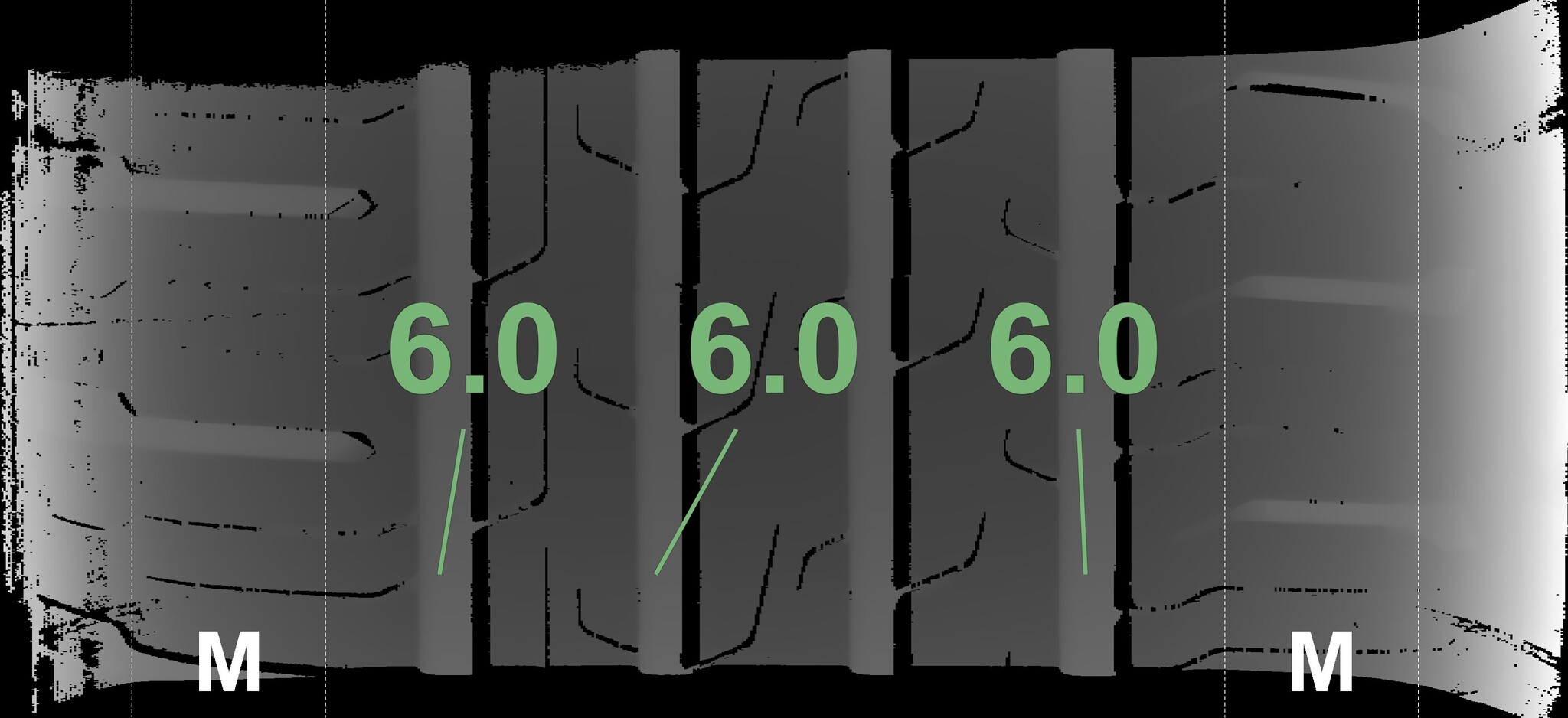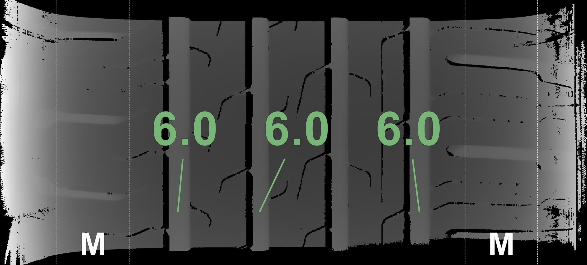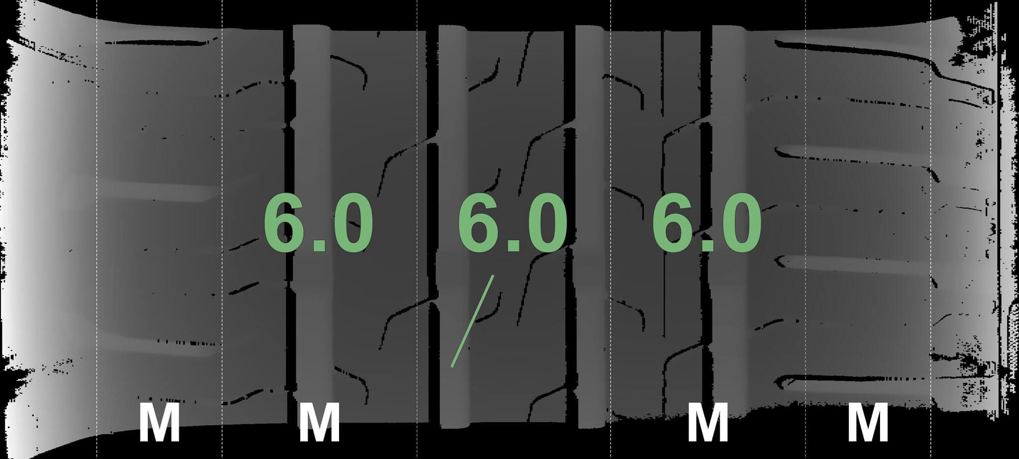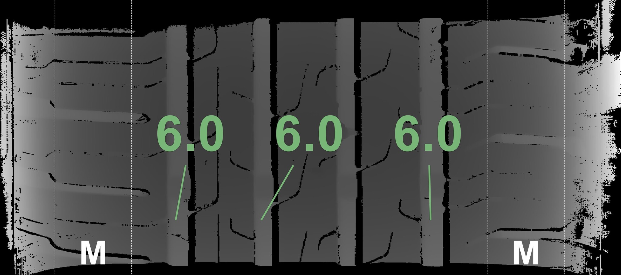 | Condition | Profile depth | DOT | Front Right | New | 6.0 mm | 3121 |