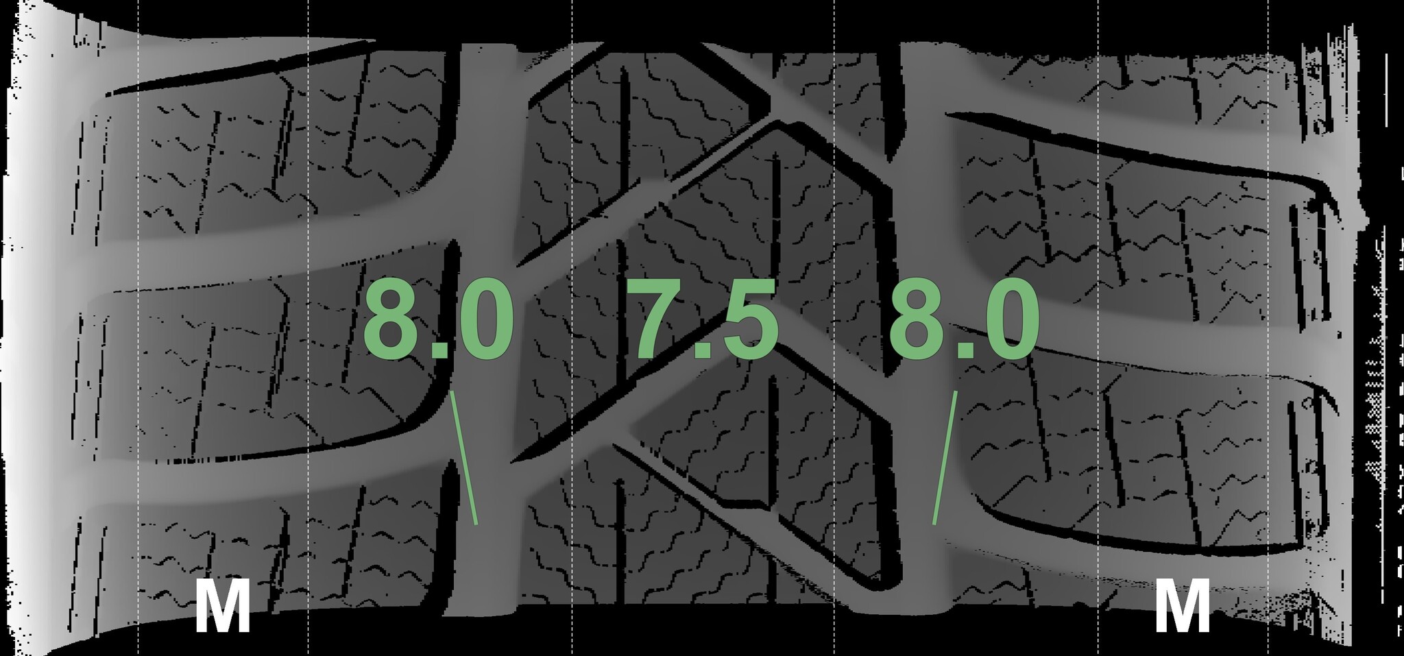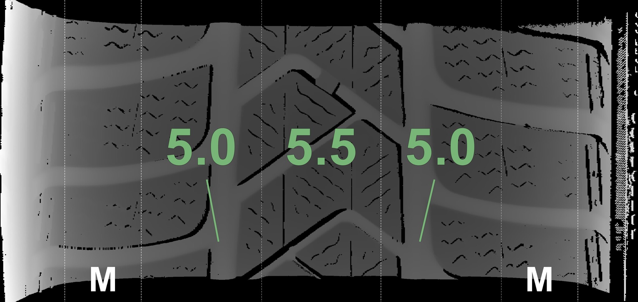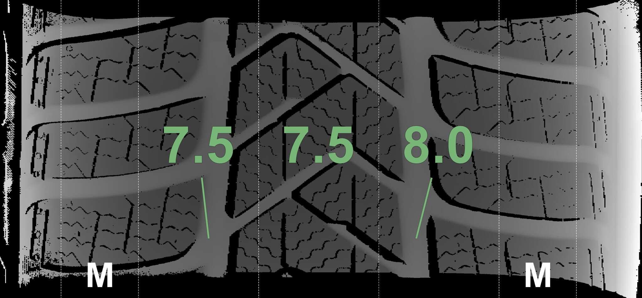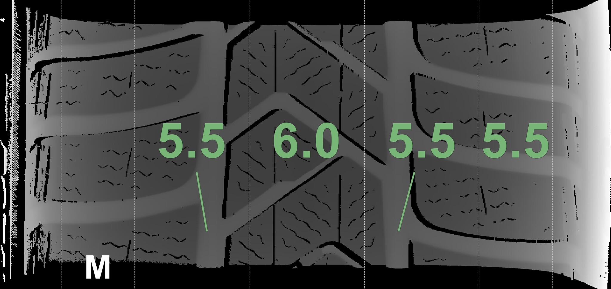 The measured tread depths and details of the rims are shown above.