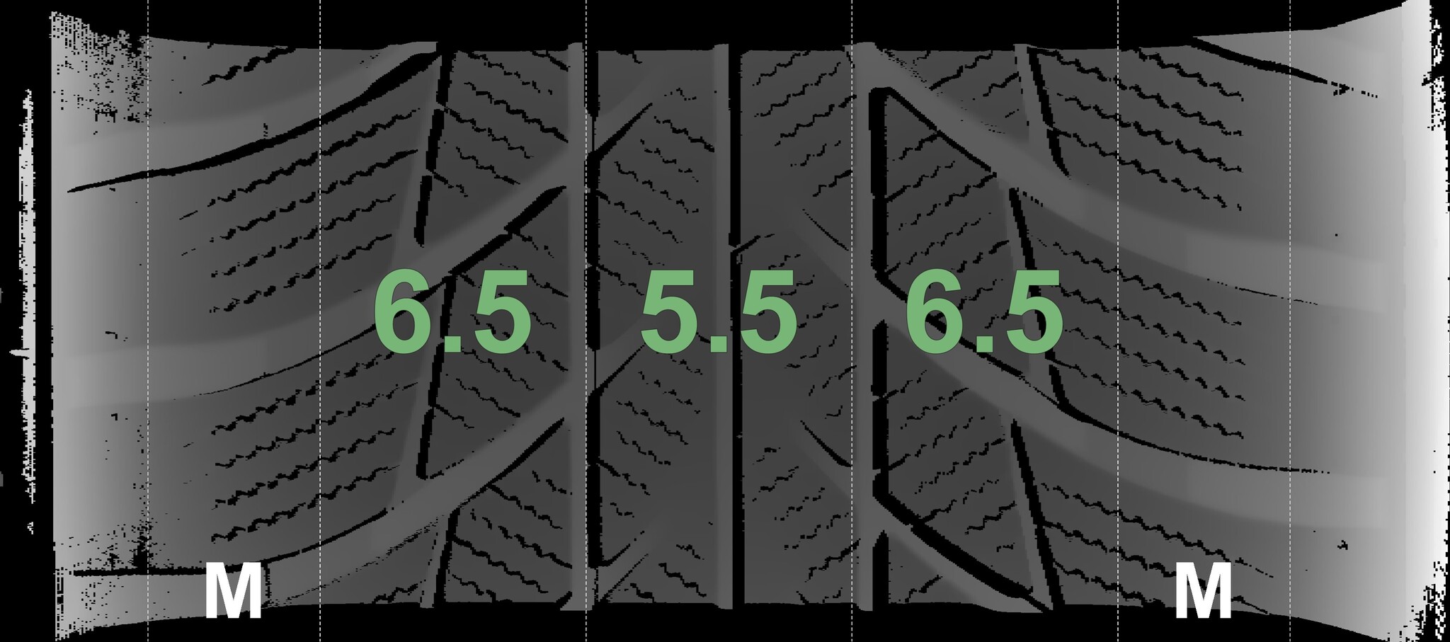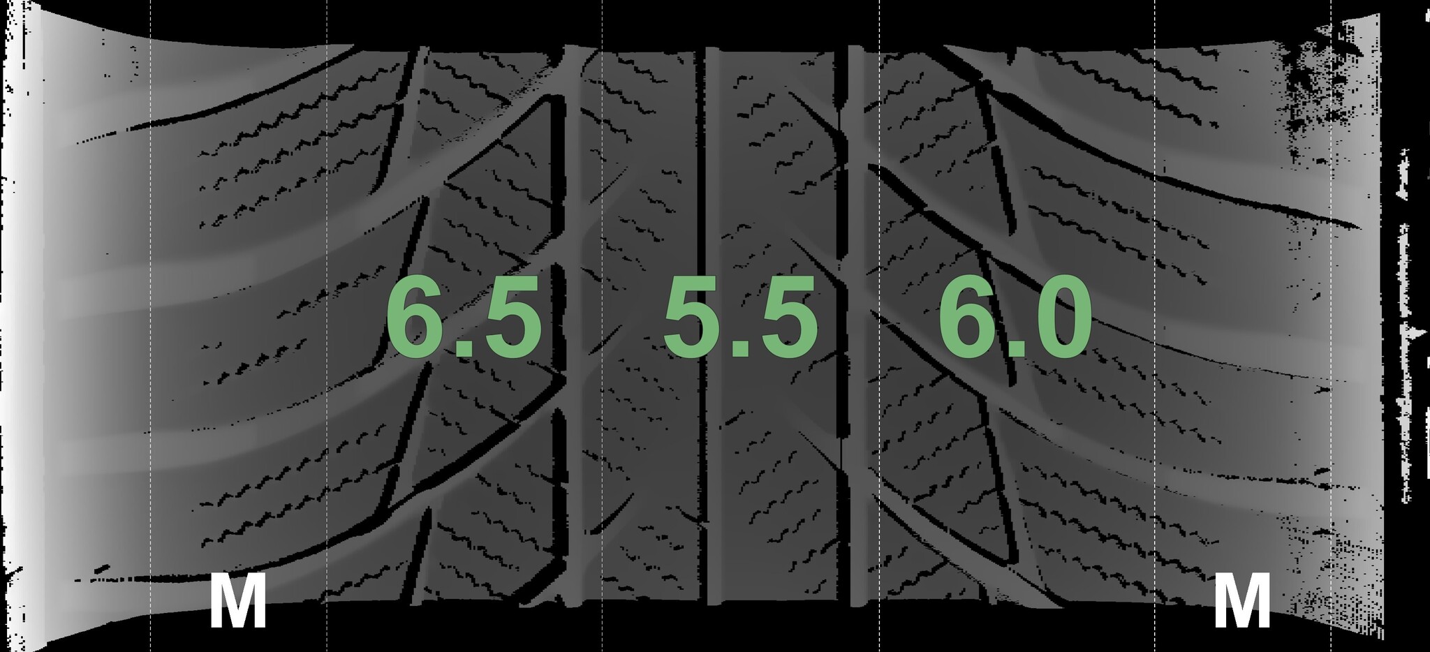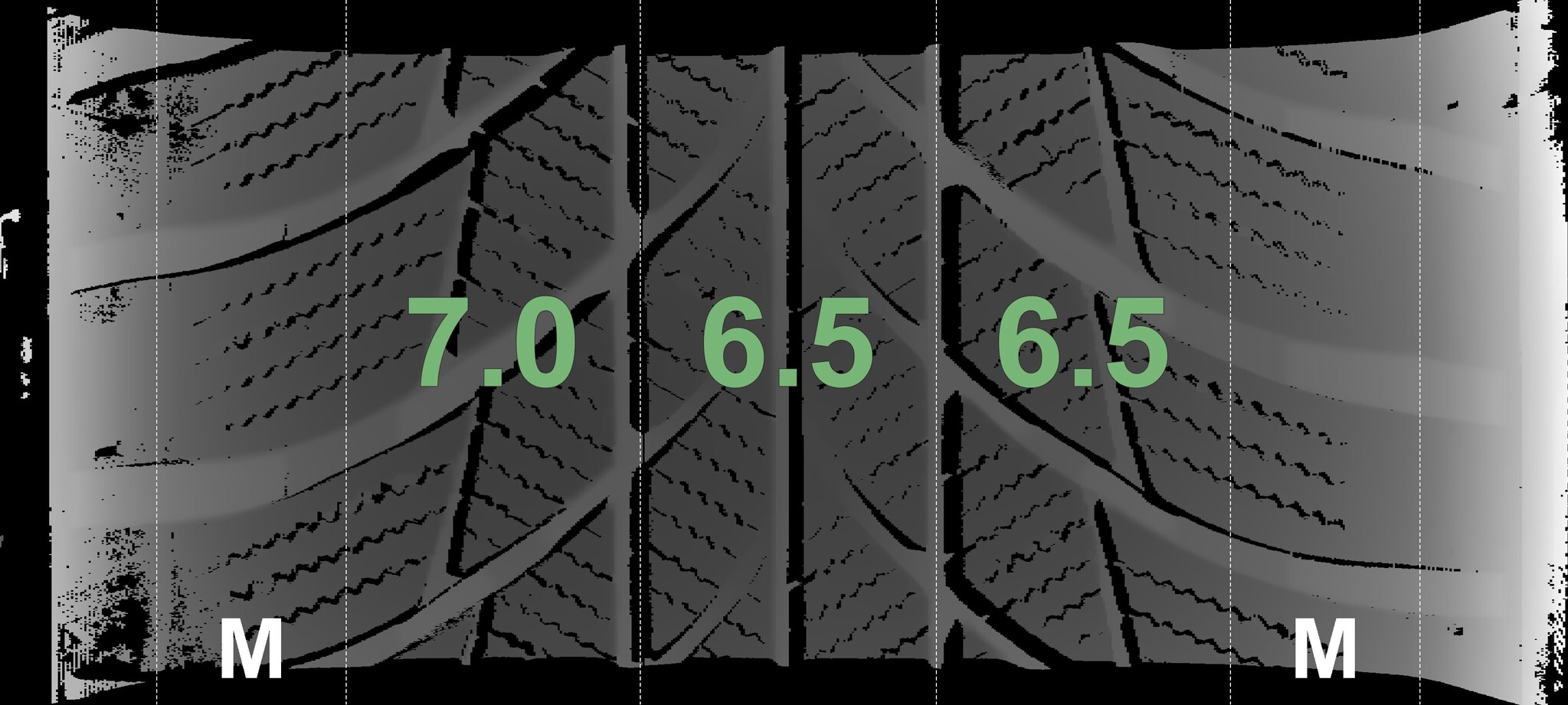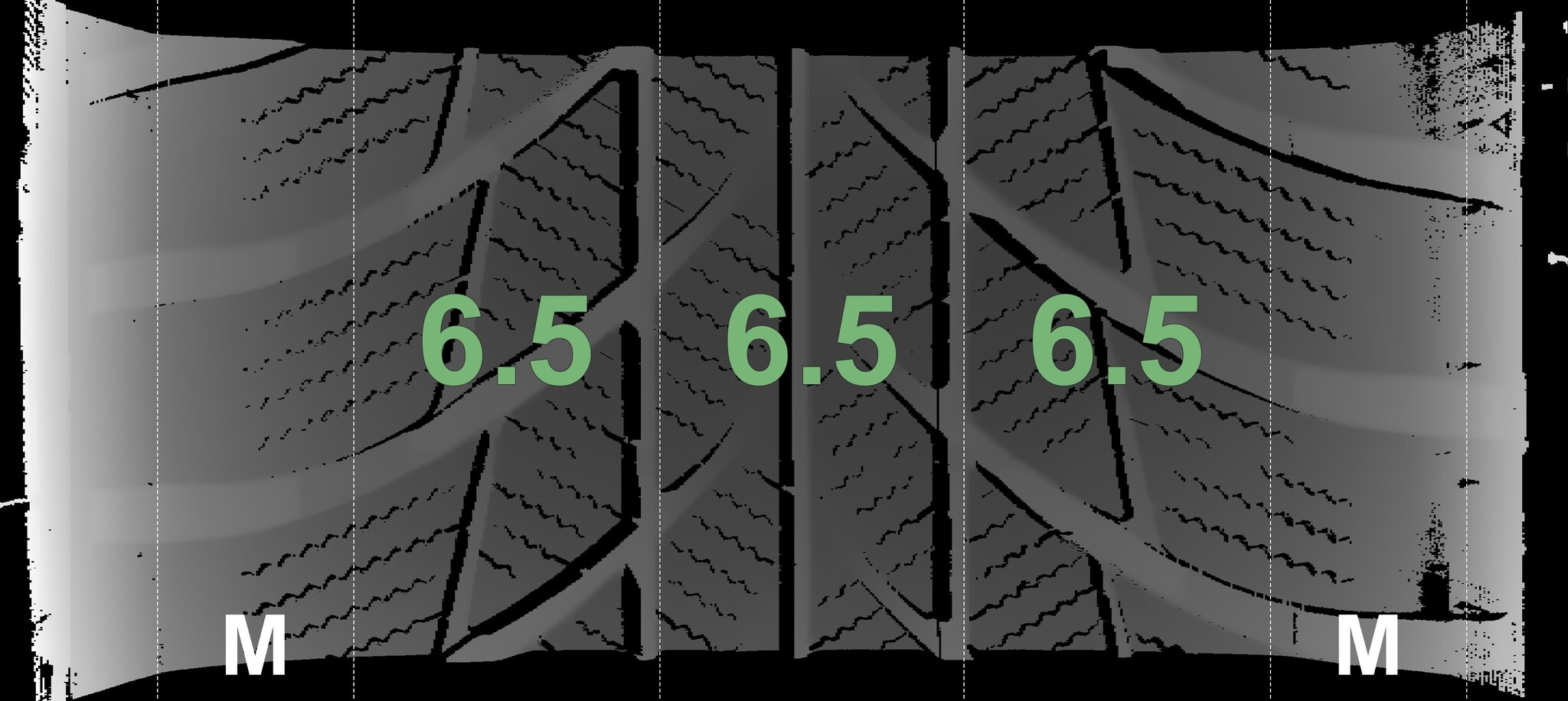 | Condition | Profile depth | DOT | Front Left | Used | 6.5 mm | 1719 |