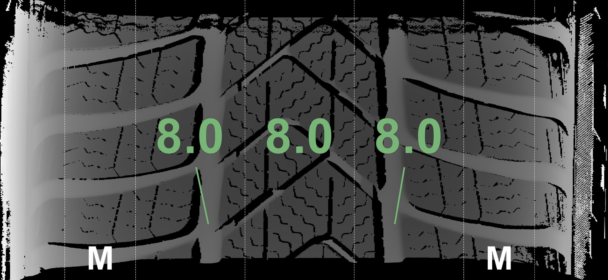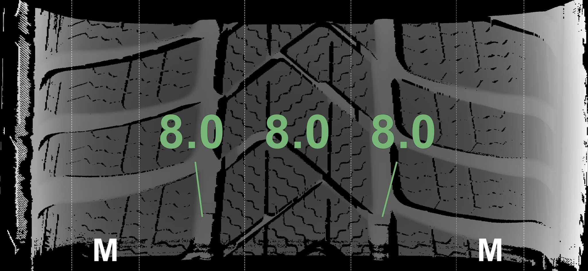 | Condition | Profile depth | DOT | Front Right | New | 8.0 mm | 3721 |