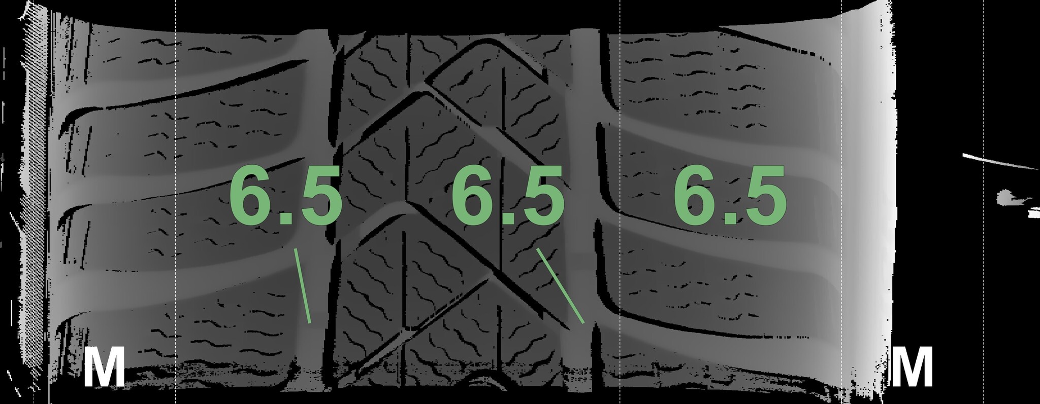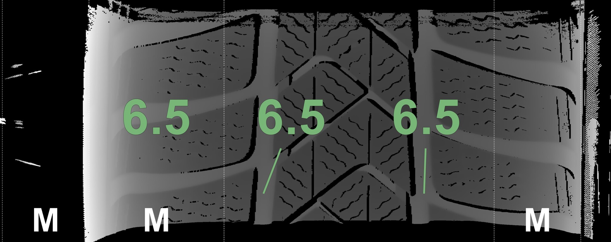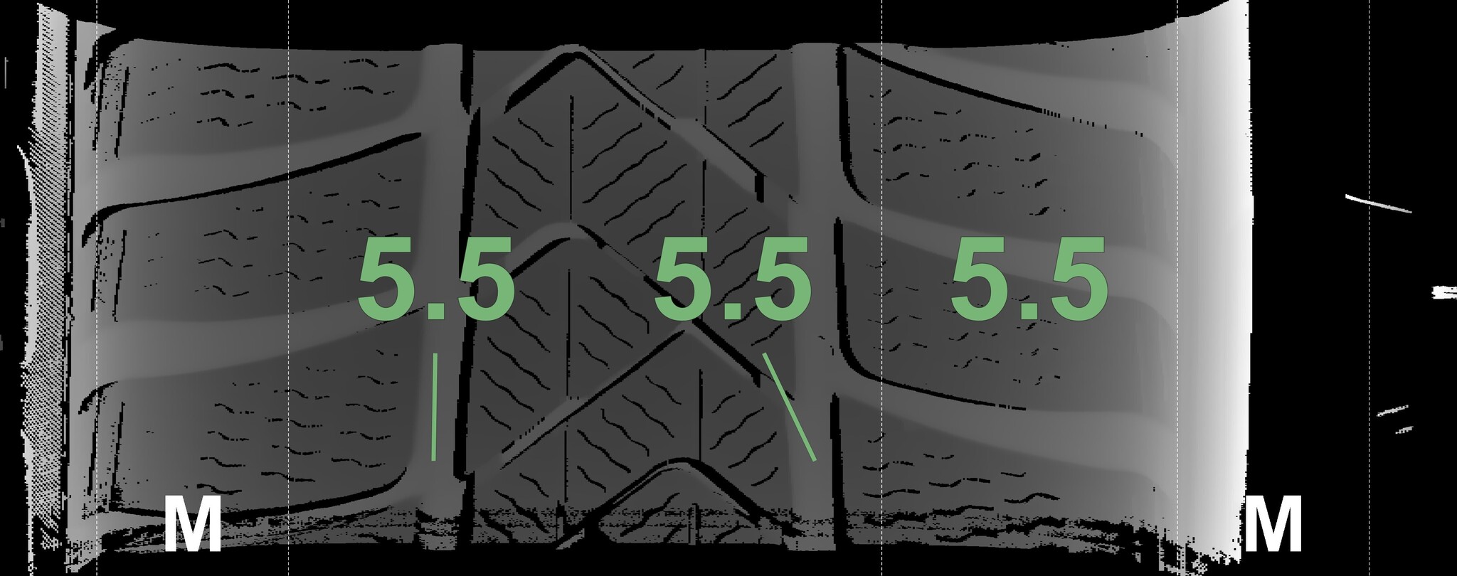 The measured tread depths and the details of the rims are shown above.