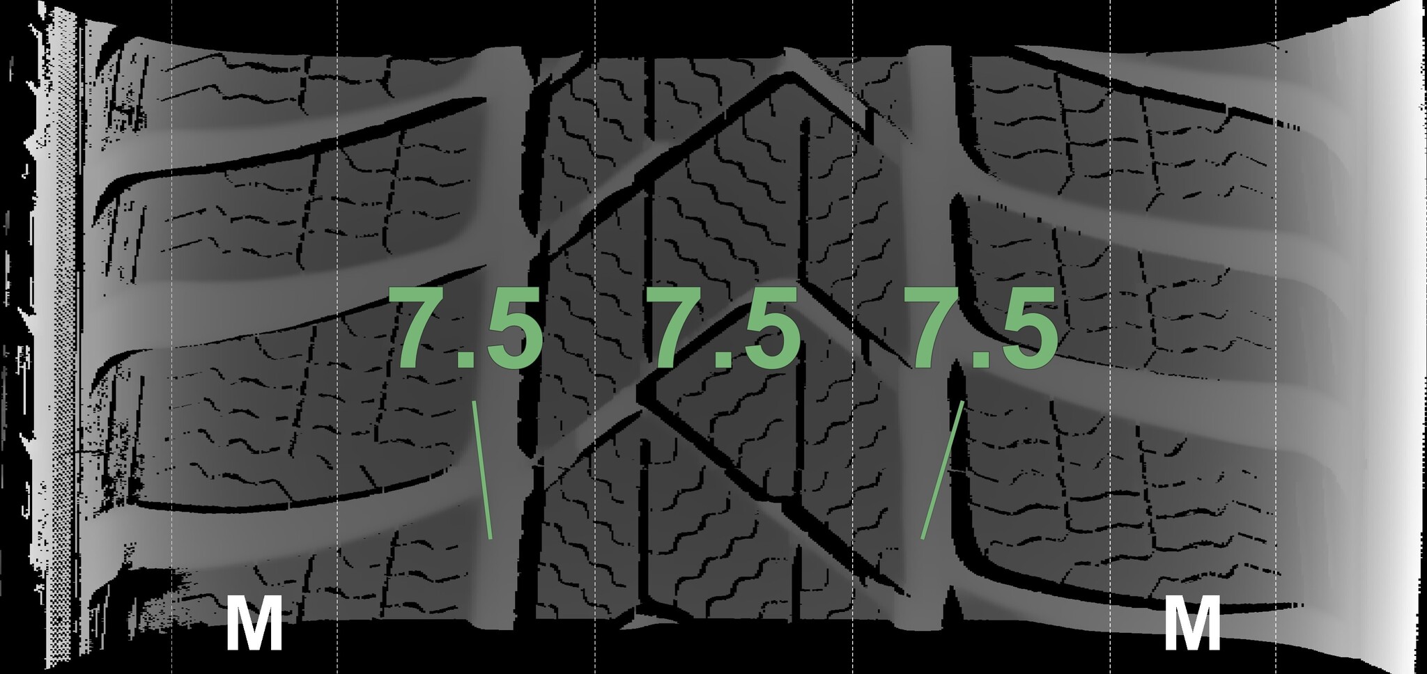 Condition | Profile depth | DOT | Front Right | Demo studs still visible | 7.5 mm | 3622 |