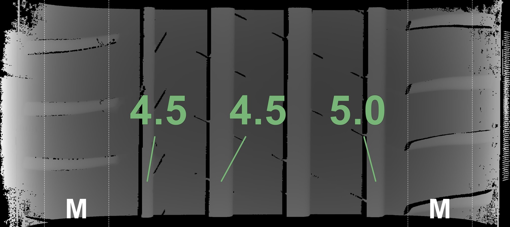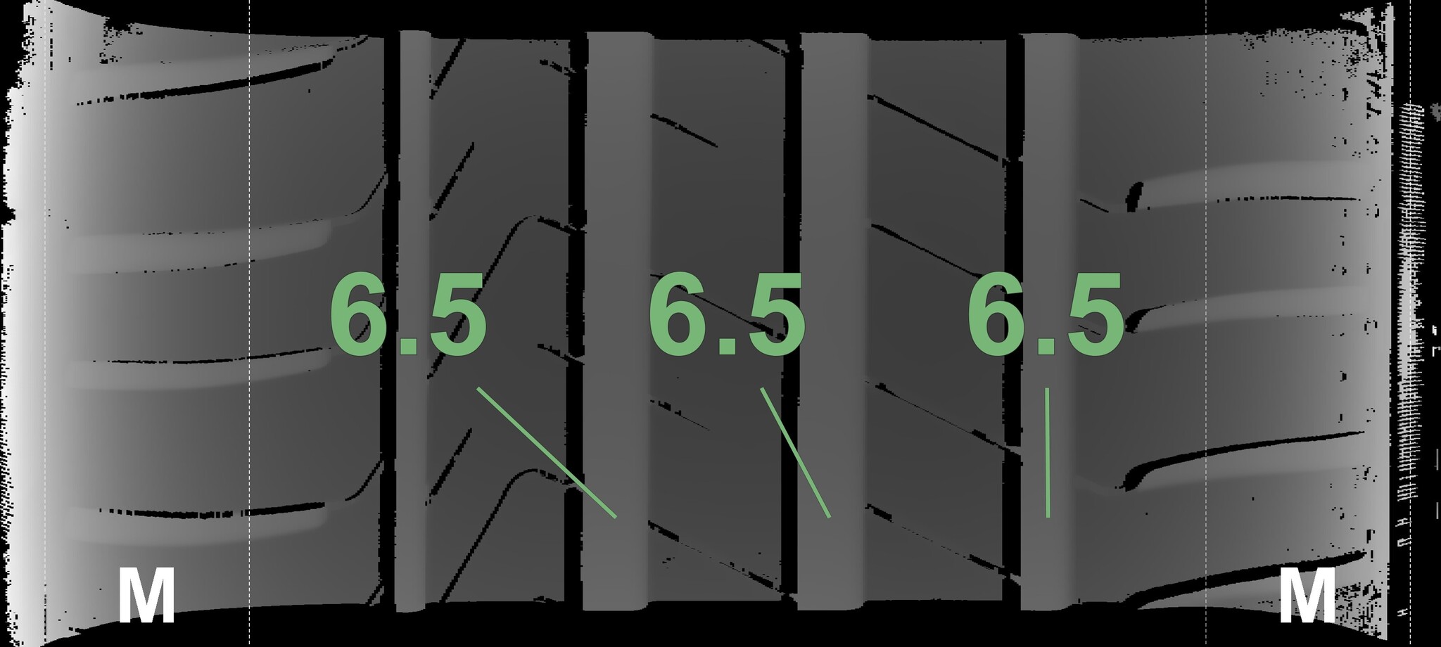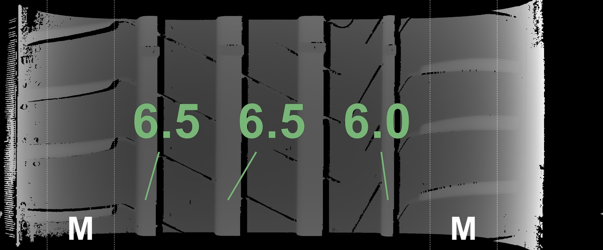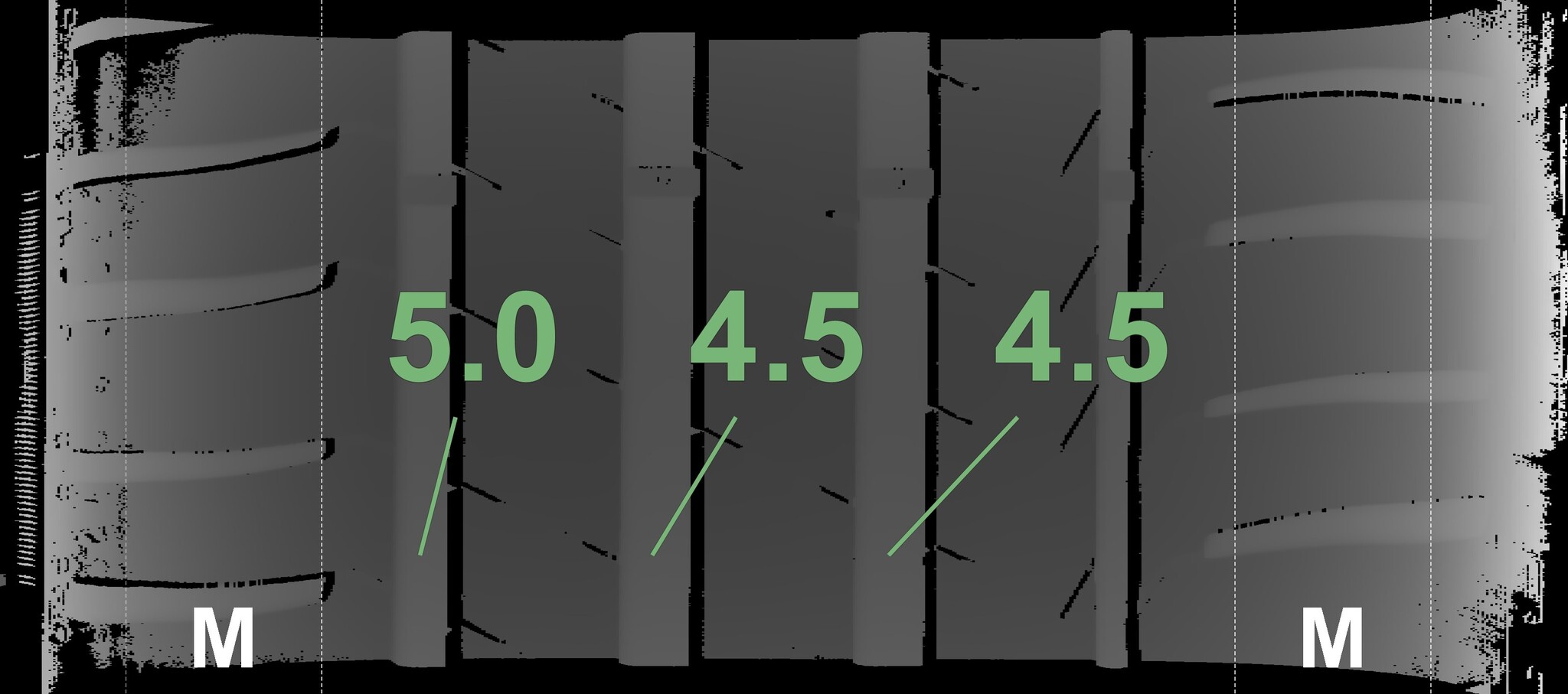 The measured tread depths and details of the rims are shown above.