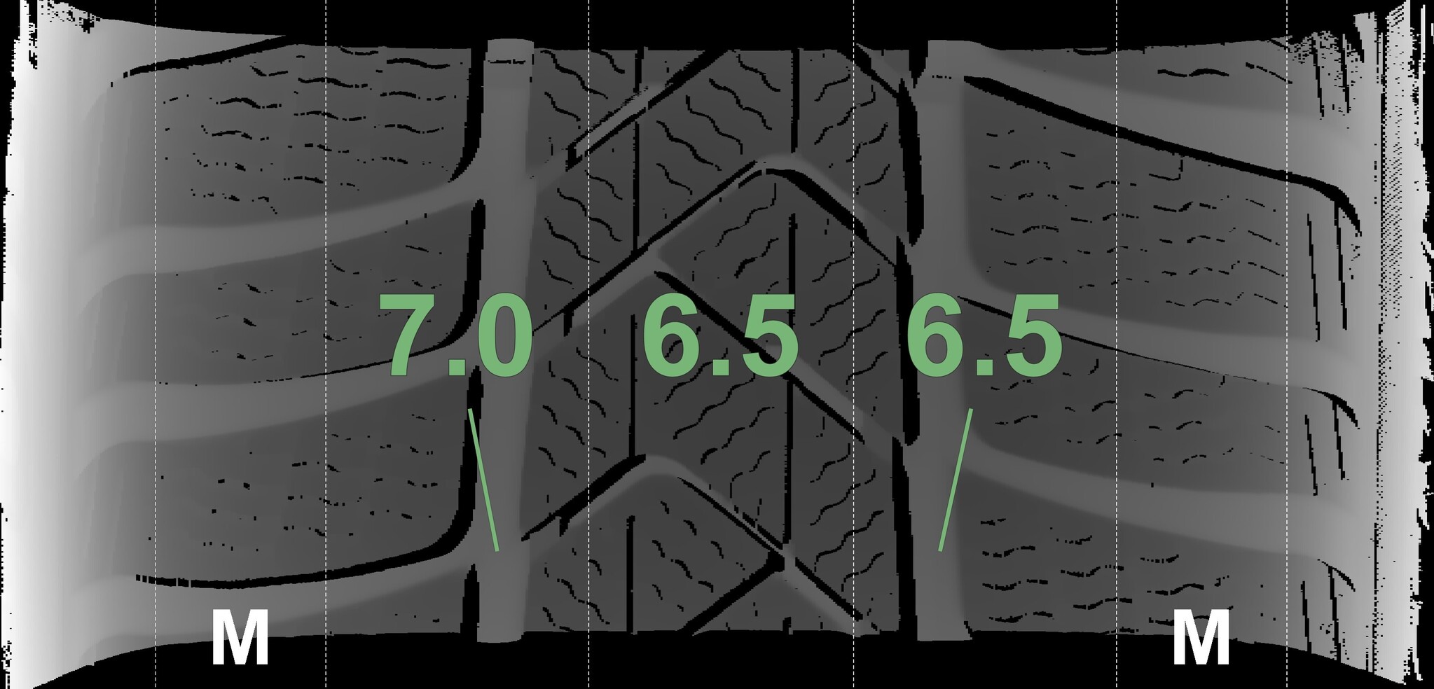 | Condition | Profile depth | DOT | Front Right | Used | 6.5 mm | 2420 |