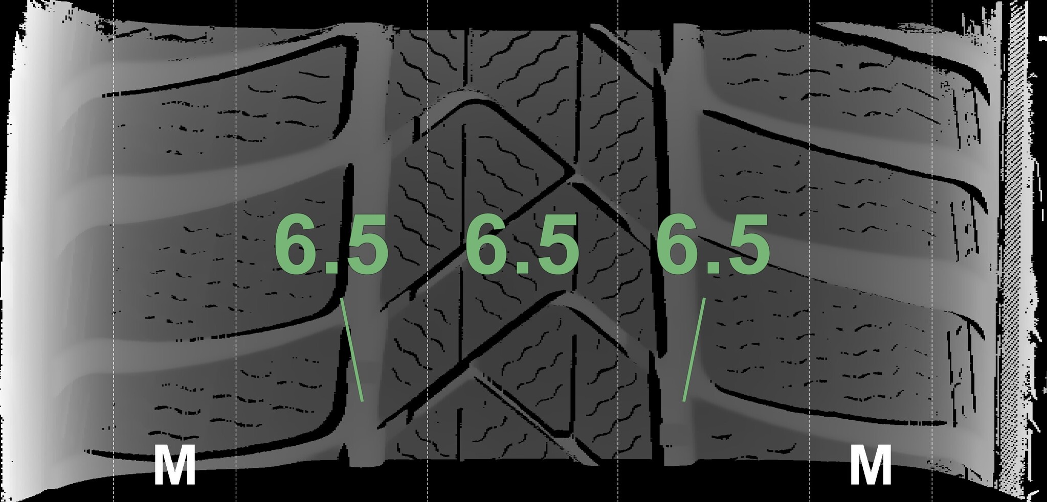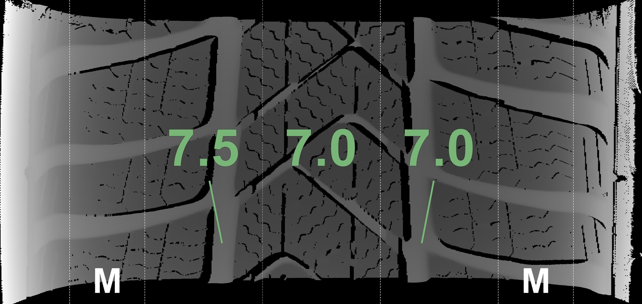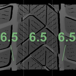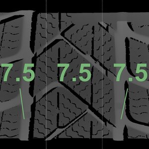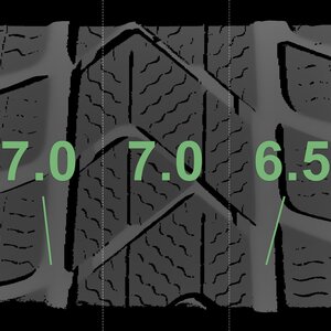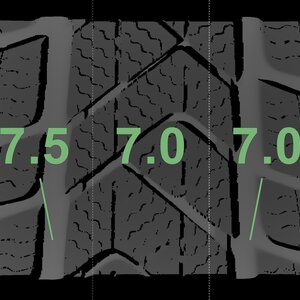 The measured tread depths and the details of the rims are shown above.