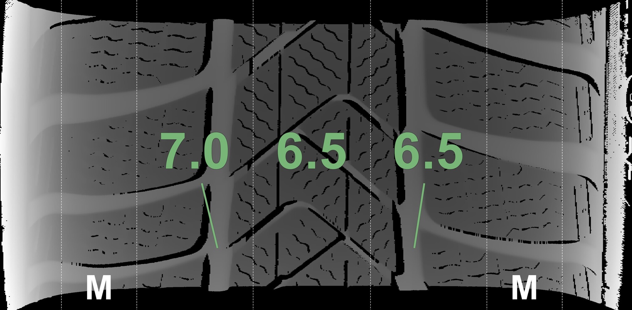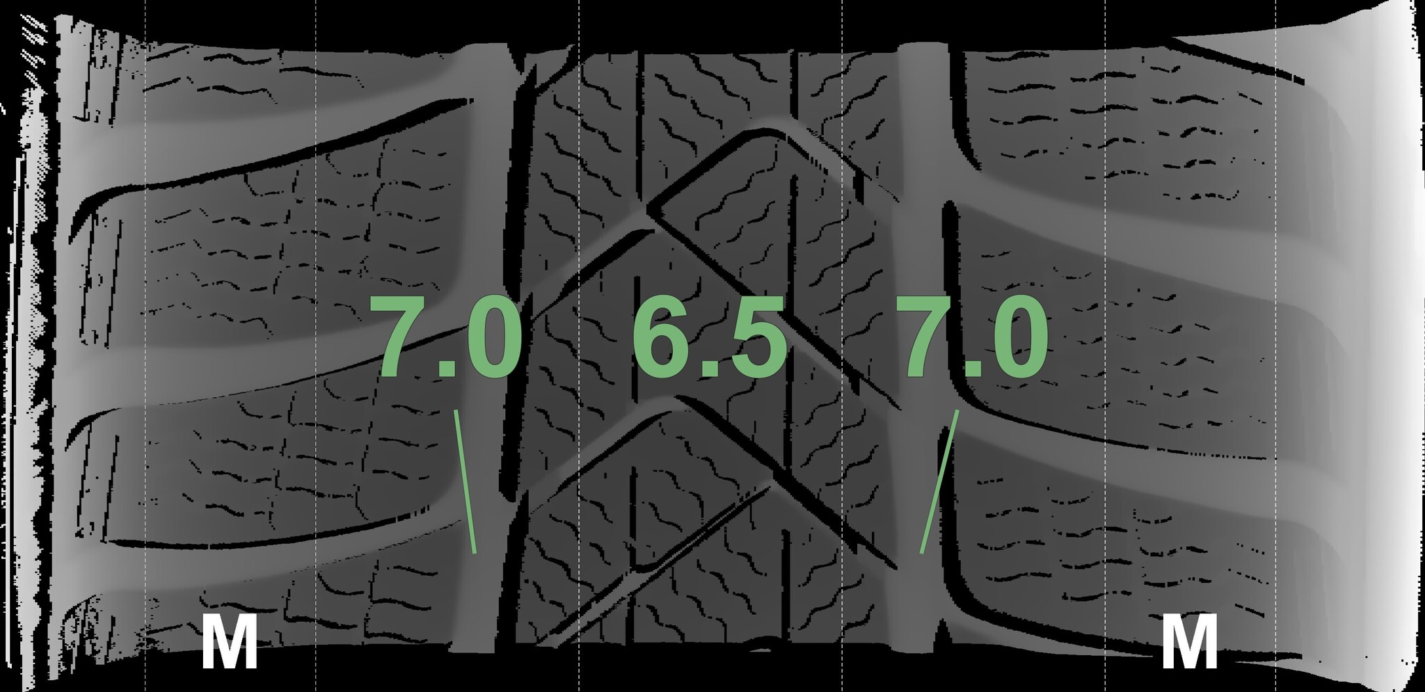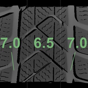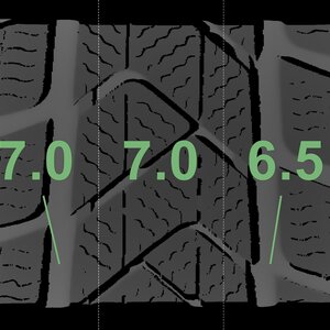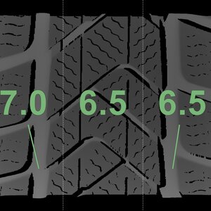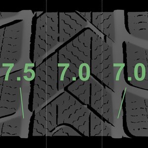The measured tread depths and the details of the rims are shown above.