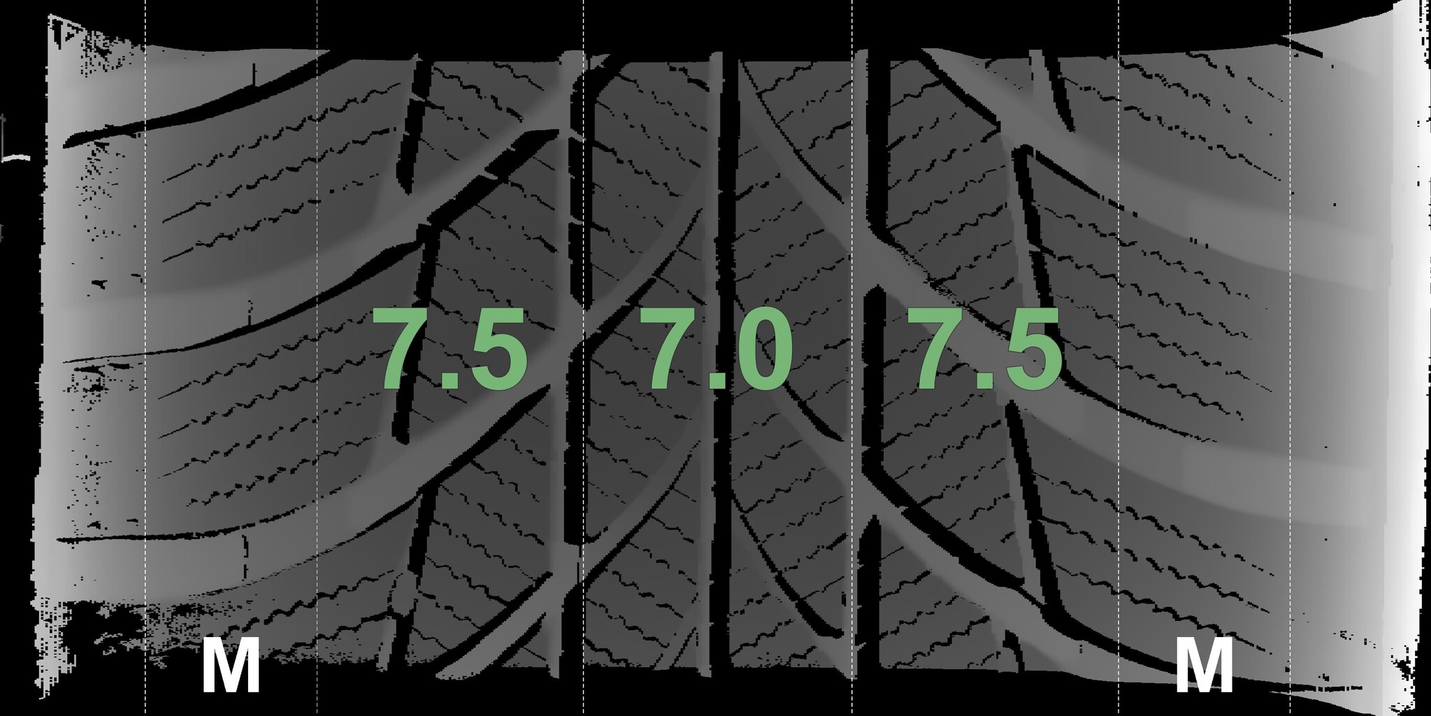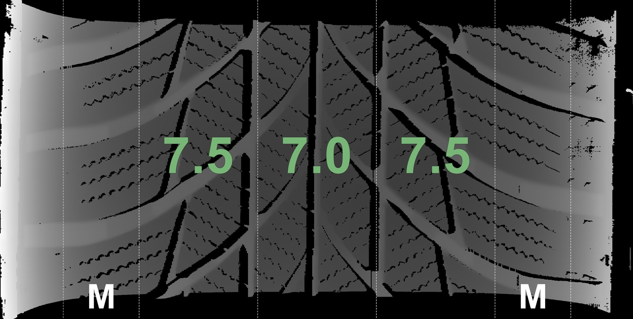 | Condition | Profile depth | DOT | Front Left | Used | 7.5 mm | 1822 |
