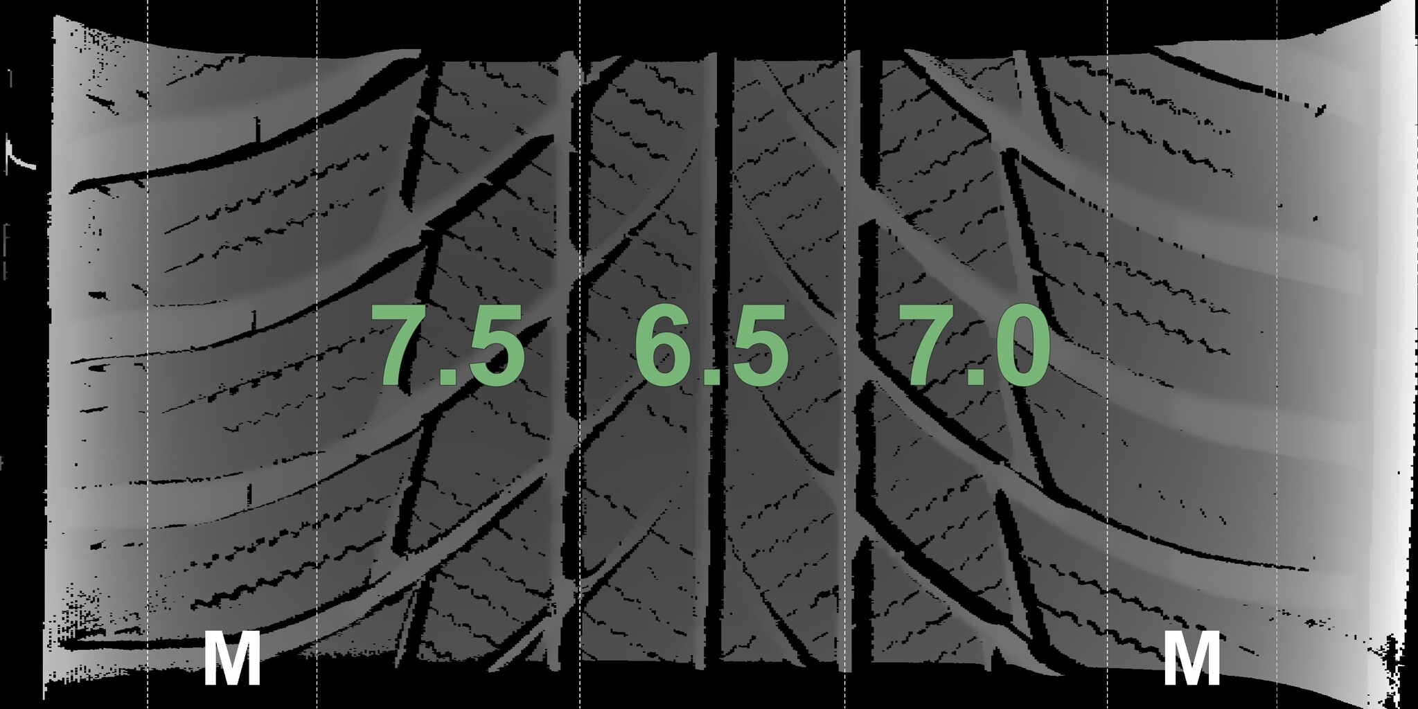 | Condition | Profile depth | DOT | Front Right | Used | 6.5 mm | 1822 |