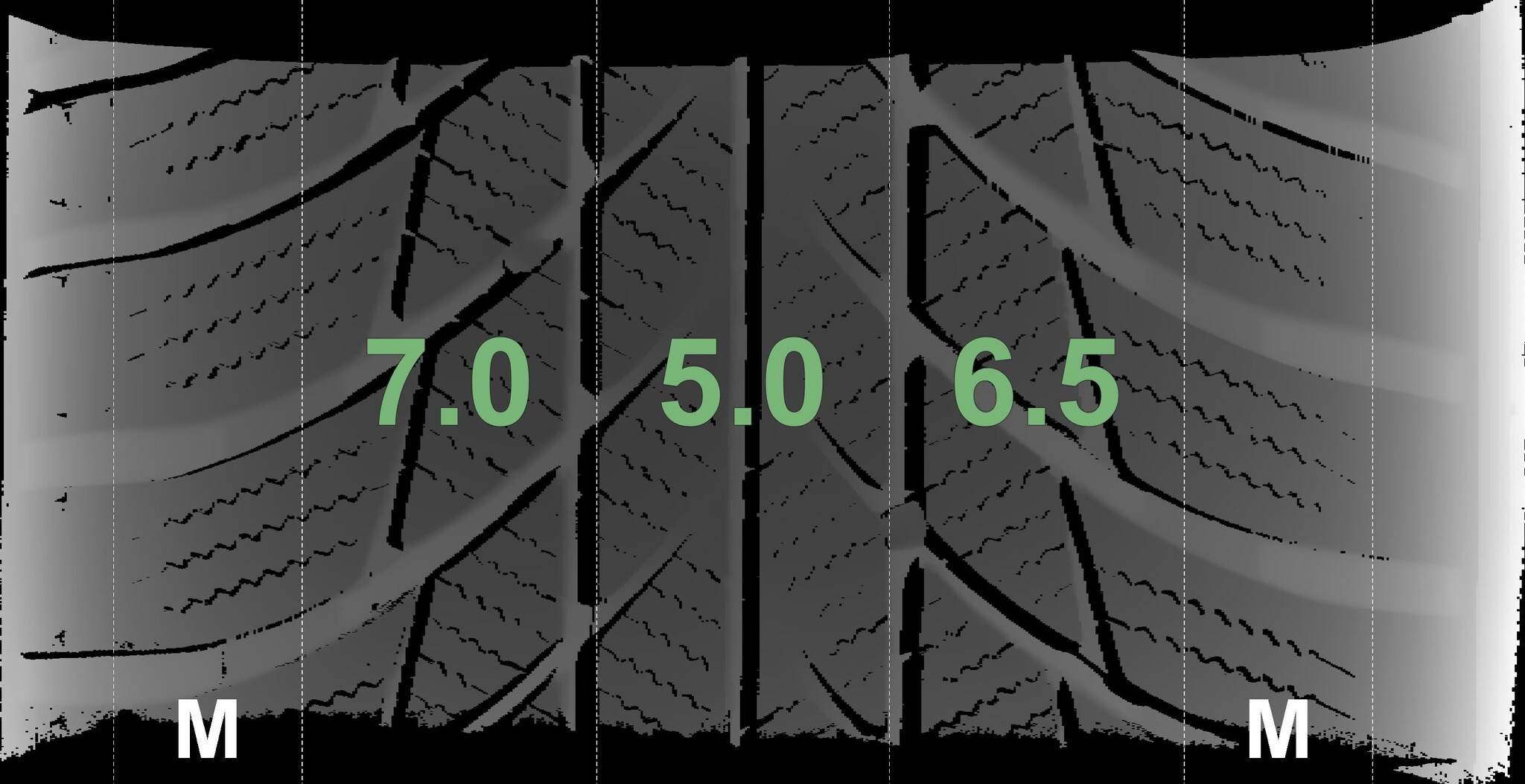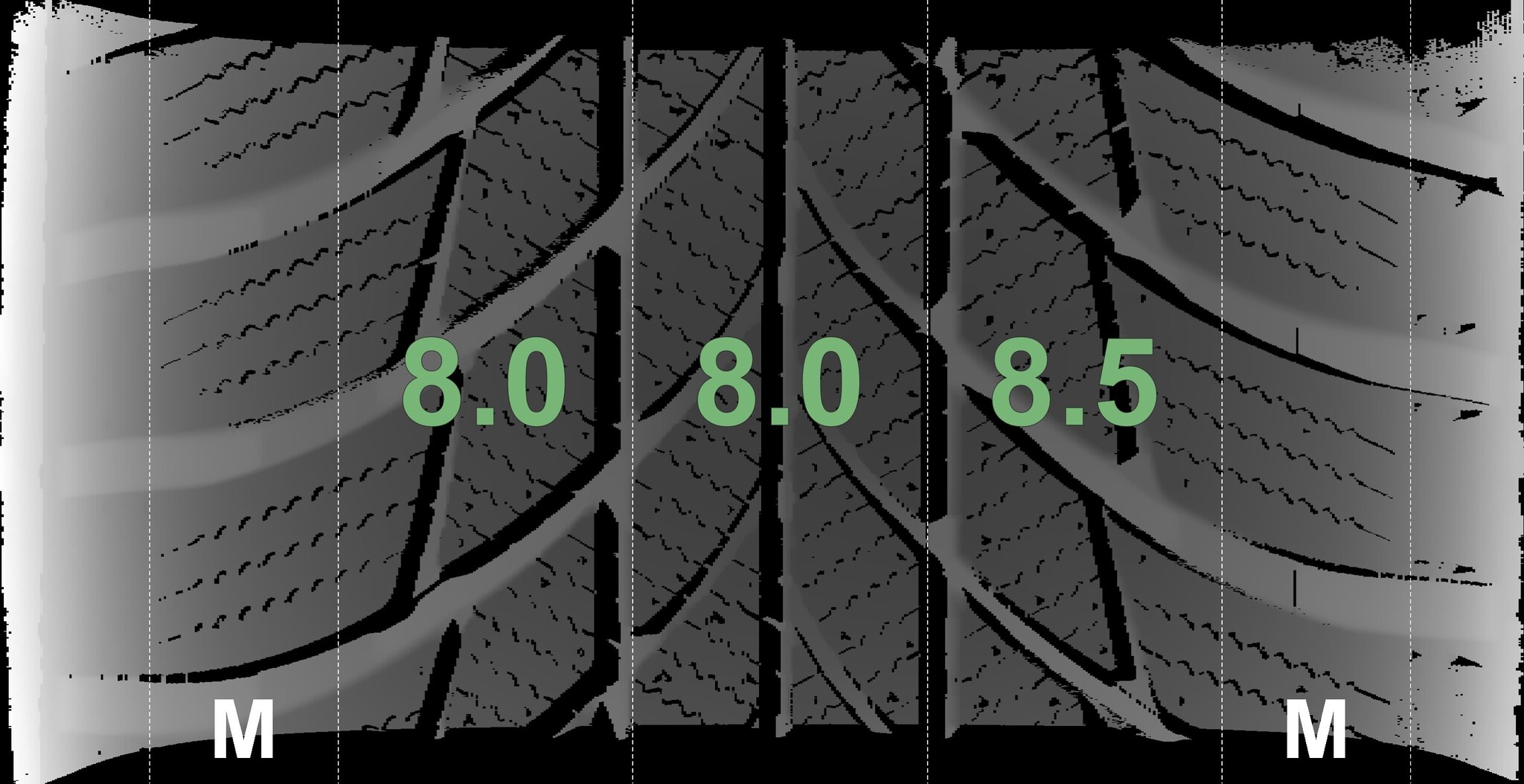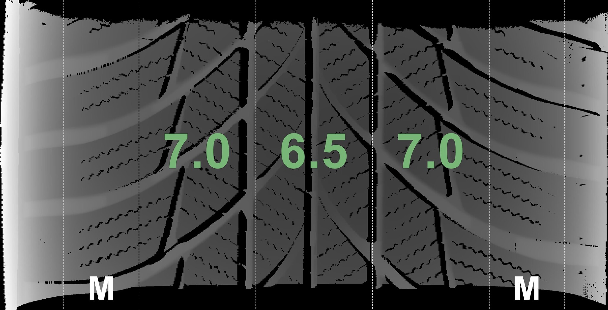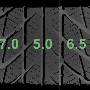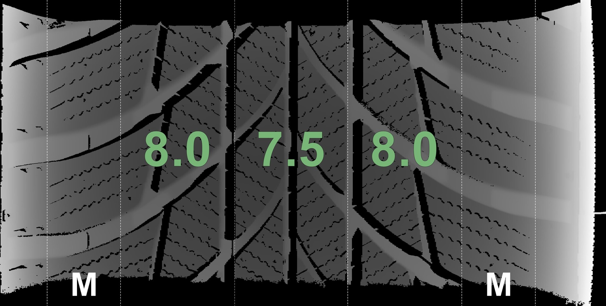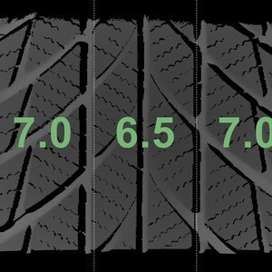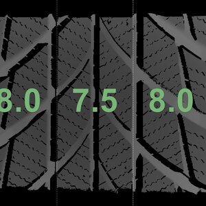 The measured tread depths and the details of the rims are shown above.