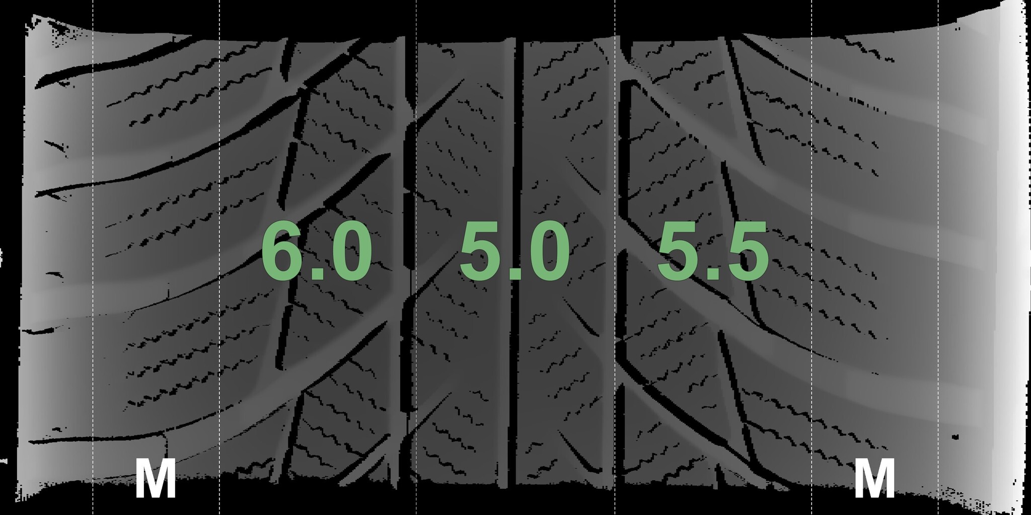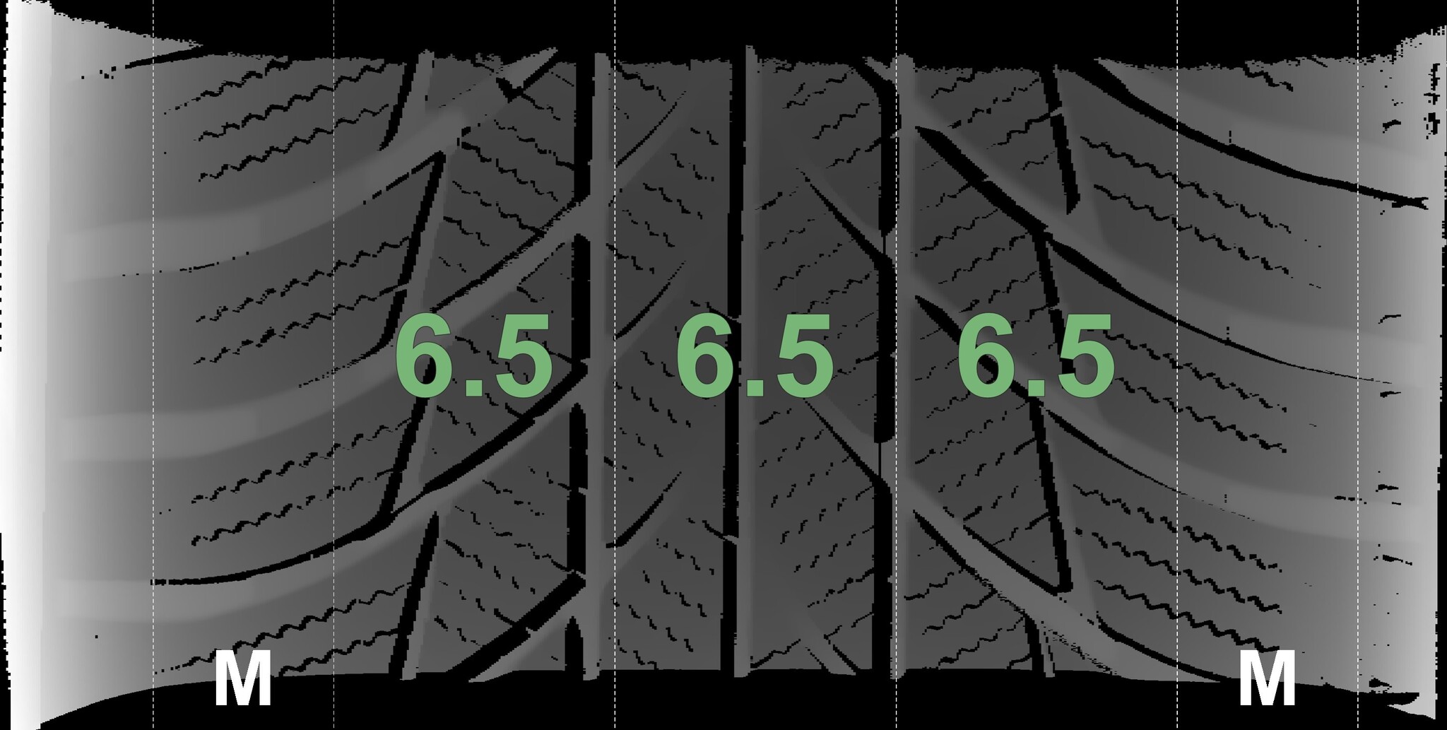 | Condition | Profile depth | DOT | Front Left | Used | 6.5 mm | 1119 |