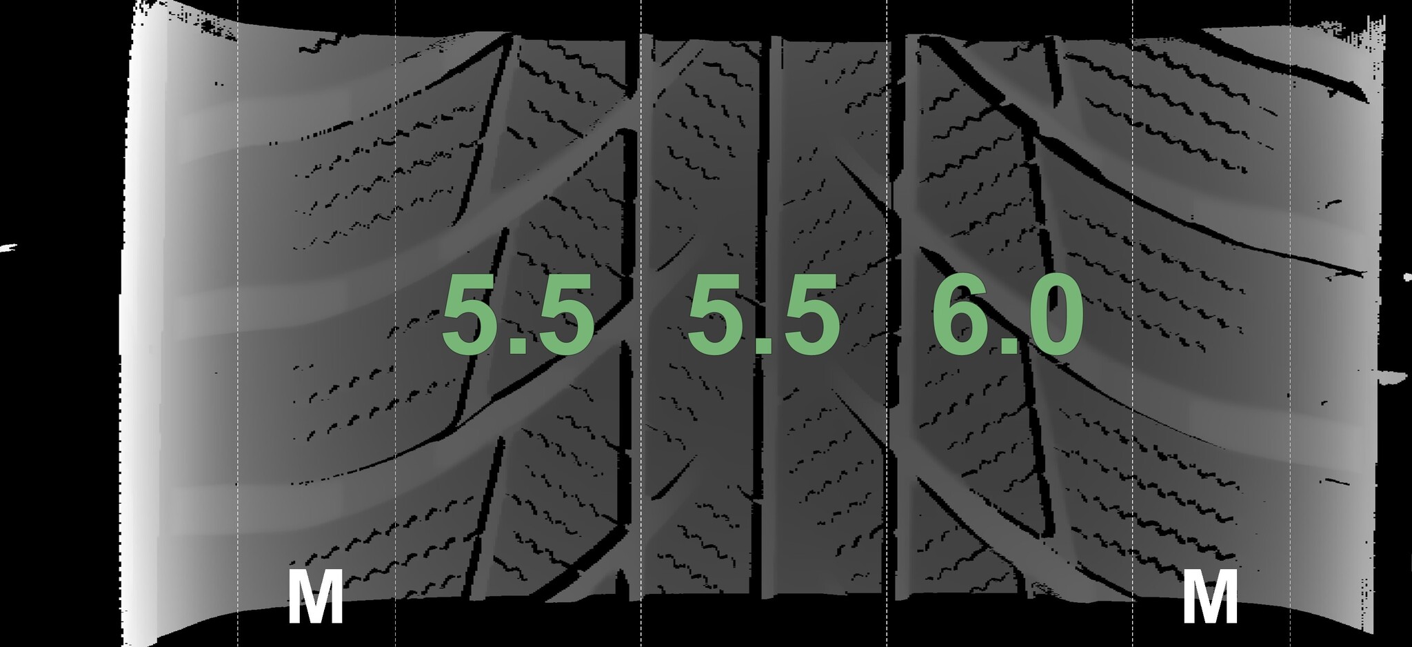 | Condition | Profile depth | DOT | Rear Left | Used | 5.7 mm | 1119 |