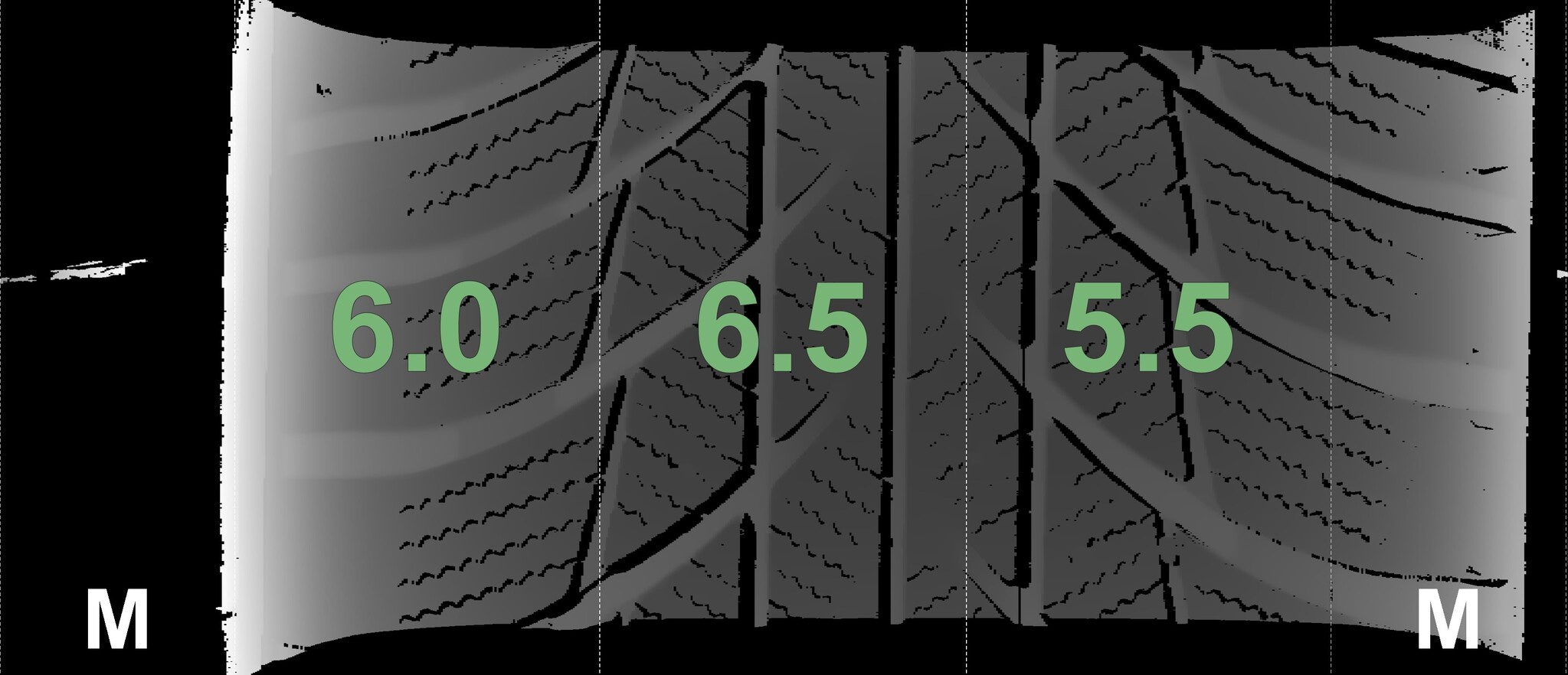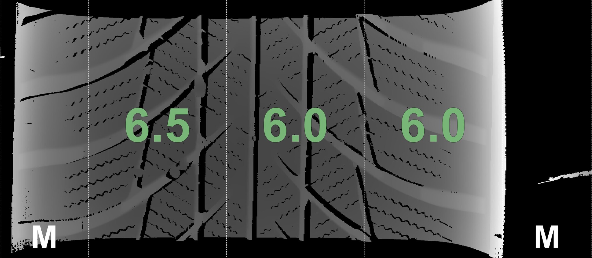 | Condition | Profile depth | DOT | Front Left | Used | 6.0 mm | 1219 |