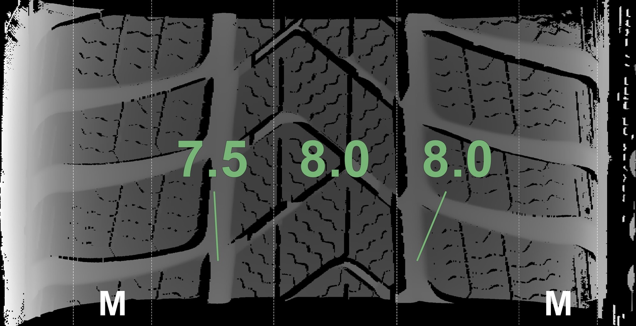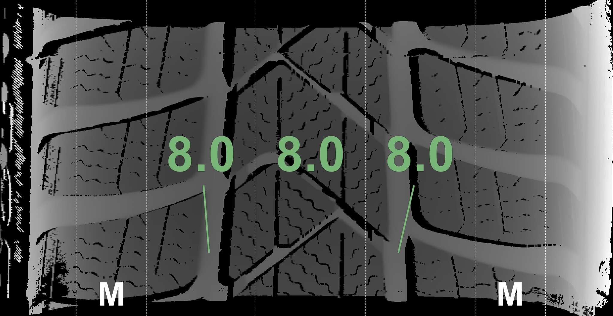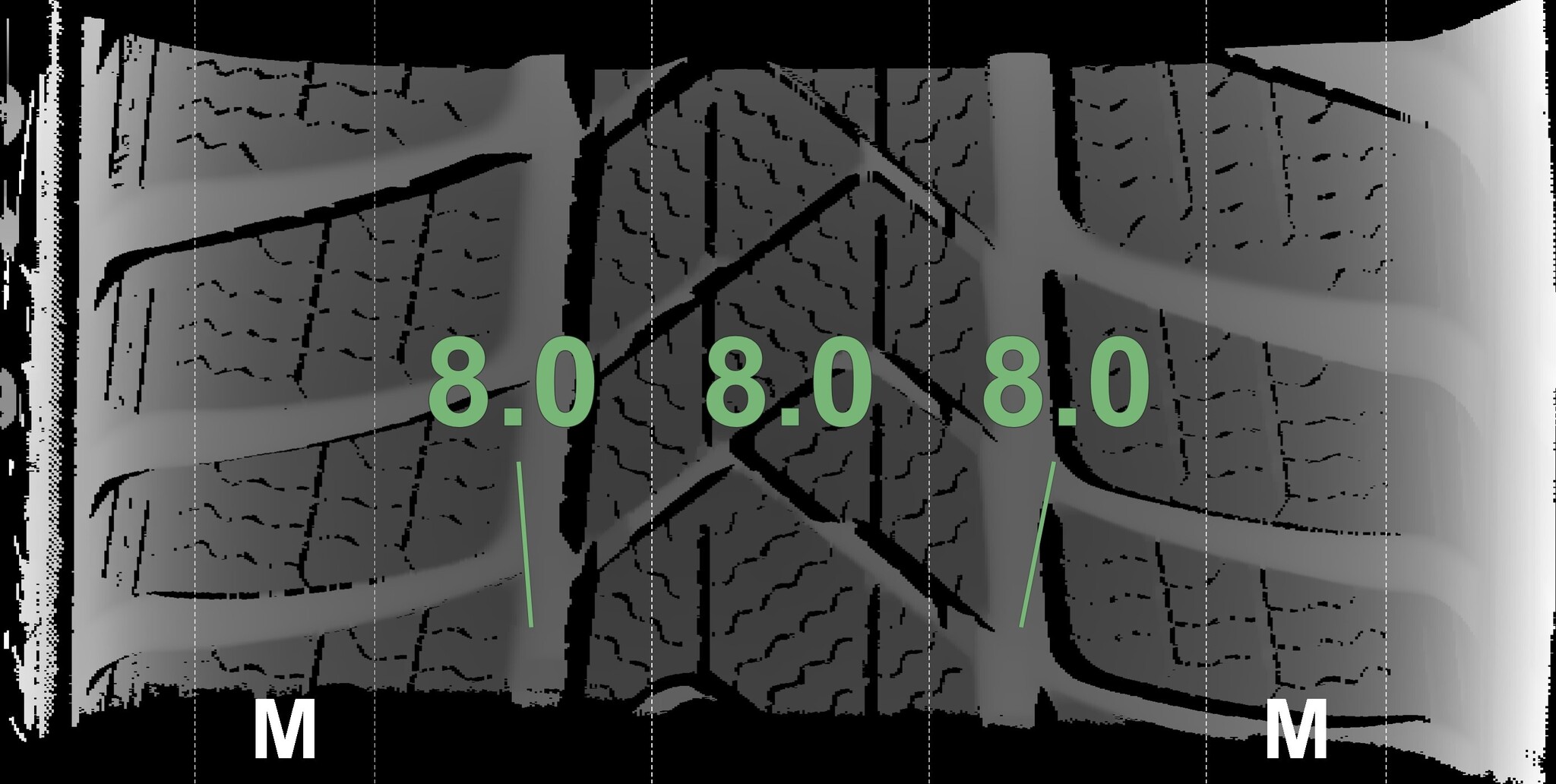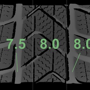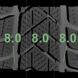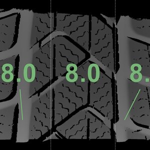 The measured tread depths and the details of the rims are shown above.