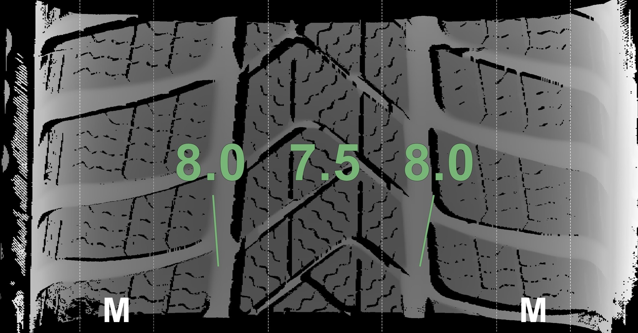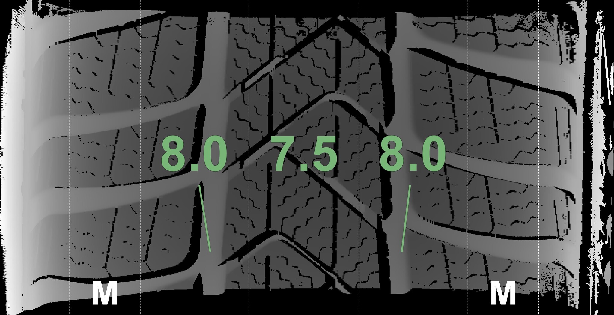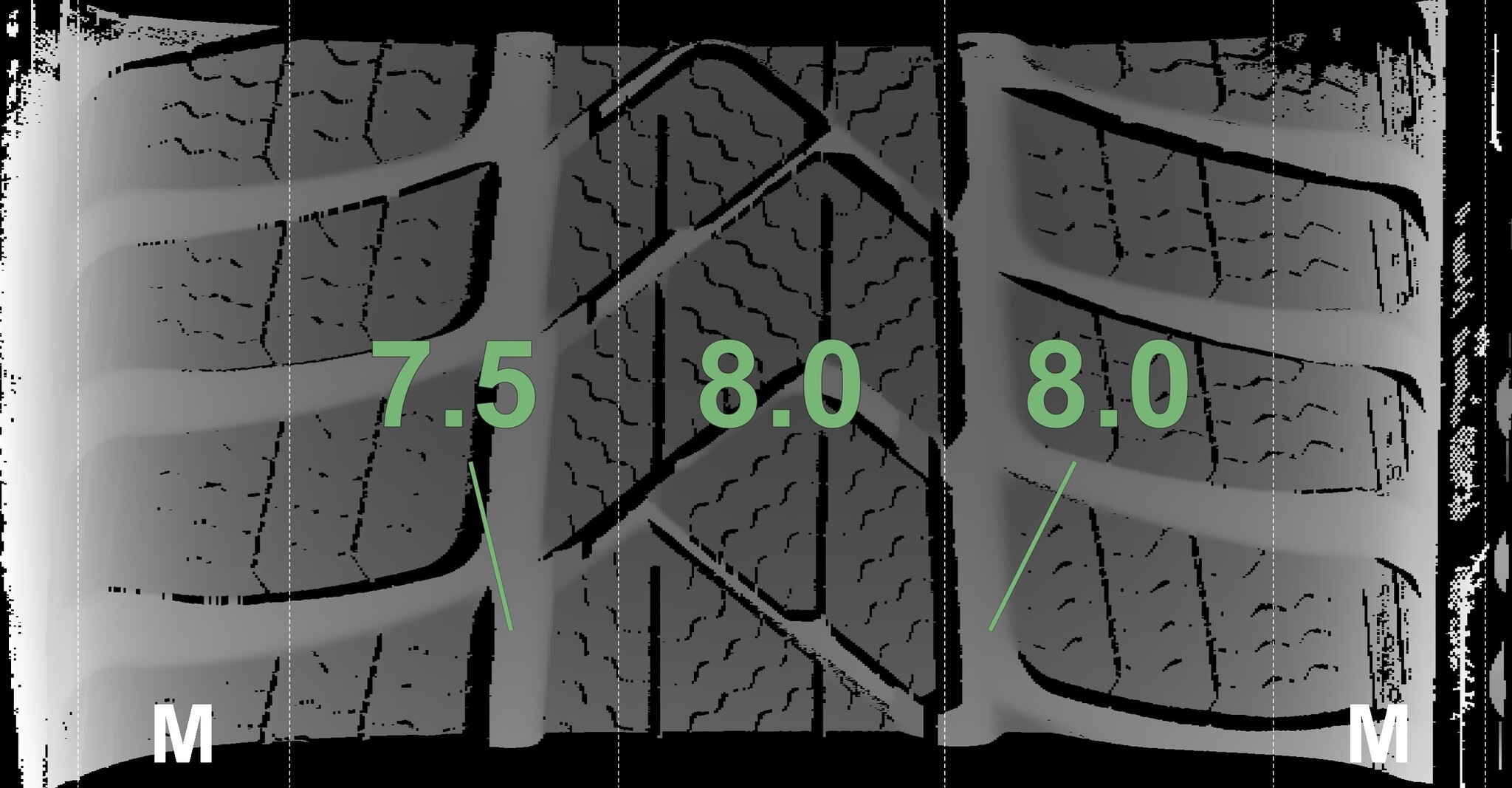 | Condition | Profile depth | DOT | Front Right | New | 7.8 mm | 3322 |