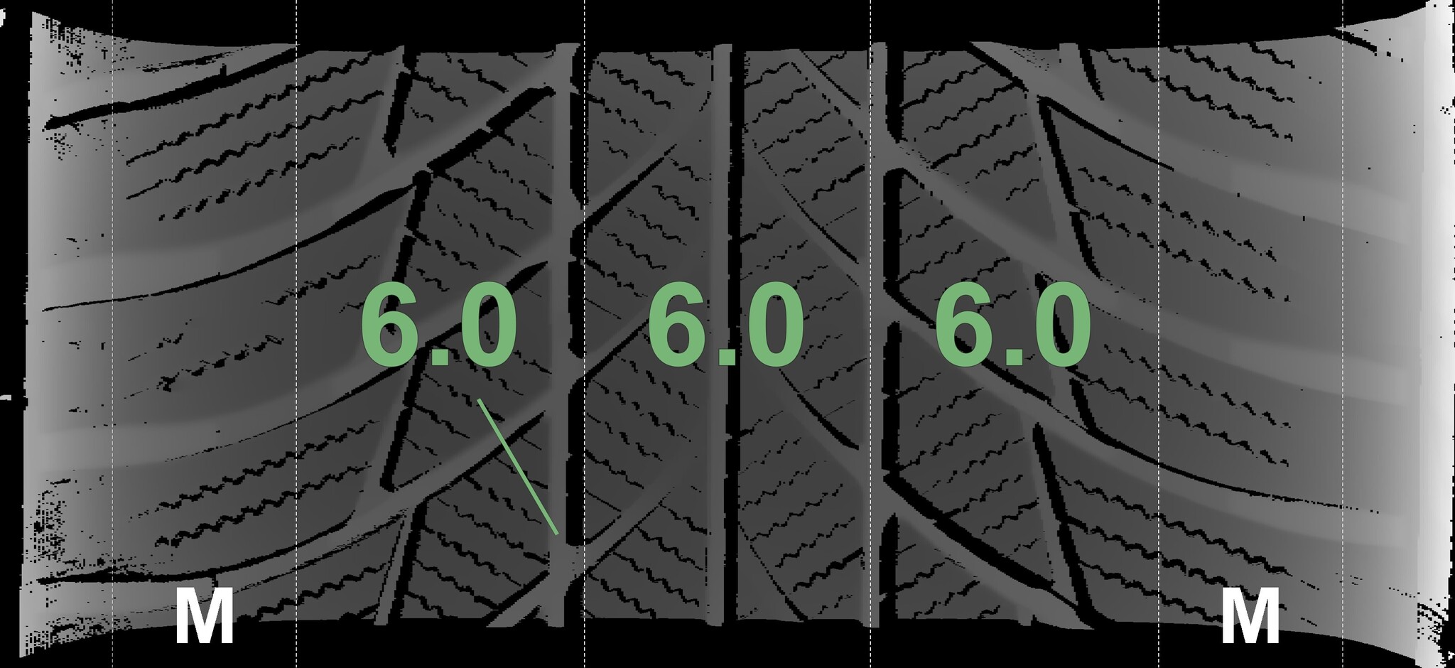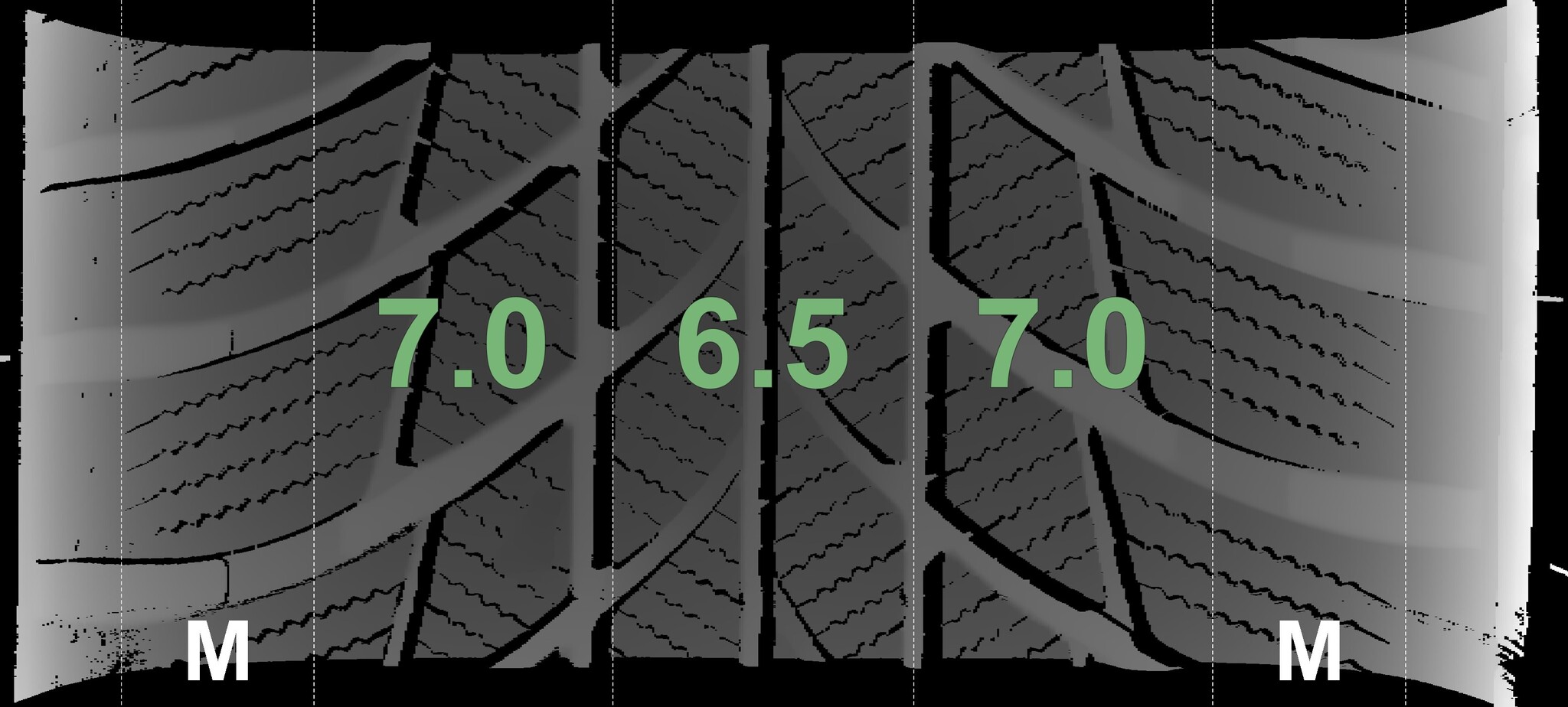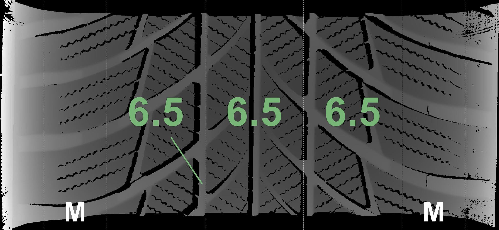 Condition | Profile depth | DOT | Front Left | Used | 6.5 mm | 2718 |